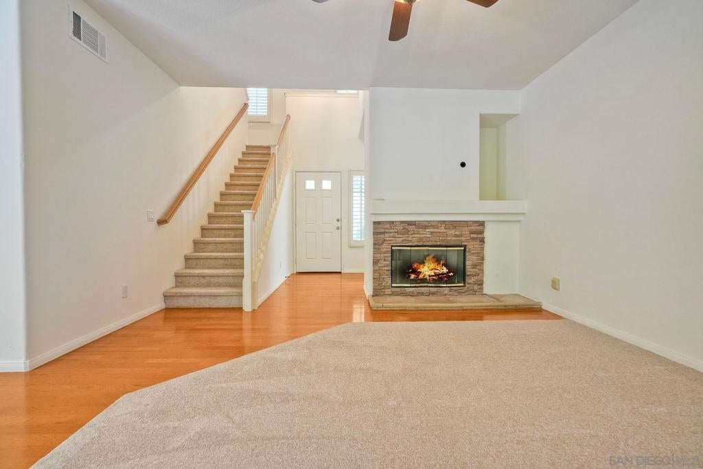 Beautiful, East-Facing Stratford Place Plan 3 with No Rear Neighbor! Welcome to this freshly updated, light-filled residence located in the highly sought-after Stratford Place community. This 3-bedroom, 2.5-bathroom Plan 3 home spans approximately 1,554 sq ft and offers a desirable east-facing orientation with enhanced privacy—no neighbor directly behind. Step inside to discover brand-new interior paint and plush new carpeting, creating a bright and inviting atmosphere. Plantation shutters on all upstairs windows add a touch of sophistication, while new mirrors in each bathroom bring a refreshed, modern feel throughout. The flexible floor plan features an open main level ideal for everyday living and entertaining alike. Upstairs, off the staircase, built in desk & cabinet are situated on the landing. Retreat to the spacious primary suite featuring a private balcony—perfect for enjoying your morning coffee or unwinding at sunset. The en-suite bathroom includes dual sinks and tasteful updates, adding comfort and style to your daily routine. Two additional bedrooms provide ample space for family, guests, or a home office. Additional highlights include central A/C, generous storage, and an attached 2-car garage. The private backyard with serene landscaping & pergola for shade is perfect for entertaining. Don’t miss this rare opportunity to own a turnkey home with privacy, thoughtful upgrades, and timeless appeal! See Suuplement=> Enjoy resort-style living in the Heart of San Diego! Stonecrest Village is conveniently located off Aero Drive & just an Interstate 15 off-ramp North of Mission Valley shops, Costco Warehouse & Gas Station, Lowes Home Improvement Center, Ikea, restaurants & the newly constructed Snapdragon Stadium. The 318 Acre Community of Stonecrest is minutes from most all of the major Central San Diego amenities. Each of the 6 subdivisions are surrounded by Tree-Lined Streets and enjoy membership to the State of the Art, Award Winning, Resort like Clubhouse, featuring a Junior Olympic Lap Pool, Spa, Lighted Tennis Courts, Tot-Lot, Picnic Areas, Media Room with Library, 2nd Pool Facility also with Spa, Park, Greenbelts & Trails for Walking, Jogging, Biking and Much More!