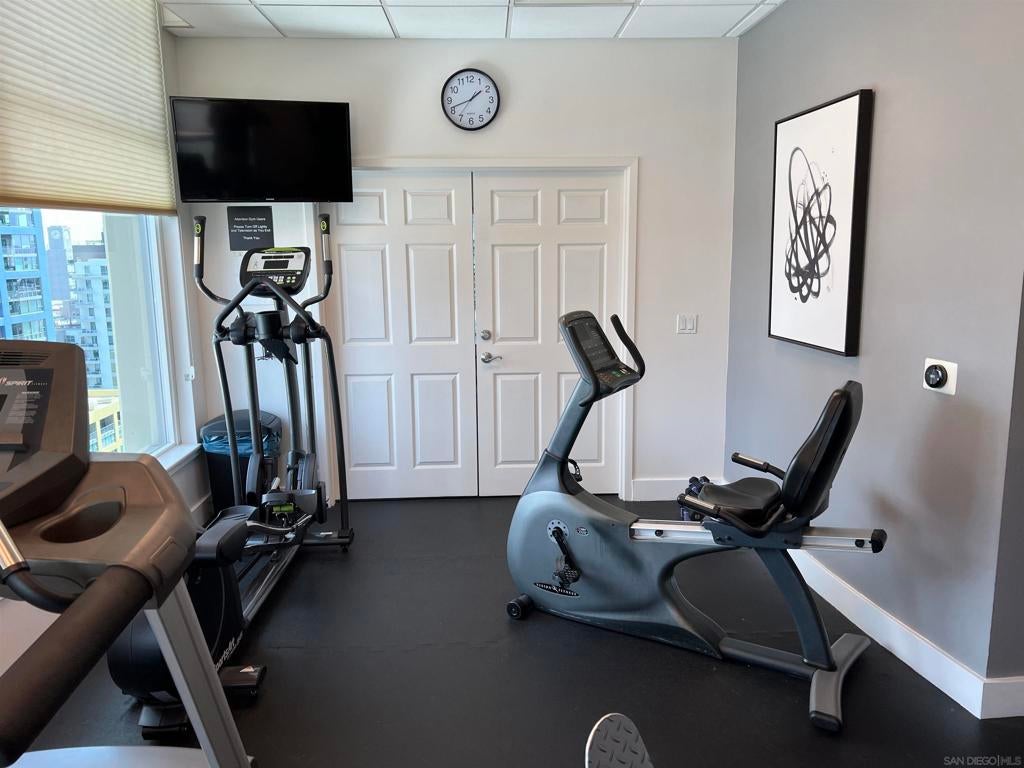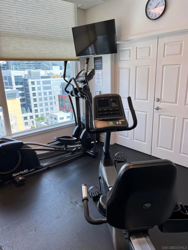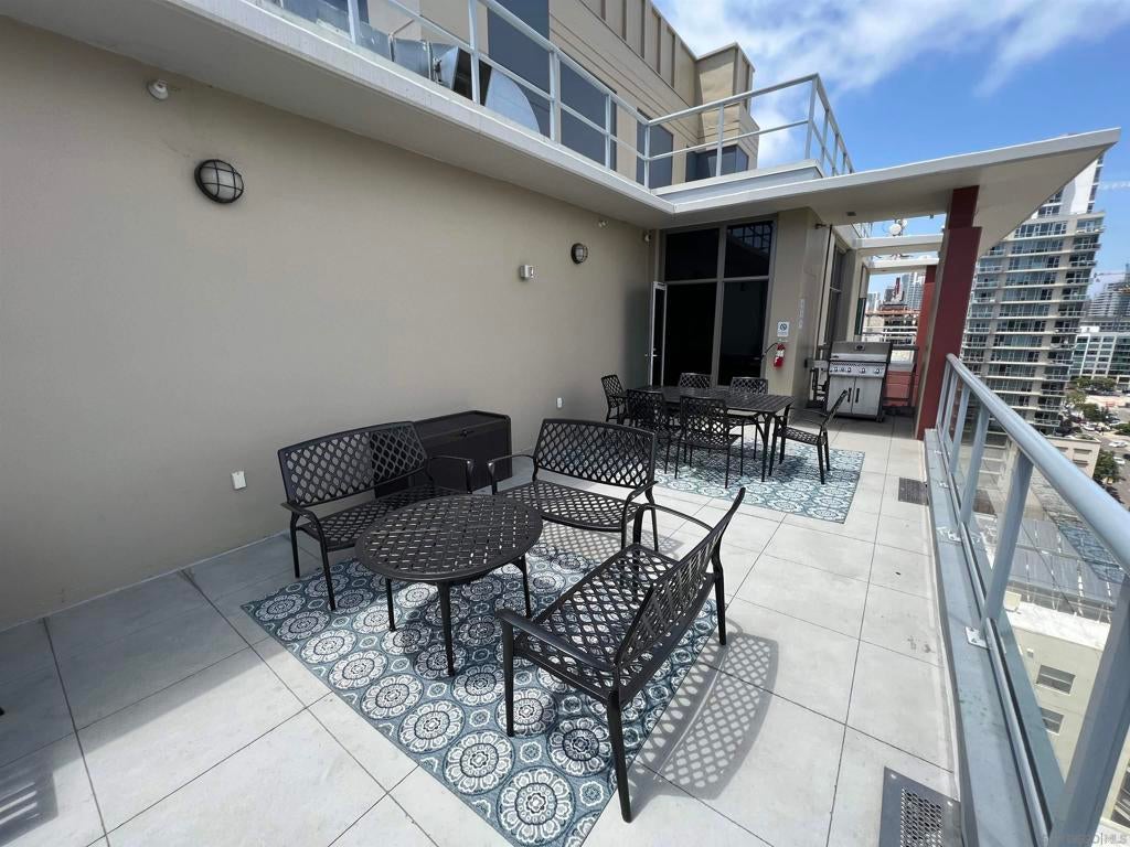 Live Steps from Petco Park in the Heart of the Gaslamp! This bright, updated condo perfectly combines downtown energy with cozy comfort. Step out onto your 12' x 8' patio and enjoy peek views of Petco Park and Park at the Park, ideal for city lovers, Padres fans, or anyone who wants the excitement of downtown right at their doorstep. Inside, the space features cherry cabinets, granite countertops, stainless steel appliances, crown molding, a full-size stacked washer/dryer, and a renovated tub/shower. Assigned underground parking on the 3rd Level fits a full-size vehicle. The secure building offers FOB access to parking, a lobby with Amazon package lockers, elevator, gym, community room, and a rooftop deck with gas BBQ overlooking Petco Park. Downtown living couldn’t be more convenient. Whether you’re exploring nearby restaurants, rooftop bars, live music venues, or taking in a downtown concert, this condo gives you the perfect home base for the ultimate city lifestyle. Walk to games, concerts, or nightlife without worrying about parking. With year-round events, restaurants, and entertainment at your fingertips, this condo puts you at the center of everything San Diego has to offer. Don’t miss your chance to own a slice of the Gaslamp lifestyle! Padre fans will love the location of this condo - If you have a ticket, no problem with Parking, quick walk to multiple entrances. Leaving the game - head out the Right Field exit, cross J to 9th and you're at your condo building. No game ticket, no worries! Grab a steak and a cold beverage and head to 14th floor where you can watch the game from the roof top BBQ deck for free.