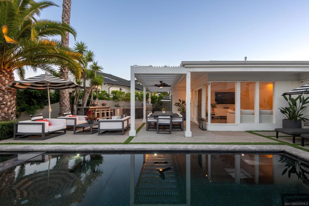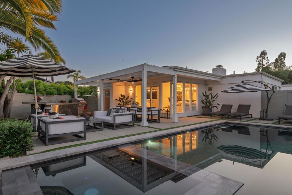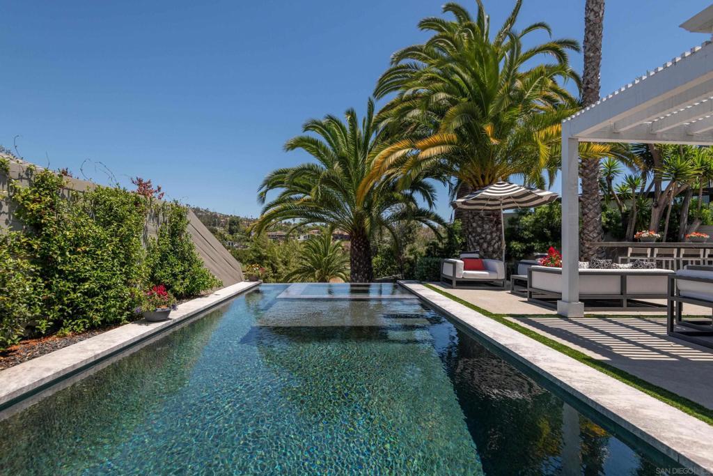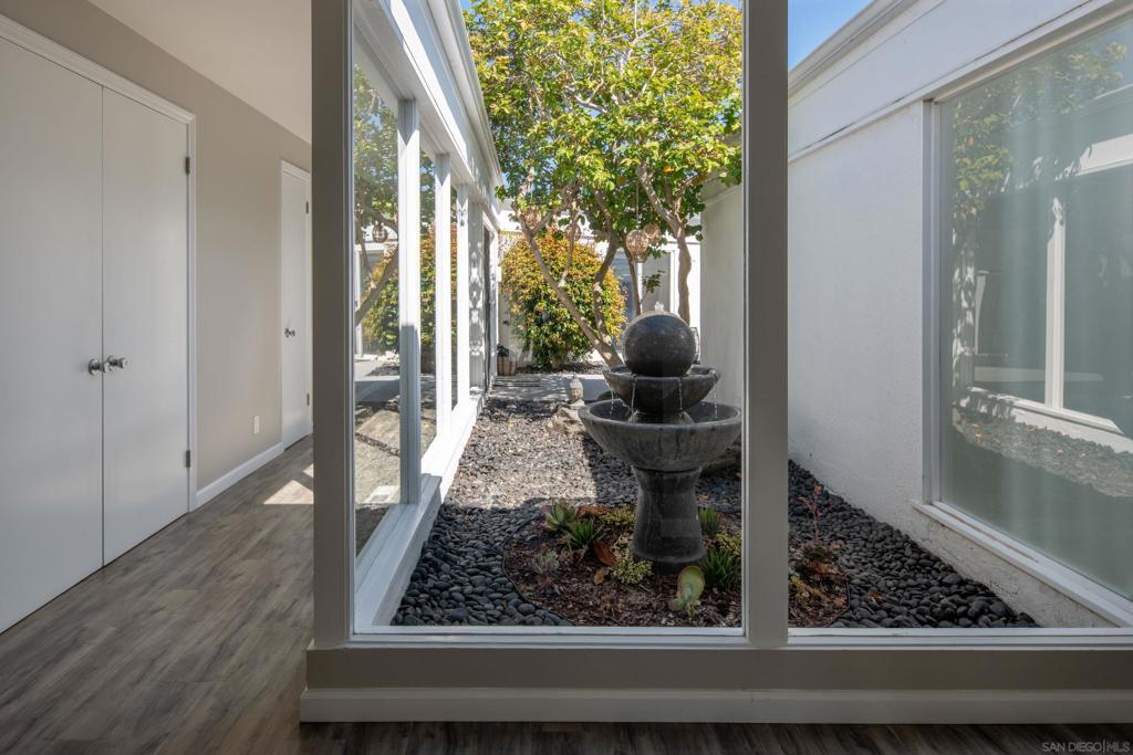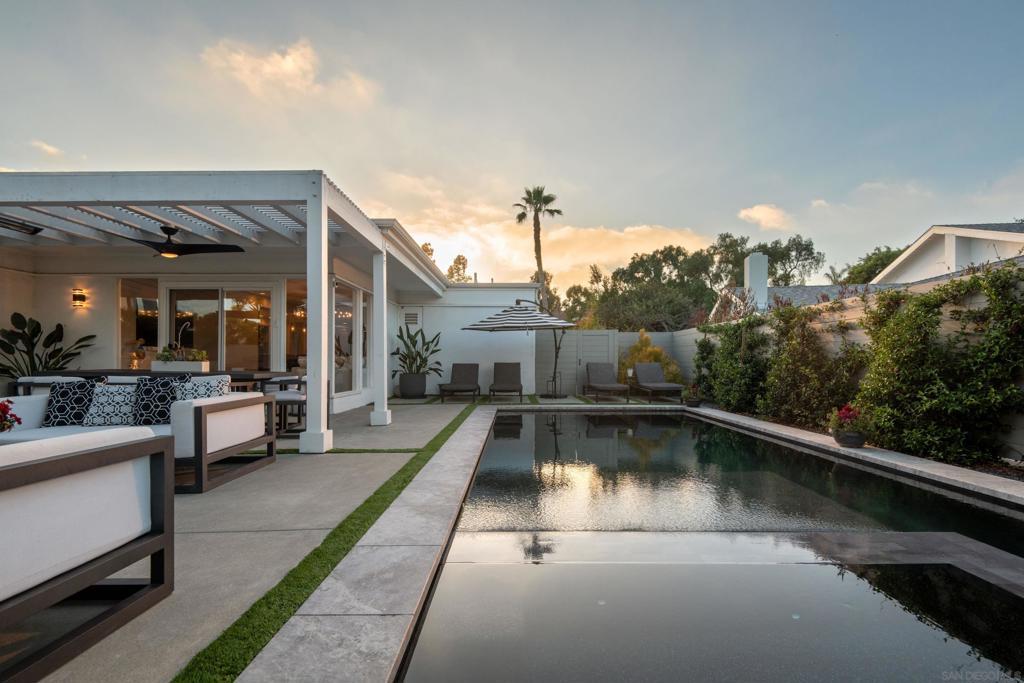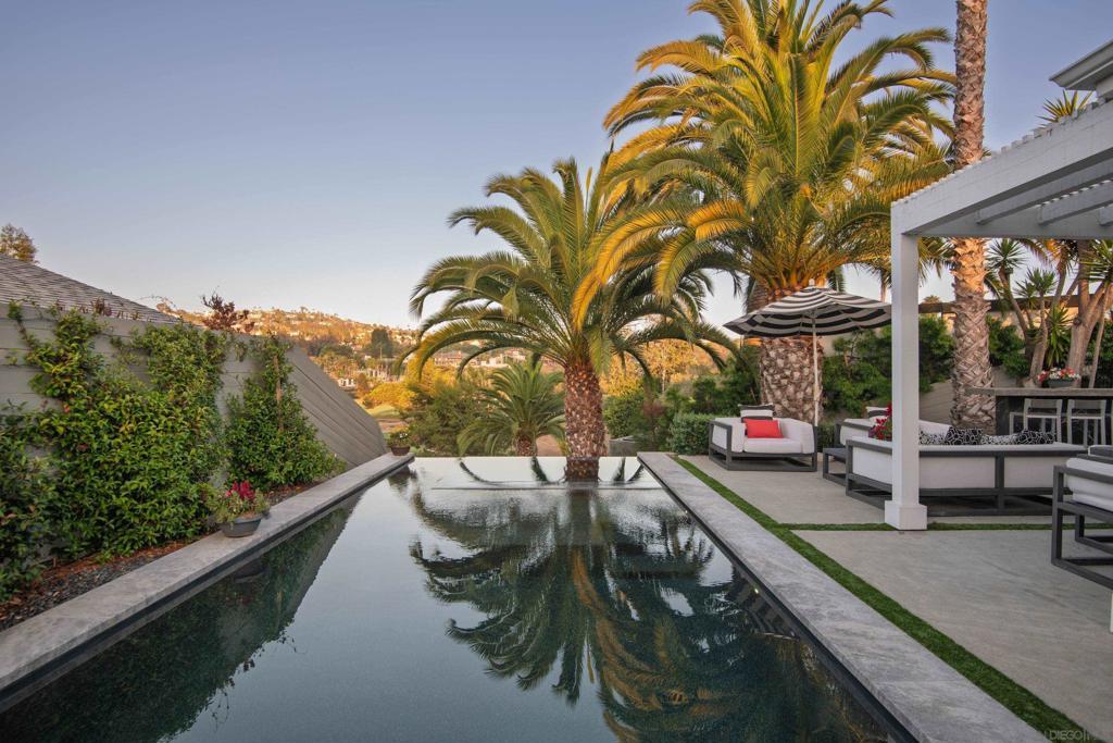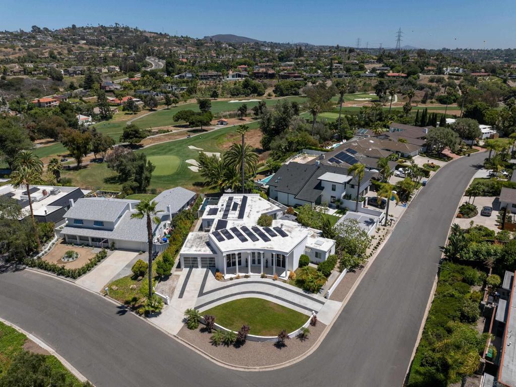 Overlooking the 3rd hole of the Champions Course at Omni La Costa, this stunning single-story home offers 5 bedrooms, 3.5 bathrooms, and 3,720 square feet of beautifully designed living space. Situated on a prime corner lot, this expansive floor plan wraps around a beautiful glass atrium that floods the home with natural light and brings the outside in, enhancing the home’s effortless connection to its serene surroundings.Timeless glamour and mid-century modern architecture meet relaxed California style, featuring towering columns, dramatic windows, 14-foot leaded glass doors, beautiful tile throughout, stunning formal living & dining rooms, a beautiful interior courtyard, and SOLAR. With a rich history rumored to include visits from Hollywood legends such as the Rat Pack, Lucille Ball, and Clint Eastwood, the home radiates nostalgic charm. The chef’s kitchen is outfitted with stainless steel appliances, quartz countertops, white shaker cabinetry, and built-in wine racks. The expansive great room captures beautiful golf course views and features a custom built-in bar and fireplace. Outside, a brand new infinity-edge pool and outdoor kitchen overlook the lush fairway and layers of hills beyond, creating a spectacular backdrop for both lively gatherings and quiet evenings. Located in one of La Costa’s most iconic neighborhoods, this rare architectural gem is a seamless blend of history, style, and modern comfort.