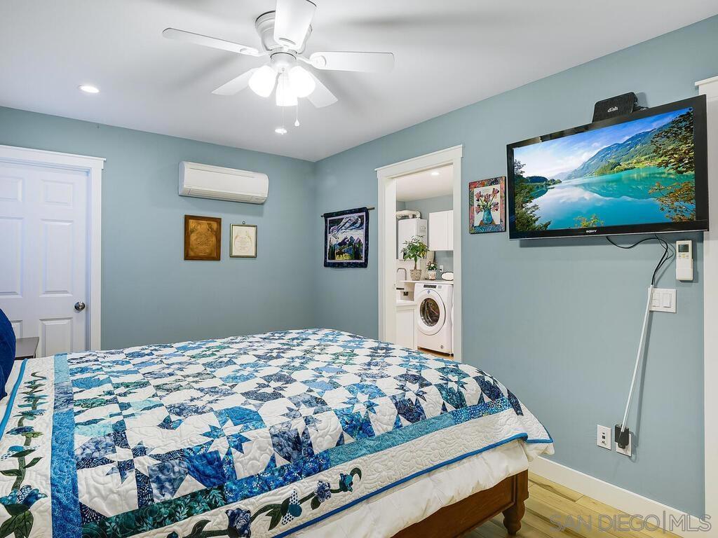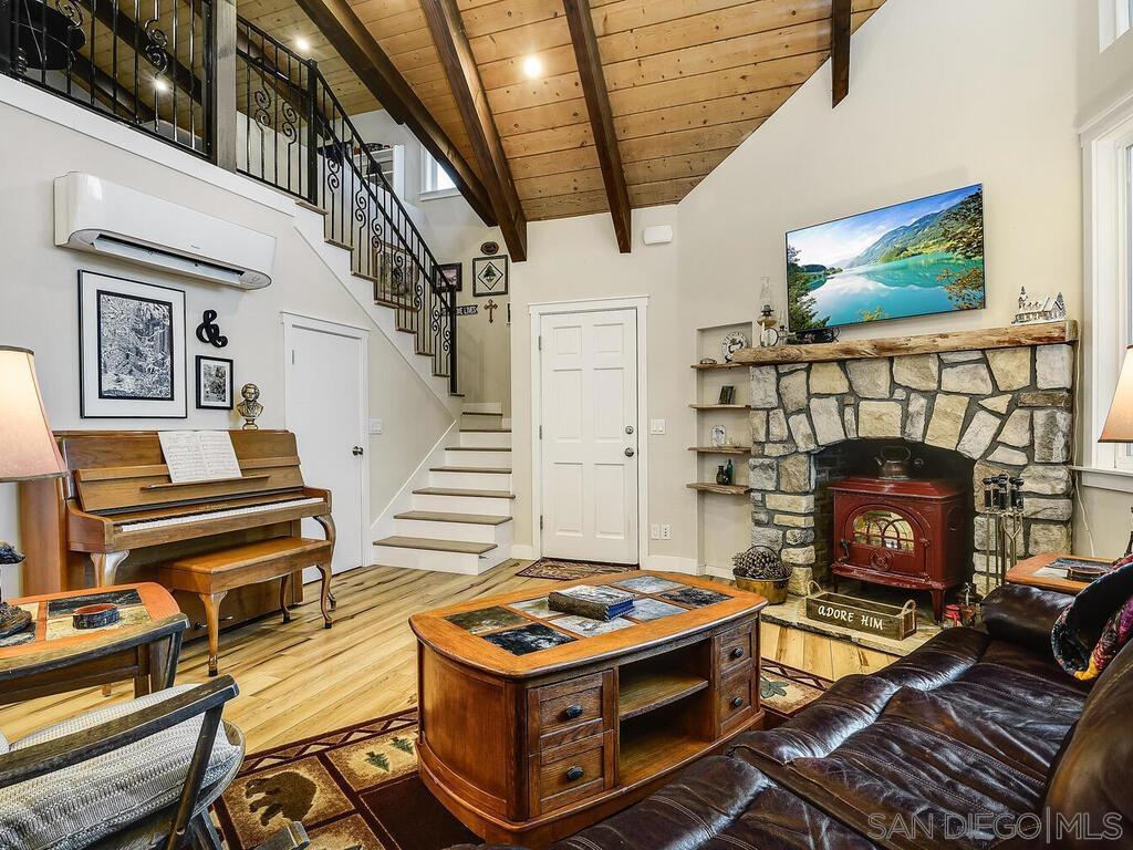 SELLER IS OFFERING A CREDIT FOR A 3-2-1 RATE BUYDOWN. A serene mountain retreat in Julian’s highly desirable Farmer Road area. Expanded and remodeled in 2020, the home features a loft, family room, guest suite, and energy-efficient upgrades, including seller-owned solar (18 panels) and a hard-wired Generac generator. The property includes two producing wells with iron filtration, a detached two-car garage, a 20×20 workshop, barn, multiple sheds, and an RV site with 30-amp electrical and septic hookups. Fully fenced and metal-gated, it borders the Volcan Mountain Preserve Trail for direct hiking access. A producing apple orchard features Empire, Golden Delicious, Honeycrisp, Jonathan, and Liberty varieties. open for U-Pick Sept 20–28, plus cherry, apricot, and pear trees. Enjoy panoramic views and stargazing from the TREX deck in this Dark Sky Community. Five (5) HVAC Spit Units, Tankless Water Heater.