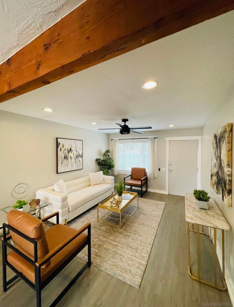 MOTIVATED SELLER! Condo is staged and ready to be sold! Gorgeous Condo in an Unbeatable Location! Located just steps from Mission Trails Regional Park and Kumeyaay Lake, this beautifully updated modern condo lives like a detached home—no upstairs neighbors and everything on one convenient level. Situated in a Planned Unit Development (PUD) community, this home offers comfort, style, and privacy. The kitchen features stainless steel appliances, elegant Volakas marble countertops with a satin finish, a new backsplash, recessed lighting, and an abundance of cabinet and pantry space. Enjoy seamless indoor-outdoor living with direct access to a spacious private patio—perfect for entertaining, relaxing, or gardening. Fresh paint and stylish vinyl plank flooring run throughout the home. See supplement! You’ll appreciate the open-concept layout with thoughtful designer upgrades, including custom built-ins, a charming barn door, and a trendy shiplap accent wall. A skylight in the bathroom fills the space with natural light, while a full-size washer and dryer are tucked conveniently into the hallway closet. Both bedrooms feature ceiling fans and AC window units for year-round comfort. The large enclosed patio includes an artificial grass area—ideal for pets! Just a one-minute stroll to the community pool. HOA covers water and trash, and the unit includes two assigned parking spaces. With quick access to the 52 and 125 freeways, this prime location makes commuting and exploring a breeze. Come experience the beauty and warmth of this welcoming community—you’ll love calling it home.