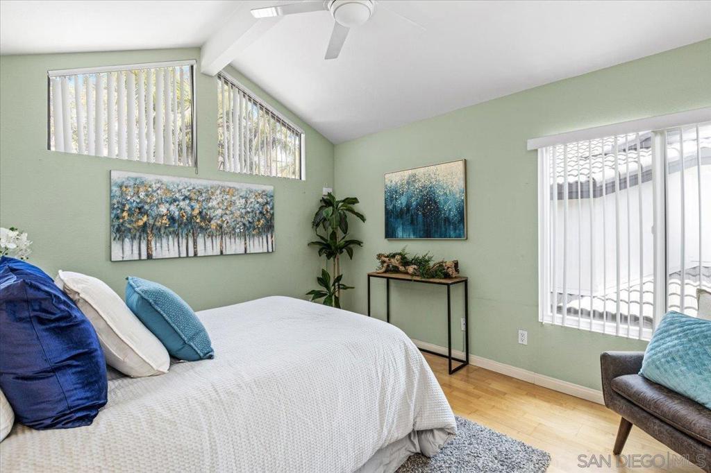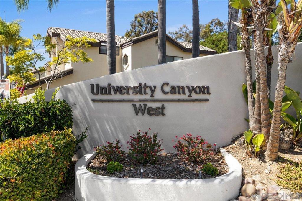 Price reduced, help your buyers take advantage of this awesome opportunity! This beautifully updated townhome offers the perfect blend of privacy, modern comfort, and architectural flair. Located in the highly sought-after University Canyon West community, this hidden gem is just minutes from USD, Fashion Valley, local beaches, and premier shopping and dining destinations. Step inside and be captivated by the home’s award-winning design, featuring vaulted ceilings and angled walls that create a sense of space and light. Skylights and updated dual-pane windows flood the home with sunshine. Enjoy the gas fireplace, plantation shutters and French doors opening to your own private patio and lush backyard, with no neighbors behind, just serene canyon views. The updated kitchen boasts abundant storage and rich wood flooring that flows throughout the home. There is a conveniently located powder room for guests as well as direct access to a 2 car garage with additional storage. The flexible dual-suite layout includes a spacious primary bedroom with a walk-in closet and a stylish en-suite bath featuring a walk-in shower. The second bedroom and full bath offer great space for guests or a home office. An upstairs laundry is conveniently located between the bedrooms for easy accessibility. Outdoor lovers will appreciate the resort-style, community pool and spa, along with direct access to miles of canyon trails for hiking, biking, and exploring. Enjoy the quiet established neighborhood with a true sense of privacy in a beautifully maintained community with a coastal-canyon vibe.