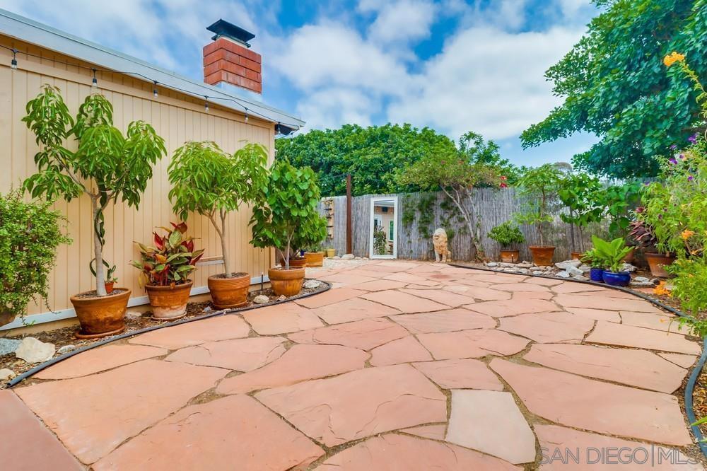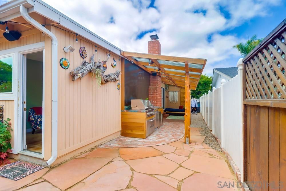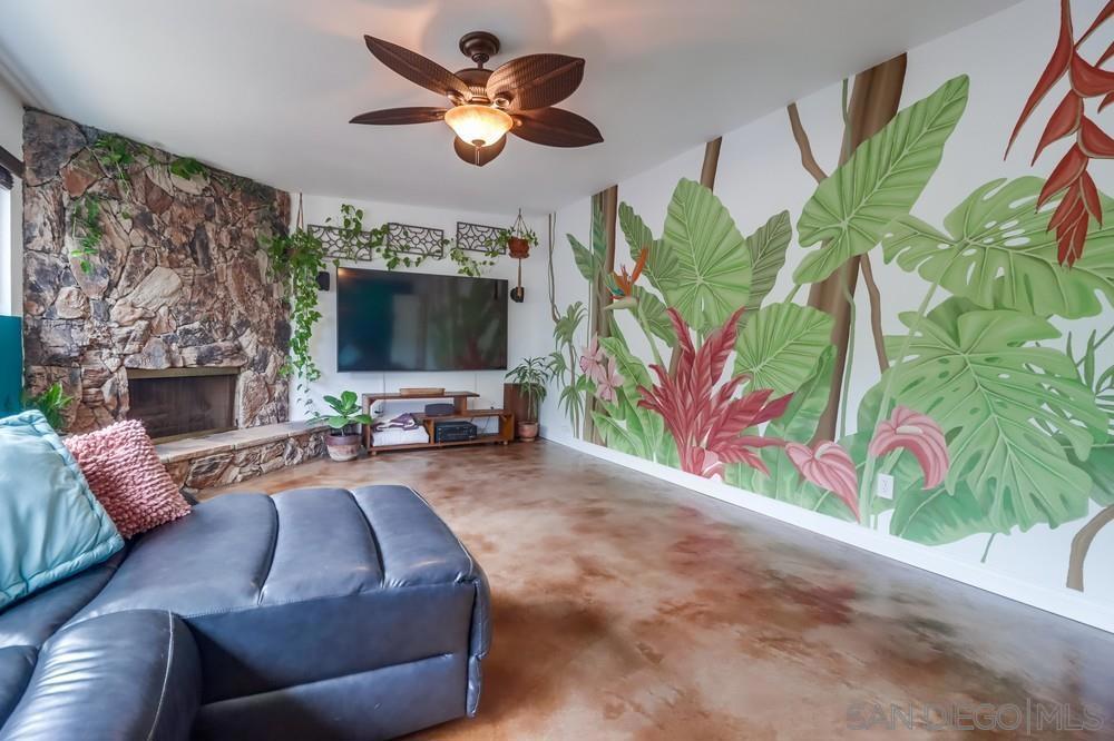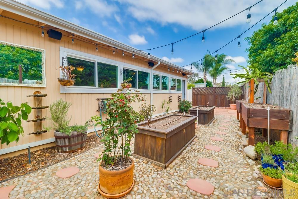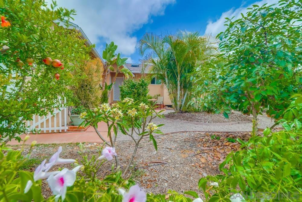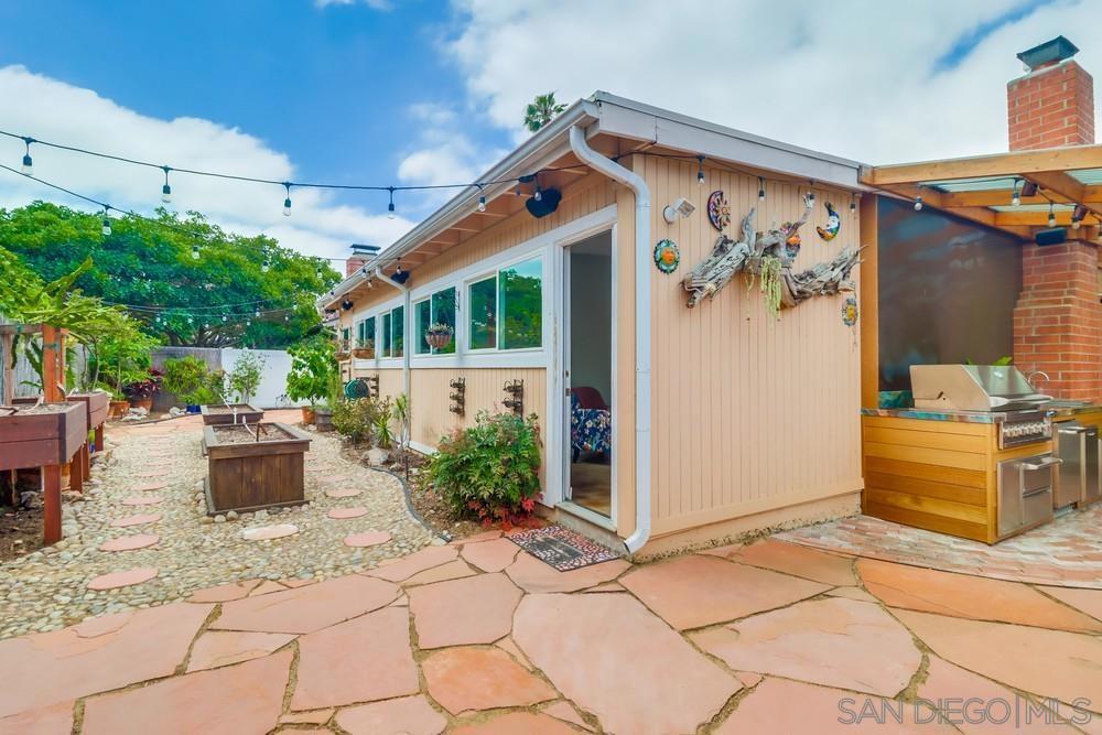 Hidden Serra Mesa gem! Find serenity & feel the open space in this exquisite luxurious home, beautifully & meticulously maintained w/ a Boho feel. The interior is bright with ample natural light, streaming from a bathroom skylight & solar tubes. Home features dual pane windows w/ lifetime warranty, original oak hardwood floors & home audio throughout. The chef's kitchen features new Calcutta Gold Quartz counters, custom wood cabinets, premium 6 burner stove, oversized sink. (continued in supplement) Front en suite bedroom overlooks the tropical front yard, rear bedroom has custom closet storage & steps out into the private patio & garden. Don't miss the full wall tropical mural by a local artist in the sunken grand family room, complete with home theater surround system. Spacious 2 car garage has epoxy floor, custom cabinets, updated electrical & ample overhead storage. The yards have a serene oasis feel: find a walking path in the front winding through avocado, pomegranate, banana, olives, papaya, orange & surinam cherry trees; overlooking the canyon in the backyard you'll find a covered private Lanai, a Brazilian Quartzite BBQ w/ wet bar, rotisserie, sear burner, 6 burners, warming drawer. Located in charming Serra Mesa, this home is peaceful & tranquil while being centrally located & within minutes of shopping, eateries & culture.