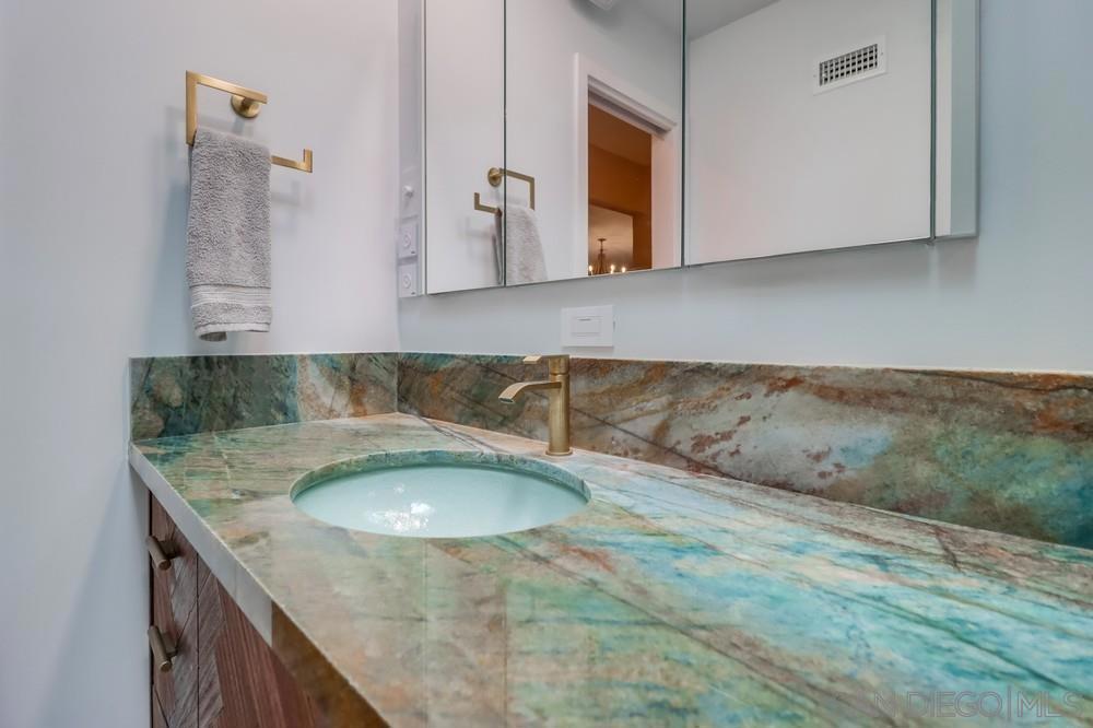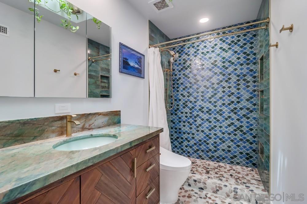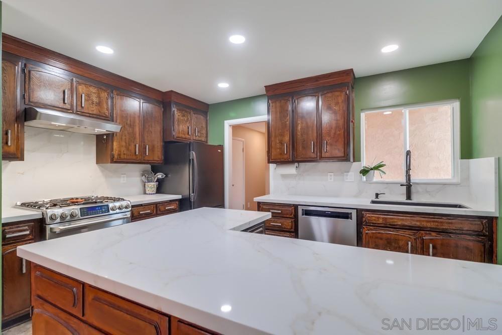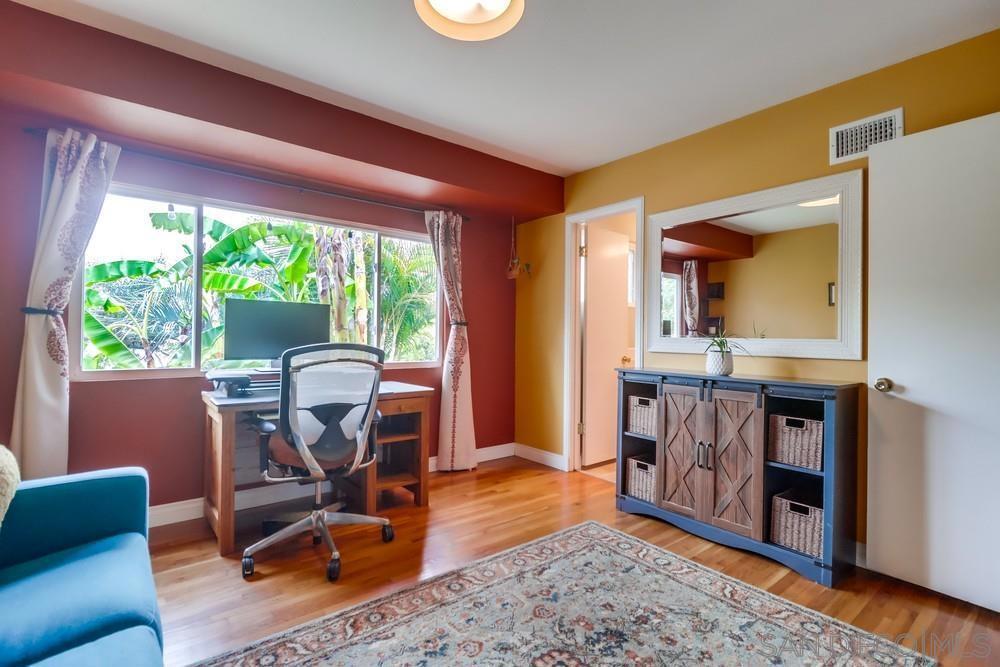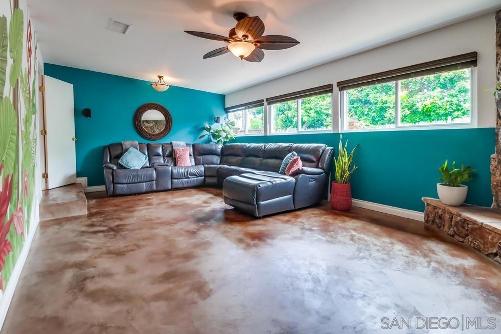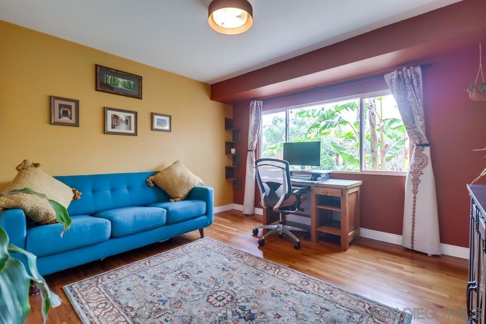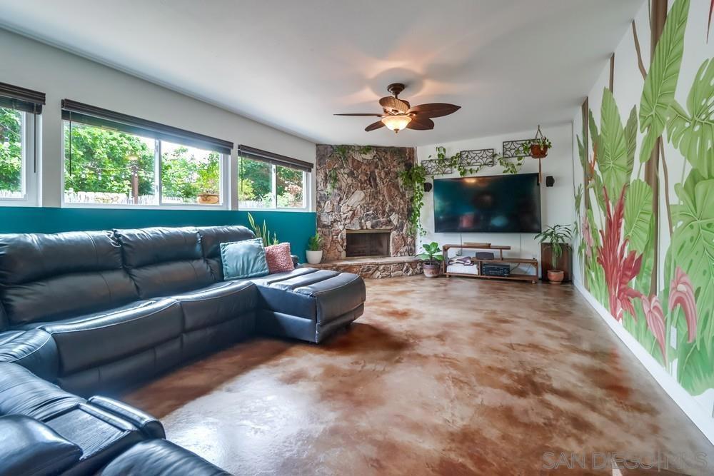 Hidden Serra Mesa gem! Find serenity & feel the open space in this exquisite luxurious home, beautifully & meticulously maintained w/ a Boho feel. The interior is bright with ample natural light, streaming from a bathroom skylight & solar tubes. Home features dual pane windows w/ lifetime warranty, original oak hardwood floors & home audio throughout. The chef's kitchen features new Calcutta Gold Quartz counters, custom wood cabinets, premium 6 burner stove, oversized sink. (continued in supplement) Front en suite bedroom overlooks the tropical front yard, rear bedroom has custom closet storage & steps out into the private patio & garden. Don't miss the full wall tropical mural by a local artist in the sunken grand family room, complete with home theater surround system. Spacious 2 car garage has epoxy floor, custom cabinets, updated electrical & ample overhead storage. The yards have a serene oasis feel: find a walking path in the front winding through avocado, pomegranate, banana, olives, papaya, orange & surinam cherry trees; overlooking the canyon in the backyard you'll find a covered private Lanai, a Brazilian Quartzite BBQ w/ wet bar, rotisserie, sear burner, 6 burners, warming drawer. Located in charming Serra Mesa, this home is peaceful & tranquil while being centrally located & within minutes of shopping, eateries & culture.