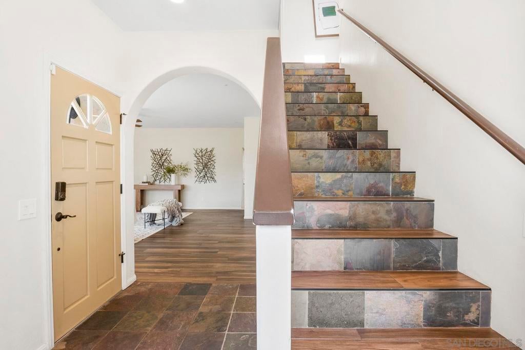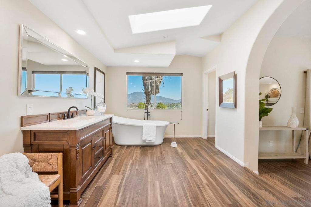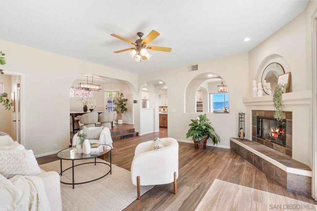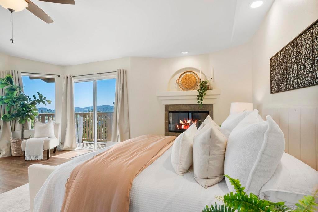 2.25% ASSUMABLE MORTGAGE available to ANY BUYER (subject to lender approval). Live elevated in coveted Mt. Helix—sweeping day-to-night views, paid solar (21 panels) + battery for ultra-low bills and energy peace-of-mind, and a flexible 2,872 sq ft, 4BR/2.5BA layout made for real life. A chef’s kitchen with abundant counter space and a sunny breakfast nook flows to formal dining and a vaulted, view-filled living room with fireplace—perfect for gatherings. Retreat upstairs to a luxe primary suite with its own fireplace, private balcony, and an oversized custom walk-in closet. Three additional bedrooms and an upstairs laundry keep daily life effortless. Thoughtful upgrades include wood-look tile flooring, central A/C, and forced-air heat. Outside: a private, fenced 0.55-acre lot, durable tile roof, and an attached 2-car garage PLUS two large storage rooms—space for gear, hobbies, and organization. Minutes to shopping, dining, parks, and key freeways—yet tucked in one of East County’s most desirable neighborhoods. Energy savings, indoor-outdoor serenity, and turn-key comfort—this home checks every box.
