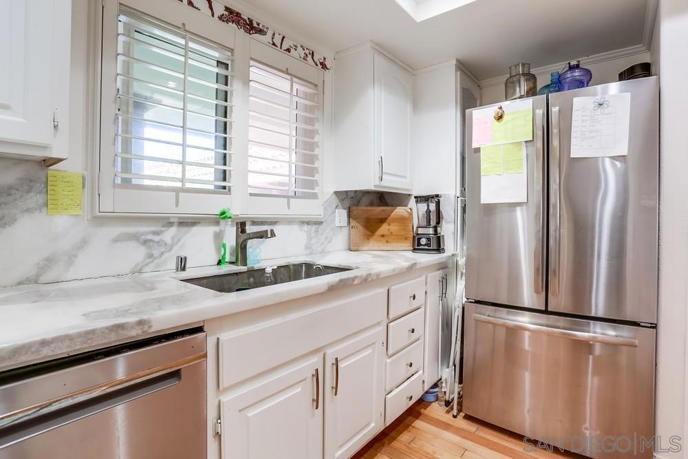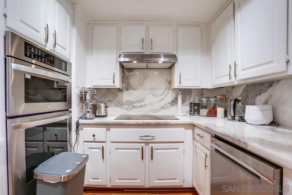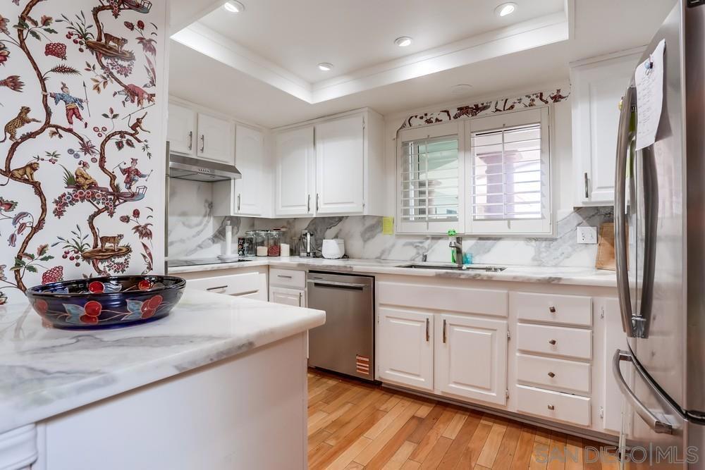 Contemporary 3BR/2BA condo in the heart of La Jolla Village offering hardwood floors, a quartz-finished chef’s kitchen with stainless steel appliances, custom cabinetry, and recessed lighting. Bathrooms feature updated tile finishes, and the living room is anchored by a charming stone fireplace. Additional highlights include dual-pane windows, in-unit laundry, and two secured, side- by-side underground parking spaces with a lockable entry. This well-kept building offers a small gym, elevator access, and a dedicated storage room for each unit. HOA covers common area maintenance. Located just minutes to the beach, world-class dining, shops, CVS, and Pavilions. The La Jolla Library sits directly behind the property, with the La Jolla Recreation and Tennis Center nearby. A rare opportunity to enjoy prime Village living with modern upgrades, secure parking, and unmatched walkability.