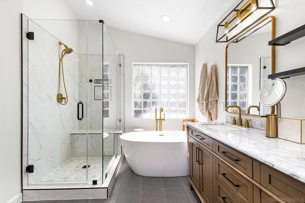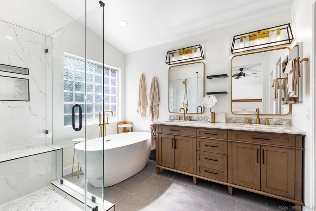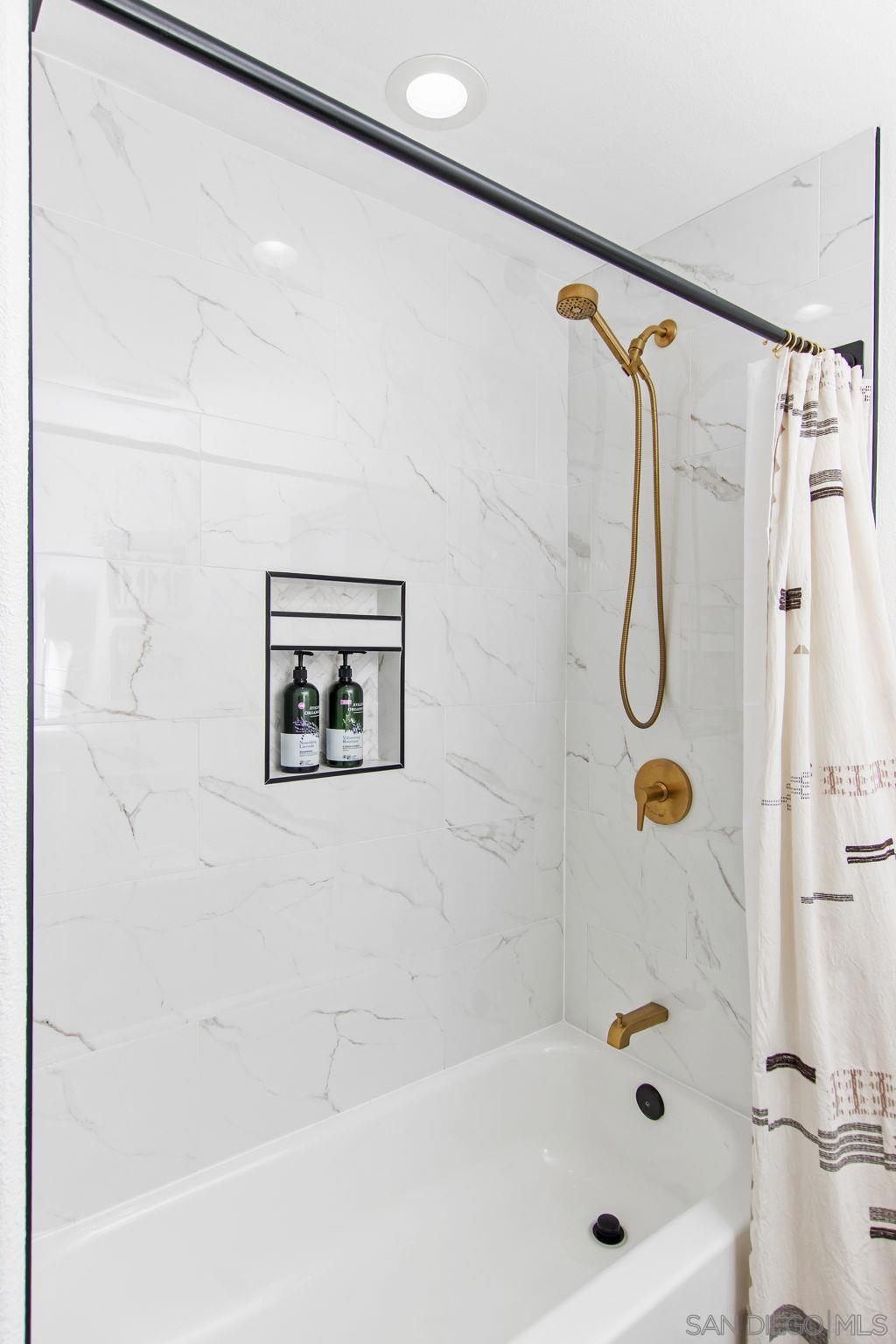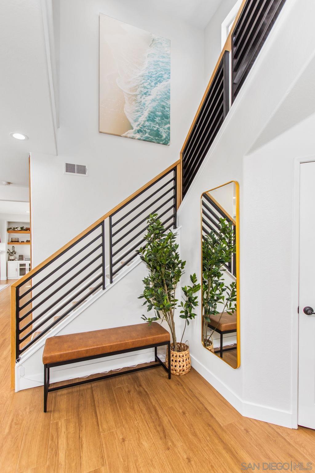 No detail has been missed with this beautifully remodeled 5 bedroom 3 full bath home in the desirable Tampico community of Mira Mesa! ***Step into a bright, updated kitchen with white cabinetry, all new or newer appliances, a generous pantry, and sleek finishes that open seamlessly into the main living space and formal dining room. Enjoy high-end LVP flooring throughout and a striking modern black metal stair rail that adds a contemporary touch. ***Ideal for multi-generational living or guests, the home includes a bedroom and full remodeled bath downstairs. ***Upstairs, you'll find four additional bedrooms, including a flex space perfect for a home office or study nook, a full laundry room, and a spacious primary suite featuring a huge walk-in closet with custom built-ins. All bathrooms have been tastefully remodeled with modern finishes. The pie-shaped backyard offers added privacy with no rear neighbors and includes areas for turf, planter beds, and outdoor relaxation. Attached 2-car garage. Located close to top-rated schools, parks, shopping, dining, open space trails, and with easy access to Interstate 15 and 56, this home truly has it all. Solar system in place for energy efficiency. Come experience modern Mira Mesa living at its finest!