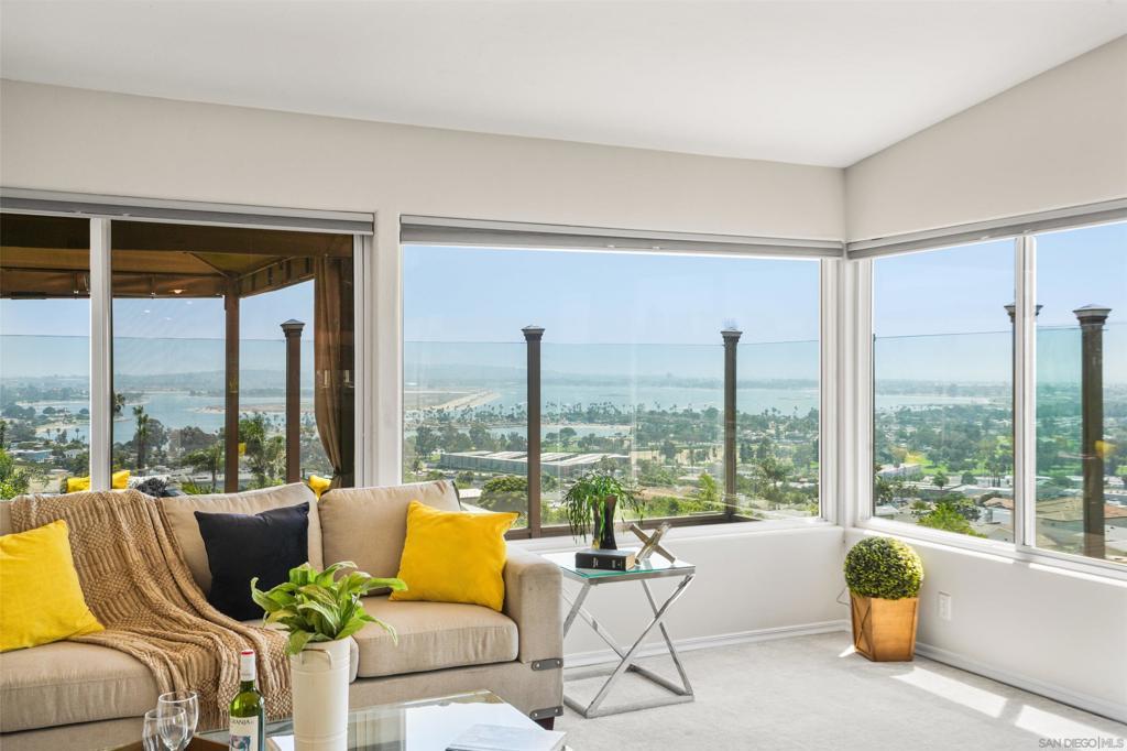 Unobstructed jaw dropping 220 degree view from Mexico to Mount Soledad! Panoramic views of Mission Bay, Pacific Ocean, Fiesta Island, Point Loma, Pacific Beach, SeaWorld fireworks and more! Curb appeal! No traffic street! Underground utilities! Oversized two car garage! Large view deck! Gas fire pit with built-in seating! 6 man spa! Vaulted ceilings! Primary bedroom with walk-in closet, vaulted ceiling and Bay view! Primary bathroom with dual vanity, custom shower and operative skylight! Air conditioning! Dual pane windows! ADU potential on lower level including mini-kitchen, fireplace and separate entrance! Easy care yard! You won't be disappointed!