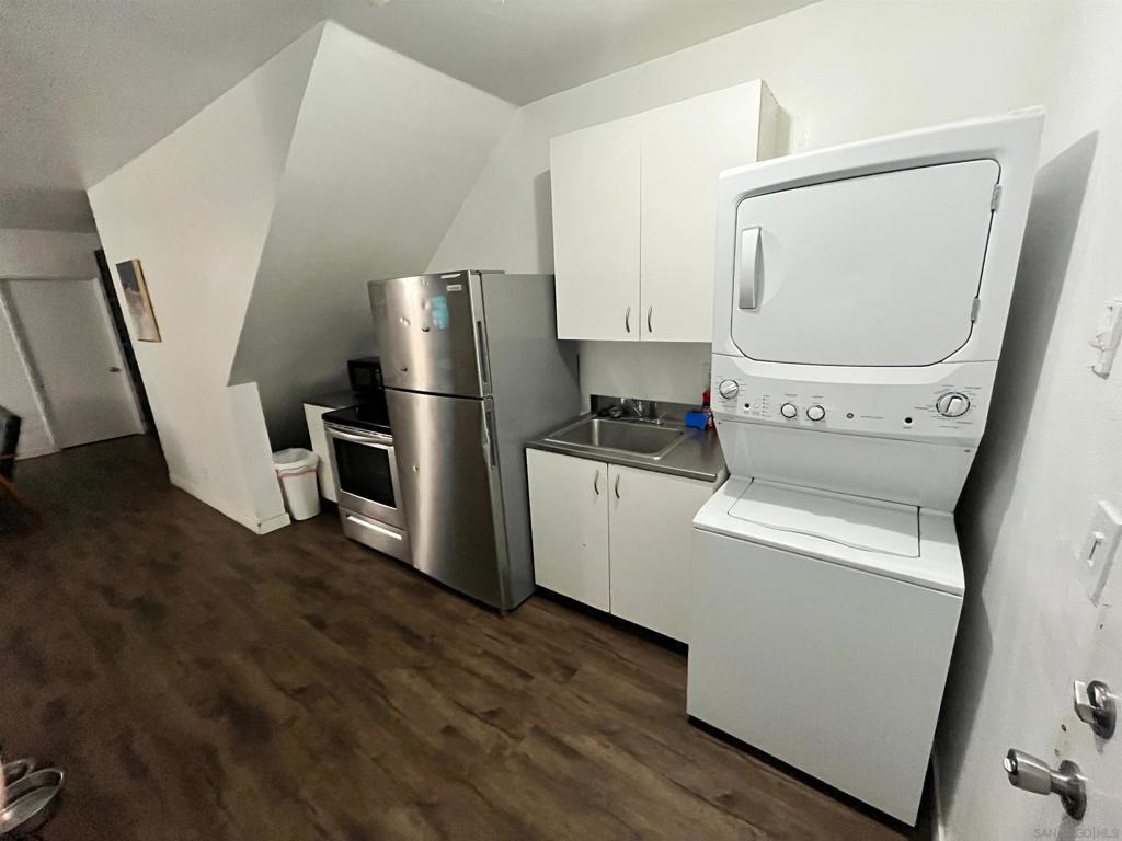 Discover this spacious 1-bedroom, 1-bathroom loft in the heart of Downtown San Diego’s East Village. Located in the exclusive Moto Villa complex with only 19 units, this condo features a private attached patio, in-unit washer and dryer. The bedroom is situated on the upper level, offering privacy and a cozy retreat. With low HOA fees and no amenities, this is an ideal property for first-time buyers or as a second home for city enthusiasts. Enjoy the convenience of being within short distance to the Gaslamp Quarter, Petco Park, and all that Downtown San Diego has to offer. While the unit includes street parking, the owner has been renting a parking space nearby.