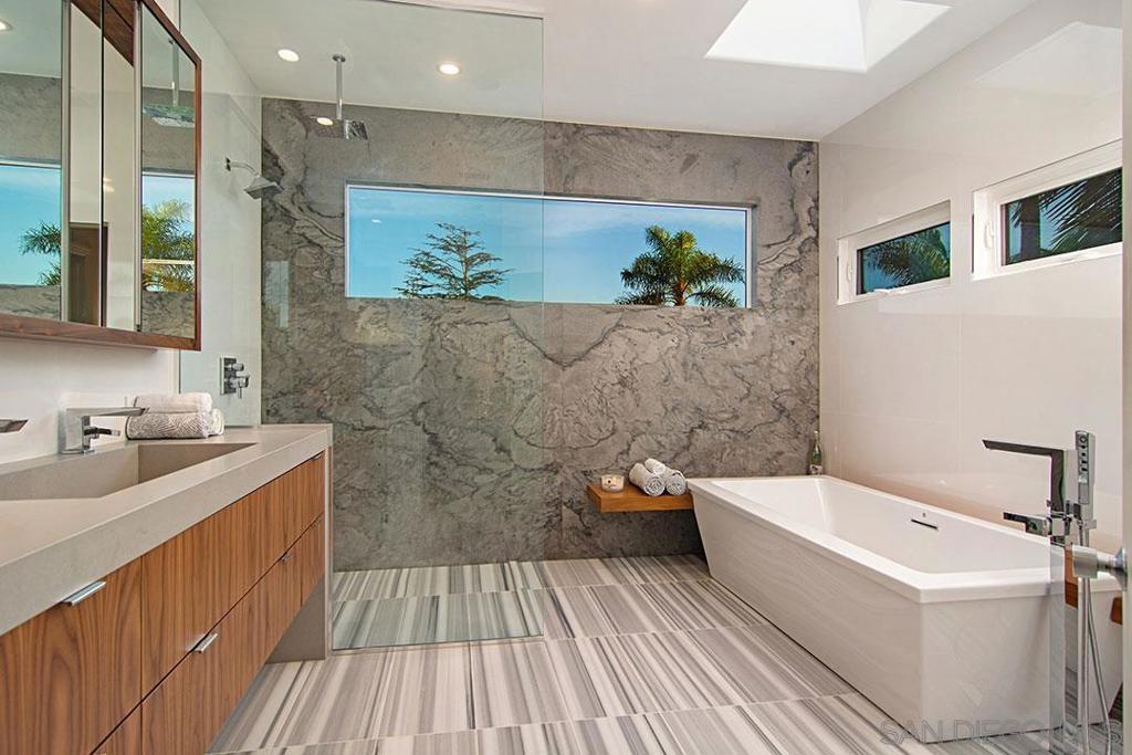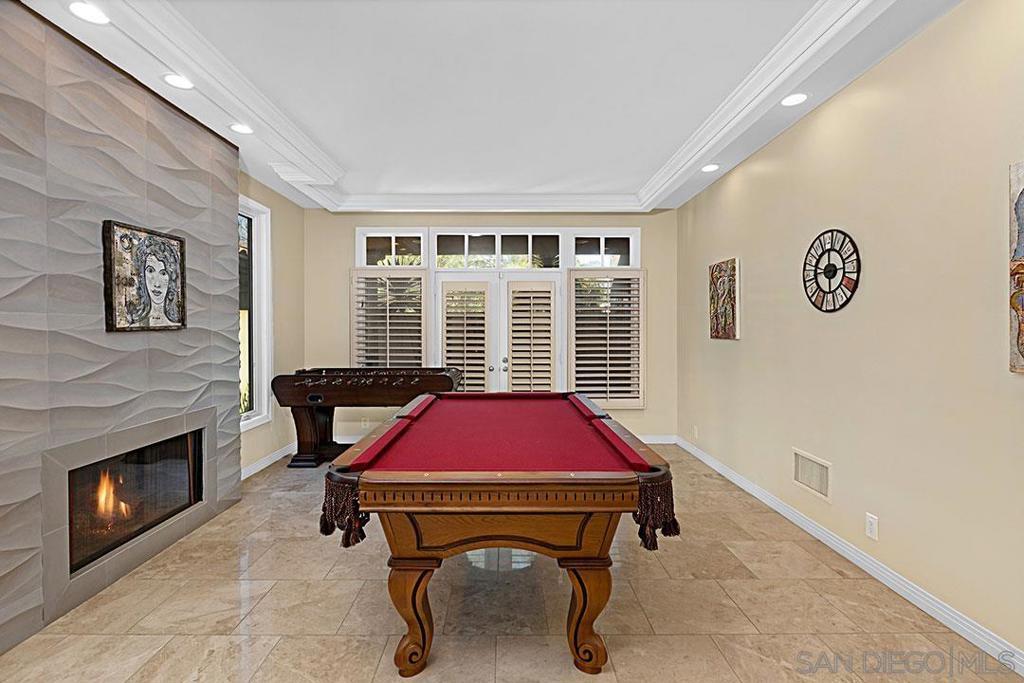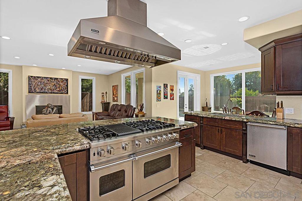 Modern Mediterranean Remodeled in The Coveted Point Loma Woods! Interior Remodeled w/ many Updates! Owned Solar, Fountain Flowing Large Lap Pool w/ Waterfall from Spa, Stylish Key Pad Entry Gate, Travertine Walkway & Columned Front Porch w/Travertine Flooring, Double Doors into Entry w/ High Ceilings. Kitchen Features Large Island, Granite Cntrtps, All Viking Applncs w/ Double Ovens, 6 Burner Gas Range, Indoor Grill, Built-In Fridge, Focal Island Hood Vent and is Open to the LR and DR. The LR Features Reclaimed Barn Wood Focal Wall &Stainless Steel Surround FPL w/ Granite Hearth. FR Features Stylish 3 Dimensional Honed Sandstone FPL, French Doors that lead to Patio. MSTR Suite Features a Large Granite FPL, Office, Both w/ Large Balconies, Walk-n Closet & the MSTR Bath Includes Entire Wall of London Smoke Quartzite Slab, Free Standing Bath Tub w/ Floating Teak Bench Surround &Walnut Cabinetry. This Stunning Home also has Many Covered Outdoor Entertaining Spaces, All Granite, Stone or Silestone Countertops throughout, Marble Flooring, Many Travertine Porches, Newer Security System W/ Cameras, French Doors, Crown Molding. Plantation Shutters, Granite Topped Built-Ins, Frosted Closet Doors, Ca. Closets, Speaker System, Outdoor Shower, Tankless Water Heater and More!