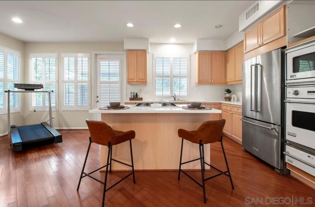 Welcome to LOMAS DEL MAR! Close to restaurants, shopping and outdoor recreation. Homemade dinners are a breeze on your solid, covered patio! Here is a "must see" opportunity to live in Lomas Del Mar, a highly sought-after development just off of of Via Da La Valle. This appealing 4-bedroom, 2.5-bathroom charmer offers a split-level, inviting layout with ground floor convenience and upstairs privacy. The property is an easy pedestrian distance to Flower Hill promenade, and just a short 3 miles to the ocean. Across the threshold, you will find it's classic charm. Featuring hardwoods in the foyer and kitchen, an open layout, bathed in natural light. A neutral palette, vaulted ceilings, and two gas burning fireplaces (living room and primary bedroom). With ample room for food prep, the kitchen is equipped a Viking double oven and a gas range in the island. Located on the main floor, the peaceful primary bedroom includes a spacious walk-in closet and a private bath with a separate tub and shower. The other three bedrooms, distributed on multi-levels for privacy, are spacious with large closets and ready to reflect your good taste in decor. The attached two-car garage has lots of newer cabinet storage. Exterior includes an inviting private patio and a breezy front porch. This home has been loved and cared for by its original owners. It's ready for a new family to make it their own.