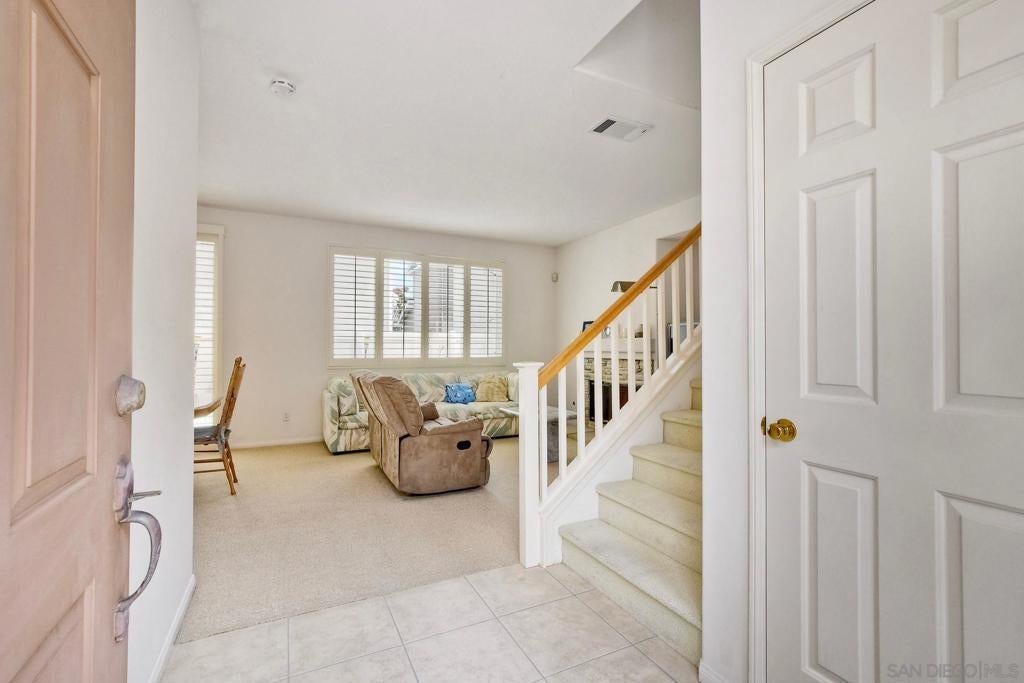 Pristine, West-Facing Corner Lot Home in Stratford Place! Welcome to this sun-drenched, beautifully maintained Model 1 residence in the highly desirable Stratford Place community. Nestled on a premium corner lot, this 3-bedroom, 2.5-bathroom home spans approximately 1,346 sq ft and combines thoughtful upgrades with timeless style. Step inside and be greeted by an abundance of natural light, plantation shutters, and a harmonious blend of Berber carpet, hardwood, and tile flooring. Additional highlights include central A/C, plenty of storage, and a location that offers easy access to parks, shopping, and top-rated schools. The open-concept main level features maple cabinetry and handrails, along with solid Corian countertops and backsplash, a stainless steel sink, and instant hot water at the kitchen—perfect for morning tea or quick cooking needs. A leaded glass window upgrade at the entryway adds a touch of elegance, setting the tone for the rest of the home. See Supplement=> The third bedroom, currently outfitted with charming French doors, offers flexibility as a spacious home office, den, or guest retreat. Upstairs, the primary suite is a serene retreat with a walk-in closet, dual sinks, and an upgraded shower enclosure—offering a spa-like feel right at home. A full-size, side-by-side laundry area and attached 2-car garage add to the convenience. Outside, unwind or entertain in your low-maintenance backyard, featuring a beautiful flagstone patio—a perfect setting for weekend gatherings or quiet evenings under the stars. Enjoy resort-style living in the Heart of San Diego! Stonecrest Village is conveniently located off Aero Drive & just an Interstate 15 off-ramp North of Mission Valley shops, Costco Warehouse & Gas Station, Lowes Home Improvement Center, Ikea, restaurants & the newly constructed Snapdragon Stadium. The 318 Acre Community of Stonecrest is minutes from most all of the major Central San Diego amenities. Each of the 6 subdivisions are surrounded by Tree-Lined Streets and enjoy membership to the State of the Art, Award Winning, Resort like Clubhouse, featuring a Junior Olympic Lap Pool, Spa, Lighted Tennis Courts, Tot-Lot, Picnic Areas, Media Room with Library, 2nd Pool Facility also with Spa, Park, Greenbelts & Trails for Walking, Jogging, Biking and Much More! Stonecrest has No Mello Roos taxes!!!
