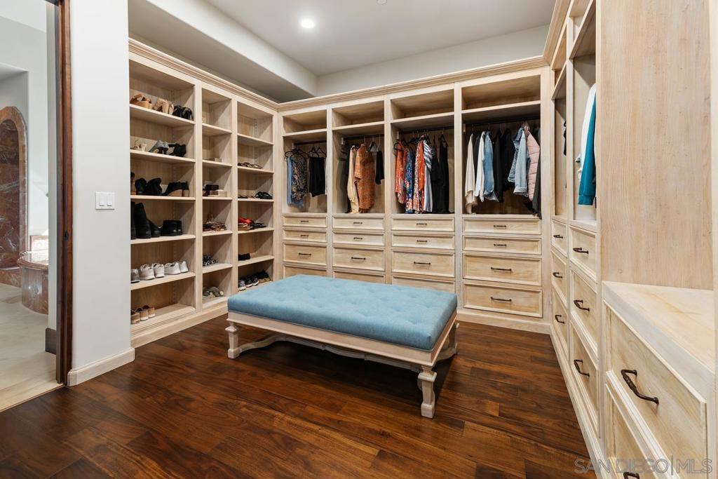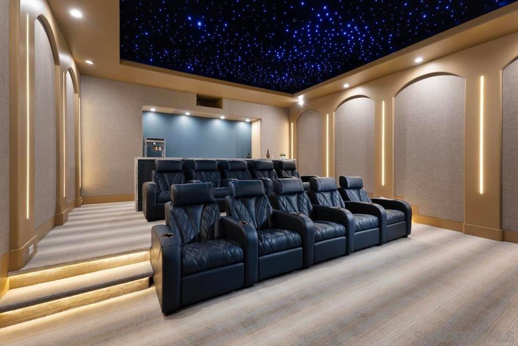Exquisite & meticulously furnished estate in desirable gated community in Rancho Santa Fe! Nestled on 2 lushly landscaped acres, this exceptional Weir Brothers built home offers the pinnacle of privacy, sophistication, and timeless craftsmanship. Designed for seamless indoor-outdoor living, the single-level main residence spans over 8500 sq. ft. and features 5 bedrooms/ 9 baths, plus brand new Dolby Atmos 360 surround sound home theater! In addition, home is complemented by 850 sq. ft. detached guest house with its own bedroom, full bathroom, living room & kitchen. Schedule your private tour today! Experience the ultimate luxury lifestyle! A sweeping circular driveway leads to grand entry doors that reveal breathtaking panoramic views of manicured gardens and unobstructed views of the valley. The formal living and dining areas provide an elegant setting for hosting unforgettable gatherings, while the expansive family room opens through lift-and-glide doors to a covered outdoor patio with a fireplace, perfect for year-round entertaining. The estate’s resort-like grounds include pool and spa, a pickleball/ sport court, gym, cold plunge, 5-hole putting green and impeccably maintained lawns, offering endless opportunities for recreation and relaxation. The gourmet kitchen, designed to meet the needs of the most discerning chef, is complemented by 72" Caliber Professional Range w/ 6 burners, Subzero refrigerators, Fisher & Paykel dishwashers, Wolf microwave, Waterstone luxury kitchen faucets and so much more! 1000 bottle temperature controlled wine cellar and wet bar makes this home perfect for entertaining. Additional highlights include luxurious primary suite with a private retreat featuring his-and-her custom closets, dual water closets, and a stunning marble-clad bath & shower area. Furthermore, home offers wood-paneled executive office and 4 well-appointed bedrooms with en-suite baths. Outdoor kitchen features Kalamazoo gourmet grill & Gozney pizza oven. Newly completed Dolby Atmos 360 surround sound home theater provides a home cinema experience you will never forget. With a five-car garage featuring a charging station and ample guest parking, hosting is effortless. Situated in a gated enclave of just 6 homes, this estate offers the ultimate in security, tranquility, and convenience—just minutes from top-rated schools, premier shopping, and some of the best beaches in San Diego. This is truly a private sanctuary of luxury living.