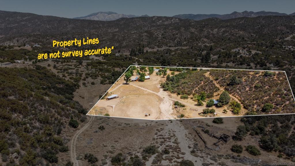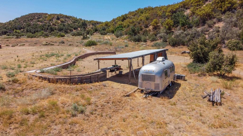 Back on the market at no fault to the seller! Bring your vision and build your dream home on this beautiful peaceful valley, right here in Anza. 2 parcels, totaling 13 acres with paved road access. There is a homesite with beautiful views, a single wide 14x56 mobile home that is ready for updating, or can be used for storage. A barn and workshop with covered concrete. Party area with its own bath, a stone cabin known as the "cantina", an airstream trailer for guests, and steam railroad traffic covering a football field sized area. This property has been used for movie sets, historical re-enactments, as well as steam powered rail events. Land has great potential for many opportunities to be used for weddings, large family gatherings, with campground, horse ranch or any event you'd like. The water well produces approximately 60 gallons per minute, which is plenty of water for any event. Large commercial septic. Come experience this beauty and bring your offers!