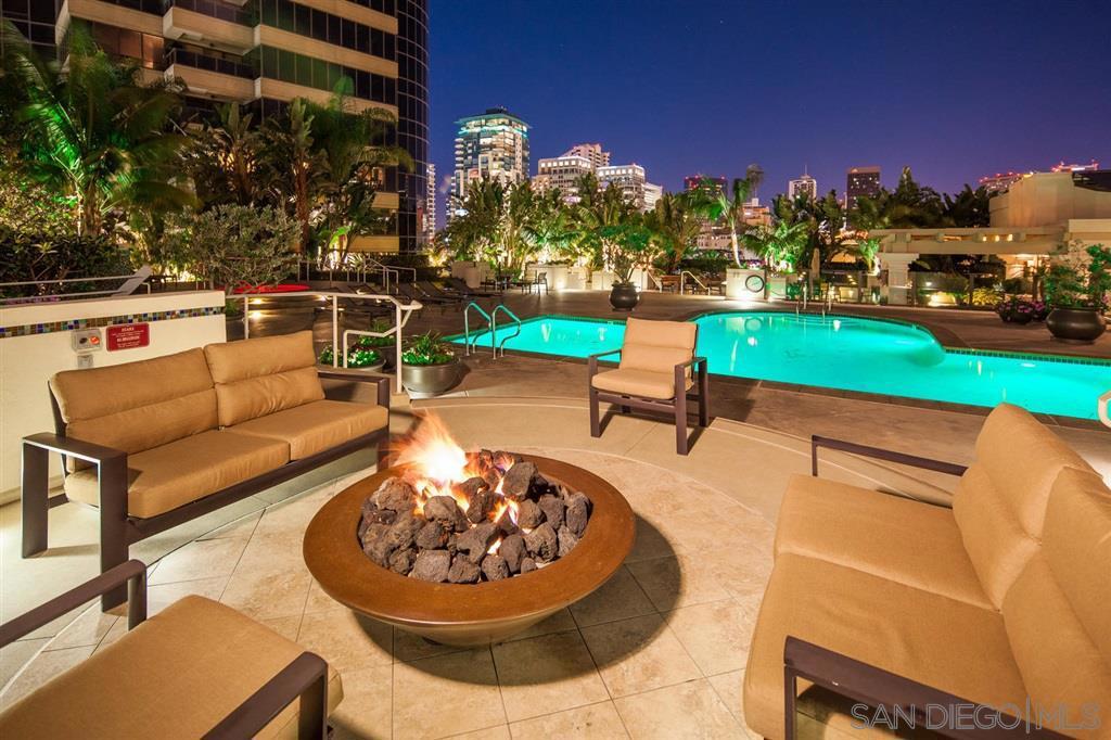 Harbor Club, considered one of the finest hi-rise communities Downtown. Perfectly close to the Harbor, Seaport Village, steps to Little Italy & Ballpark, this fabulous residence is at the crossroads to all the best San Diego has to offer. One of the best floor-plans Downtown , this Bubble design features 2 sumptuous bathrooms, beautiful travertine stone floors, spacious patio, views out to City Lights, Coronado Bridge & Seaport Village. Property is being offered at BELOW MARKET VALUE! Special Assessment ended & is completely paid by seller June 30, 2025. SEE SUPPLEMENTS BELOW BELOW MARKET VALUE! Interior finishes include stone counter-tops, appliances including new washer and dryer & more than ample cabinets & closet space. Kitchen, dining area and living room is equipped for a party of 40 or a romantic dinner for two. Harbor Club w/ it’s ideal location in the Marina District is just steps to Seaport Village, the Headquarters, the Waterfront, Little Italy and to the Ball Park. Harbor Club is designed around the beautifully enhanced exterior grounds with resort-style lap-pool & spa, lush landscaping, fire pits, BBQ area, outdoor dining areas, towering Palms Trees with up-lighting all accentuated by lounging areas & barbecues. Residents and friends may also take advantage of the spacious Community room sited adjacent to the pool area ideally set up for entertaining! Harbor Club has one of the best-equipped fitness centers Downtown and you and your guests will be welcomed in the stunning lobby inclusive of concierge service & 24-hour front desk attendant. This fine residence include 2 parking spaces. Harbor Club is also VA approved.