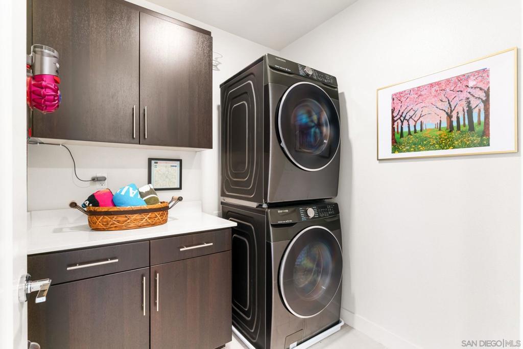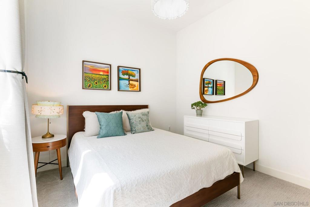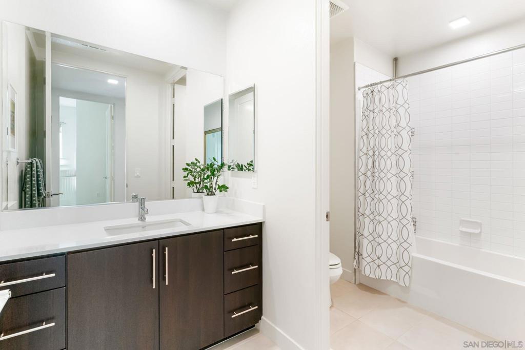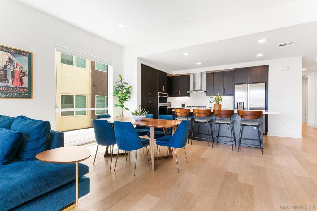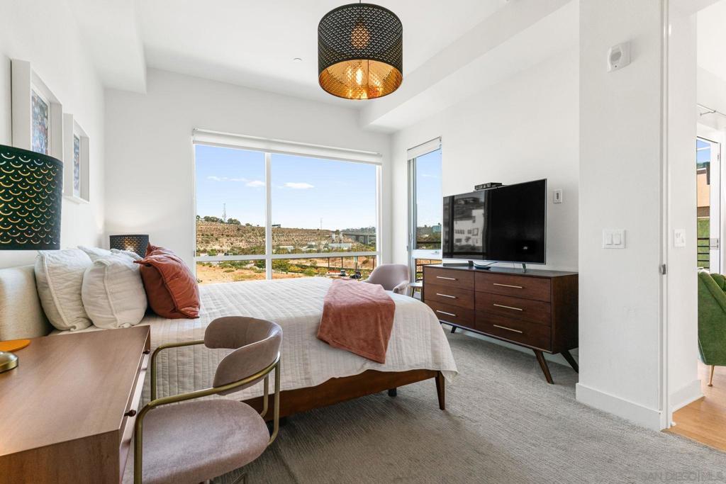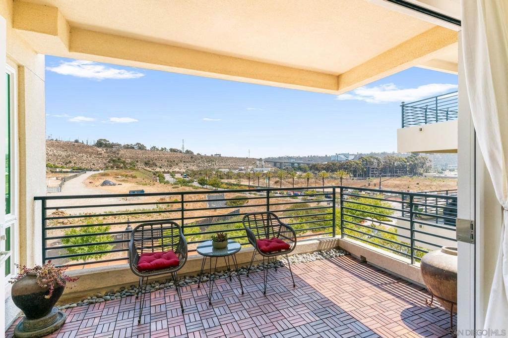 Welcome to this stylish modern 3 bed 2.5 bath home, where clean design meets comfort. The open-concept living area features 10' ceilings and natural light from oversized windows and sliding doors that frame scenic views, seamlessly extending the space onto a private balcony. The gourmet kitchen features sleek dark cabinetry, quartz countertops, a large island with bar seating, stainless steel appliances, and ample storage, making it ideal for both entertaining and everyday living. The master retreat includes expansive windows that capture hillside views, creating a bright and airy atmosphere. Located right next to Civita Park, near shopping, grocery stores, schools, and less than 15 minutes from the San Diego airport and downtown, Elevate is one of the most central locations you could live in the city. Units in this part of Civita rarely come on the market and this very special home is not to be missed. Thoughtful details such as wood floors, LED lighting throughout, separate laundry room with bonus storage and a private two-car garage complete the space. Live in luxury at Elevate at Civita! A master planned community located in Mission Valley with amenities such as sparkling community pools and spa, the Civita neighborhood park, urban gardens, amphitheater, basketball courts, dog park, jogging trails and more. A perfectly positioned neighborhood with endless opportunities to enjoy the best in San Diego living!