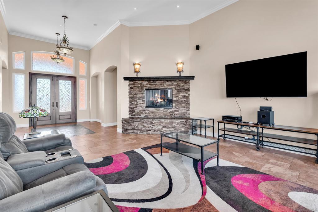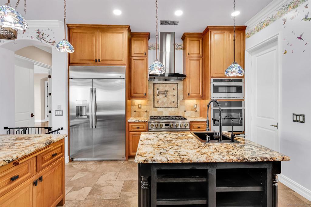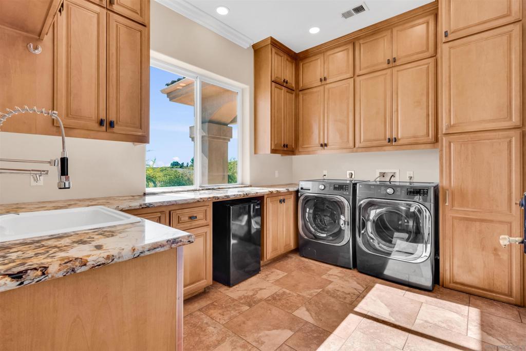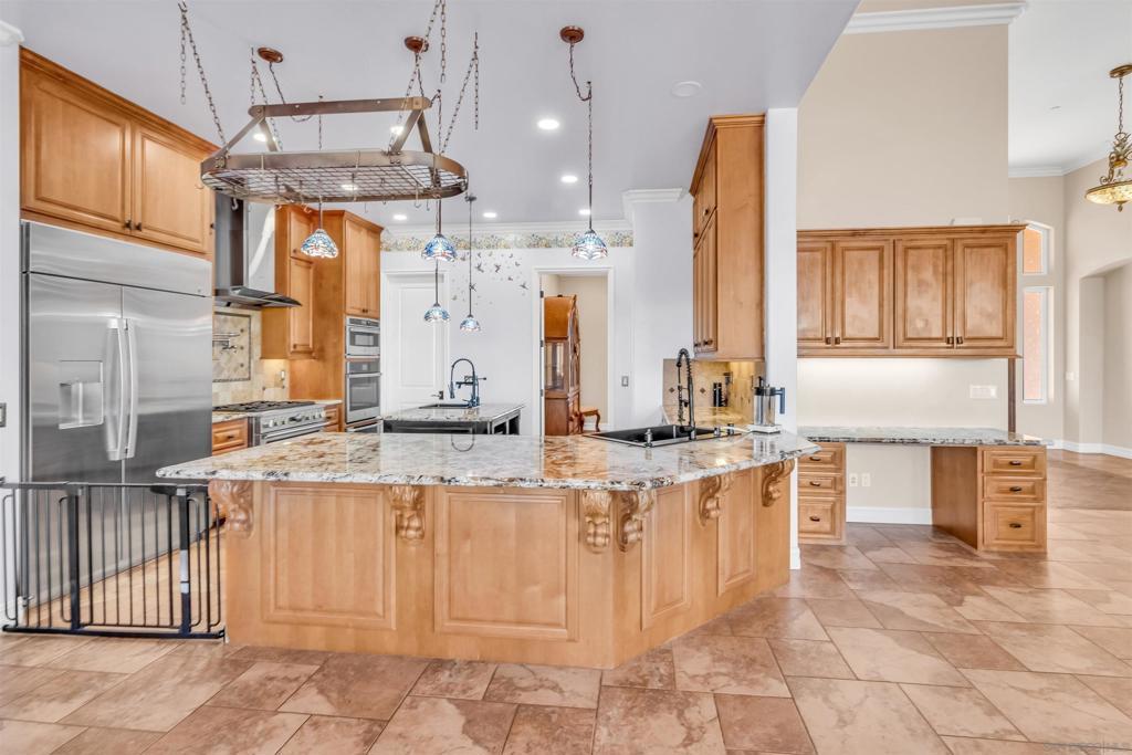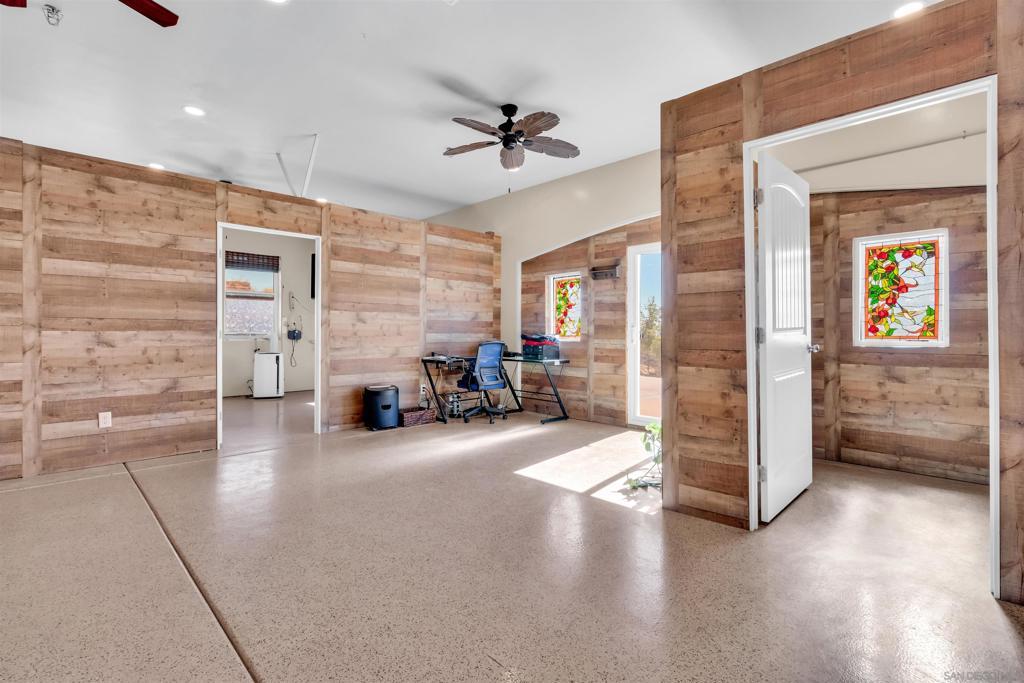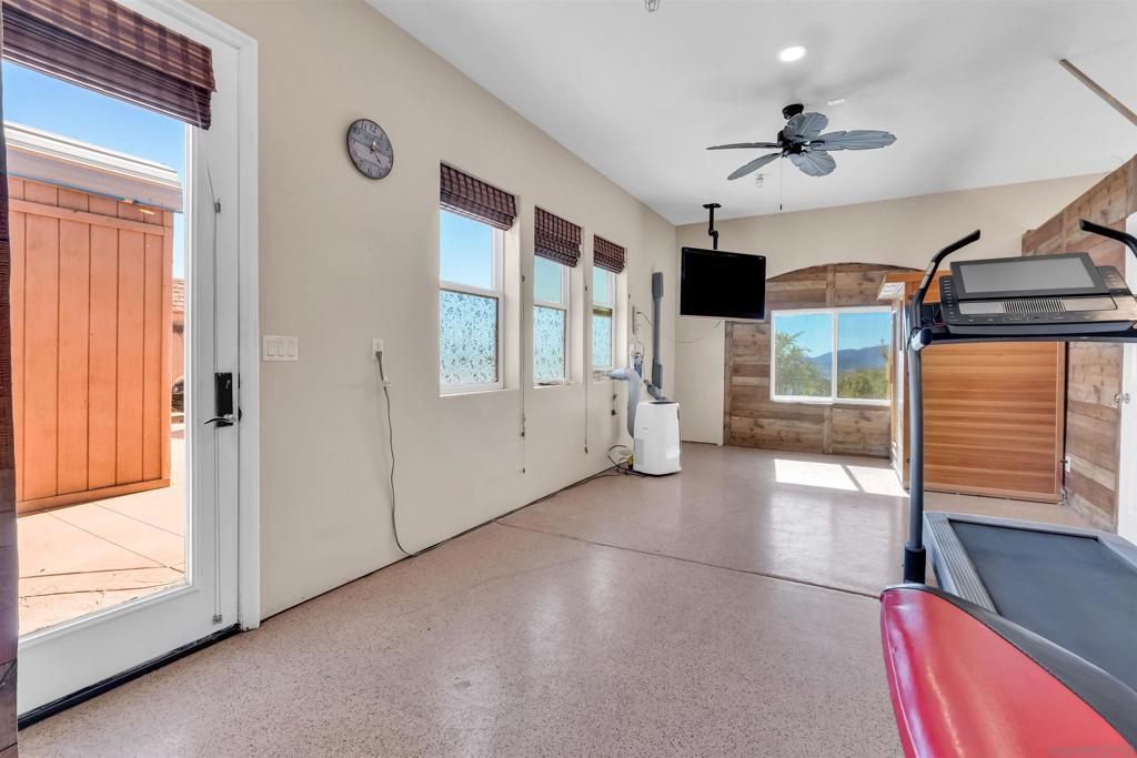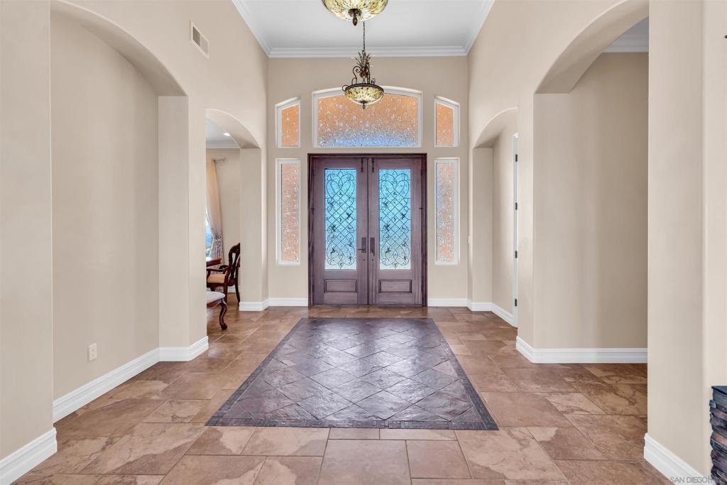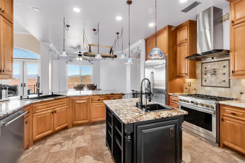 Experience true off-grid luxury on 12.8 acres of breathtaking landscape with panoramic views of mountains and valleys. This 3,212 sq. ft. estate offers complete self-sufficiency with a 14KW solar system with 56 panels, two Tesla Powerwalls, a Generac generator, a 600 ft+ deep private well producing 70 GPM, an 8,500-gallon water tank, whole-house filtration, tankless water heater, and RV hookups with a 50-amp connection. Designed for comfort as well as independence, the home features soaring 10–16 ft. ceilings, crown molding, and an open floor plan filled with natural light. The chef’s kitchen includes brand-new stainless steel appliances installed in August 2024, granite countertops, a pot-filler, and a walk-in pantry. The spacious living room has a gas fireplace and remote blinds, opening seamlessly to the dining area. The primary suite offers a private retreat with a fireplace, dual walk-in closets, spa bath with jetted tub, and oversized shower. Three additional bedrooms include a private guest suite with full bath and separate entrance. A 950 sq. ft. converted garage provides flexible space for a gym, studio, or recreation room. Outdoor living includes 170 mature pomegranate trees, a 12x24 greenhouse, automated irrigation, a detached 24x30 garage, two 50-ft cargo containers, and a workshop with a half bath. With over $140,000 in recent upgrades, this rare estate blends modern luxury with complete sustainability, offering a private sanctuary unlike any other in San Diego County.
