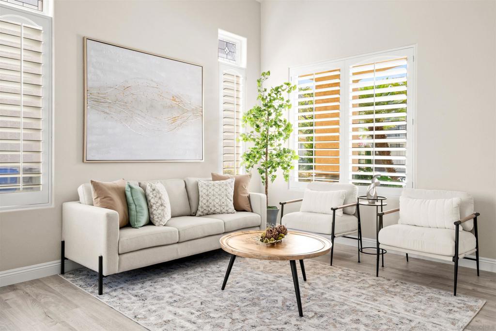 Stunning FULLY RENOVATED home in the heart of Rancho Bernardo! The grand entry welcomes you in to soaring ceilings, and a bright and open formal living and dining space. Enjoy the brand new reimagined kitchen with custom soft wood cabinets, Quartz countertops, and never used Samsung stainless appliances. Entertain guests seamlessly from the kitchen to the family space complete with cozy fire place or enjoy the sunset views from your private backyard complete with covered patio space. All bathrooms have been fully updated with brand new custom tile, cabinets, fixtures, mirrors, lights and hardware...the works! Luxury vinyl planking and fresh neutral paint throughout, as well as just added canned lighting brightens up every room! Perched at the top of the neighborhood with no home behind, 2 car garage plus driveway and guest parking adjacent makes this home one of the best locations in the neighborhood. This is a must see!