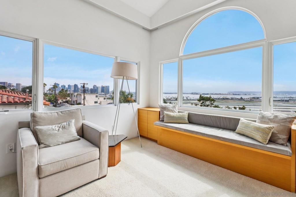 Welcome to 1295 W Redwood St, a rare South Mission Hills/Middletown gem offering exceptional space, versatility, and breathtaking views. This expansive residence boasts a flexible floor plan with multiple living, dining, and family rooms, a dedicated office, and generous flex spaces. A spacious front terrace leads to the formal entry, opening to a grand living room with a fireplace and water views, and an elegant dining room. An additional living and dining area off the gourmet kitchen—complete with a center island, custom cabinetry, high-end stainless appliances, and breakfast seating—connects to an outdoor terrace perfect for entertaining. Upstairs, both formal and service staircases lead to the oversized primary suite featuring panoramic bay and downtown views, a fireplace, dual walk-in closets, and a spa-like bath with soaking tub, walk-in shower, and dual vanities. Four additional bedrooms, three ensuite, provide comfort for family and guests. The lower level offers a perfect ADU space with a large livingroom, kitchenette, storage room, and separate entrance—ideal for multi-generational living or guests. Additional highlights include owned solar, dual HVAC systems, and Quieter Homes Program upgrades. Plus, a potential opportunity to purchase the almost 3,000 sqft vacant lot next door to create the backyard of your dreams. Perfectly located near Mission Hills, Little Italy, Downtown, and the waterfront, with easy freeway access to beaches, the airport, shopping, dining, and nightlife, this home blends luxury, convenience, and unmatched views.