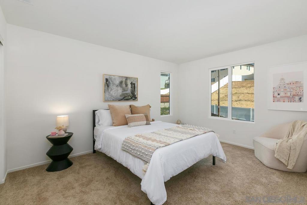 Amazing VIEW home that lives like a single level with big yard. This thoughtfully designed reverse floor plan features the living room, dining room, kitchen, and primary bedroom on the first floor. The second level offers two bedrooms plus a large den that can be used as a work-from-home space or playroom or potential as the 4th bedroom. Move-in ready with zero HOA fees or mello roos! Seated on a large usable lot directly across from the adorable new La Paz Mini Park with three fun play structures, bbq, and picnic tables. Eco-friendly electric home includes AC, an EV ready two car garage, LED lighting throughout, and solar. VA buyers welcome!