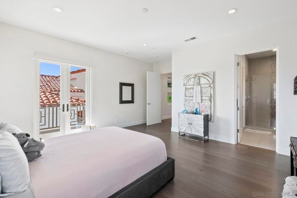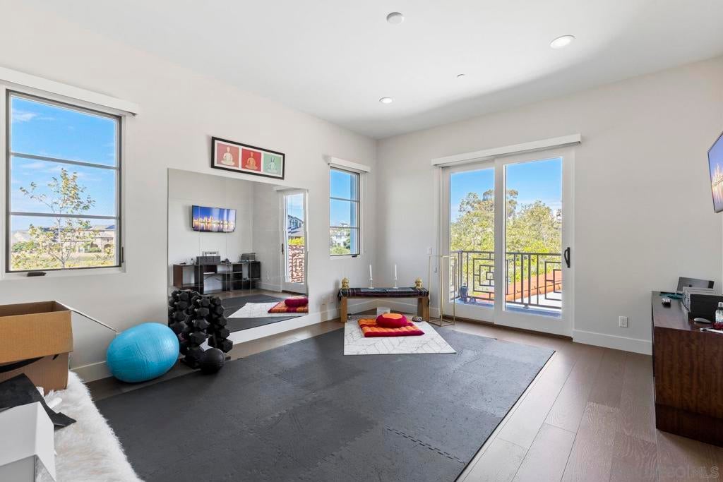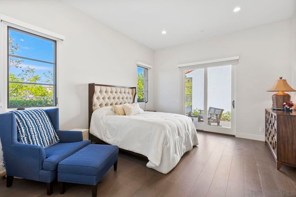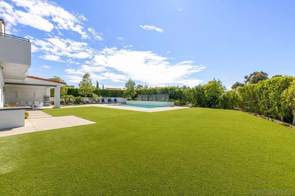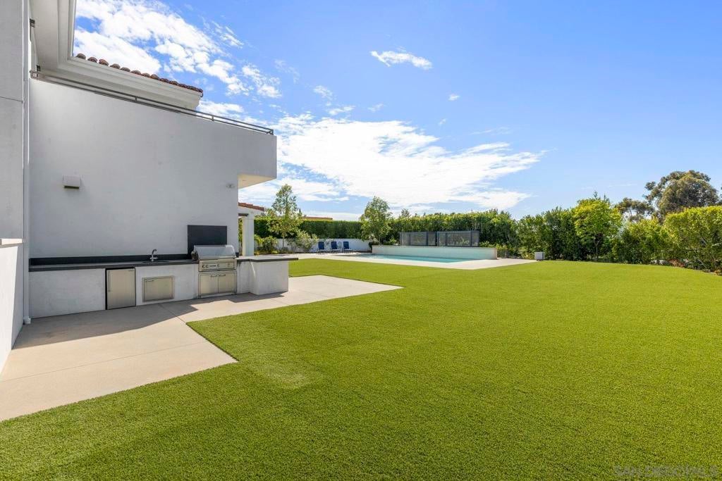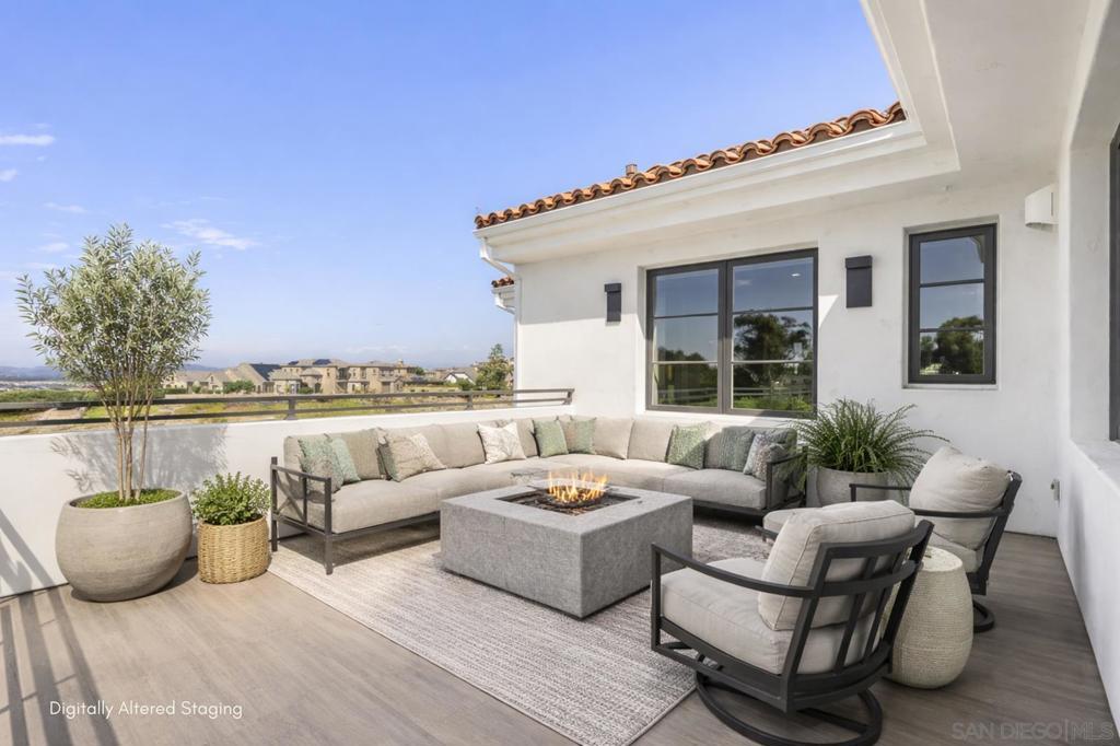 This spectacular Spanish Contemporary estate offers 7,016 SF of modern luxury on nearly an acre in the gated enclave of The Ridge Estates in Del Mar Mesa. Thoughtfully designed with extraordinary attention to detail, the home features 5 spacious ensuite bedrooms plus an office with full bath (optional 6th bedroom). A seamless blend of modern design and eco-conscious materials creates a sophisticated yet comfortable retreat. Floor-to-ceiling cantina doors open to true indoor-outdoor living: a covered loggia, sparkling pool, expansive turf play area, outdoor kitchen, and privacy hedges. The chef’s kitchen boasts Thermador appliances, dual islands, and a walk-in pantry. The primary suite offers a spa-inspired bathroom, elegant custom closet system, sleek fireplace, and private deck with 180° panoramic northern and westerly views. Additional highlights include rooftop solar, a 4-car garage with epoxy floors and abundant storage, soaring ceilings, oversized hallways, and designer finishes throughout. Nestled among Del Mar Mesa’s rolling landscapes yet just minutes from shopping, dining, and freeway access, this rare estate combines elegance, privacy, and breathtaking views—defining luxury living in North County San Diego.