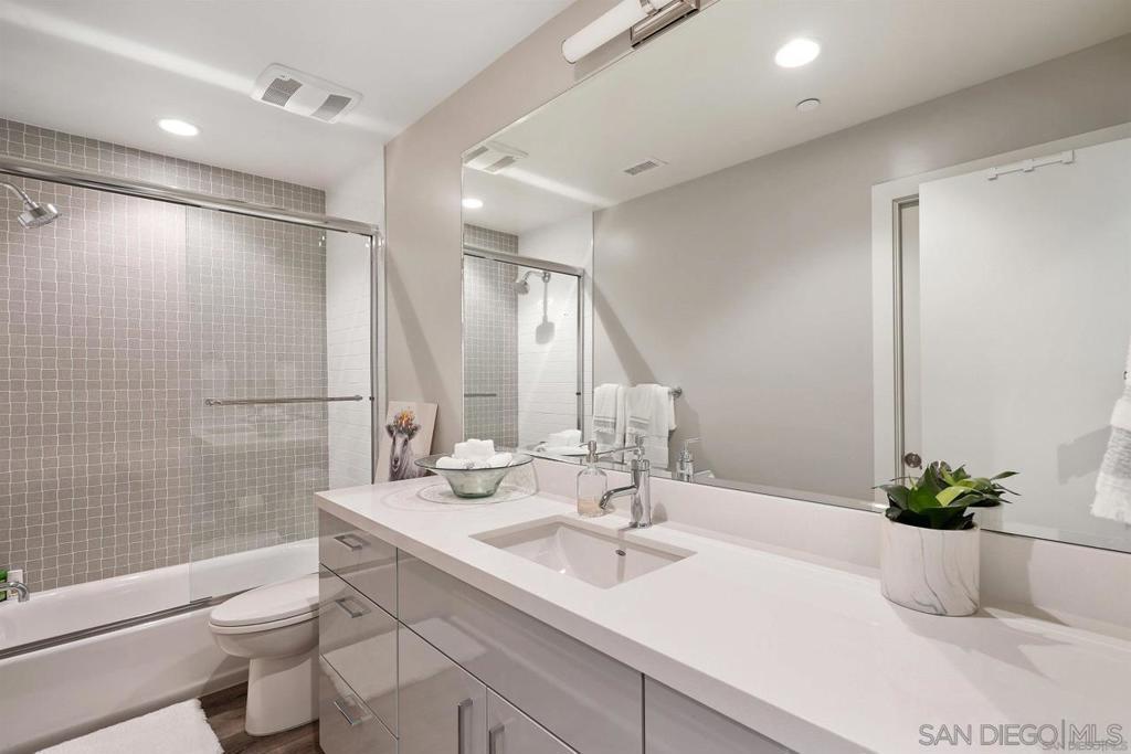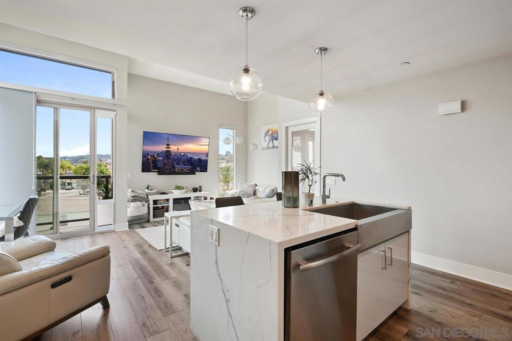 Welcome to this beautifully crafted fully furnished townhome that offers the perfect blend of sophistication and modern comfort. This corner unit boasts a contemporary showroom-style design, filled with abundant natural light and breathtaking panoramic views of the San Diego Bay, Downtown Skyline, and the picturesque Wooded Hills of Point Loma. Ideal for someone seeking a turn-key opportunity, this property is equipped with top-tier features including Jenn-air stainless steel appliances, quartz countertops, luxury vinyl plank flooring, and an oversized farm sink. Enjoy outdoor living on the rooftop deck complete with a built-in BBQ and fridge, or relax indoors with amenities such as a Juliet balcony, expansive walk-in shower, and contemporary carpet. The home also includes Kohler plumbing fixtures, a tankless water heater, high-pressure laminate designer cabinetry, and central heat & AC. For convenience, two underground side-by-side parking spots come with an added EV charger and storage space. Located close to Shelter Island, the beach/bay, and the village, this fully furnished townhome offers easy access to all the vibrant attractions San Diego has to offer, making it move-in ready for its next fortunate occupants.