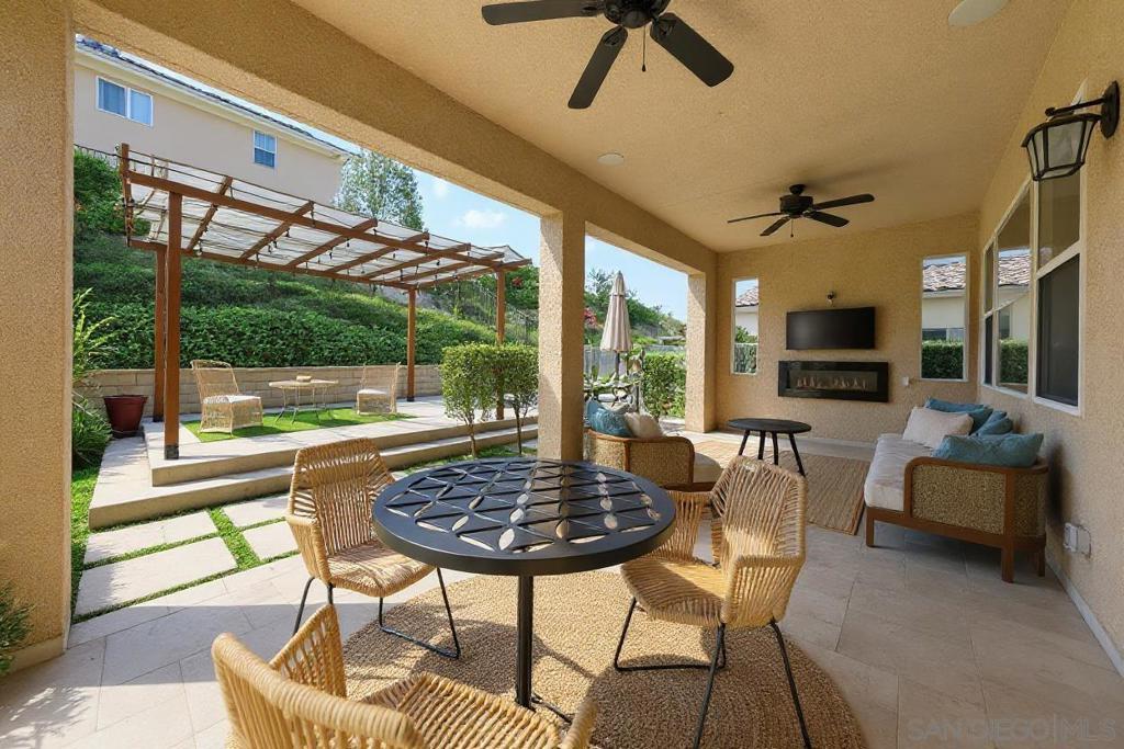 Designed for modern family living and multigenerational flexibility, this former model home in the heart of Otay Ranch offers a rare dual primary suite layout, including a highly sought-after first-floor primary—ideal for extended family, guests, or a private home office. This turnkey, move-in ready home is filled with natural light and features a spacious loft and open-concept floor plan perfect for everyday living and entertaining. The chef’s kitchen is the centerpiece of the home, showcasing a large granite waterfall island, KitchenAid stainless steel appliances, 6-burner gas range with griddle and pot filler, double ovens, walk-in pantry, and ample cabinet and counter space. The kitchen flows seamlessly into the dining area and expansive great room with surround sound and oversized windows. Downstairs highlights travertine tile flooring, a dramatic iron staircase, and a private main-level primary suite with full bath. Upstairs is ready for your personal finishing touches. The second primary retreat includes custom built-ins, a spa-like bathroom with soaking tub, dual vanities, tiled walk-in shower, an oversized walk-in closet, and a flexible loft space. Carpet is ready for replacement to refresh the look. Enjoy Southern California indoor-outdoor living with a covered patio, trellis with built-in BBQ, and a low-maintenance yard. Energy-efficient upgrades include leased solar, EV pre-wire, tankless water heater, water softener, and epoxy garage flooring. Located near parks, top-rated schools, shopping, and dining, in one of Otay Ranch’s most desirable communities.