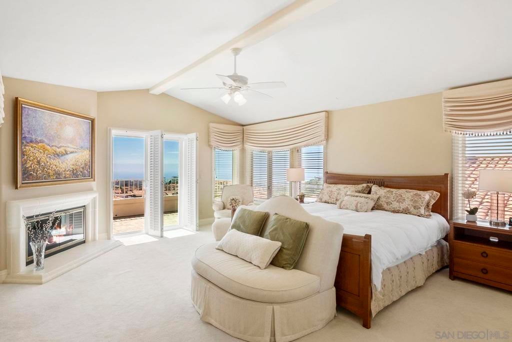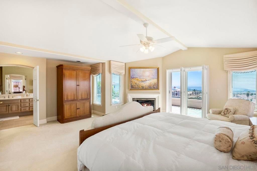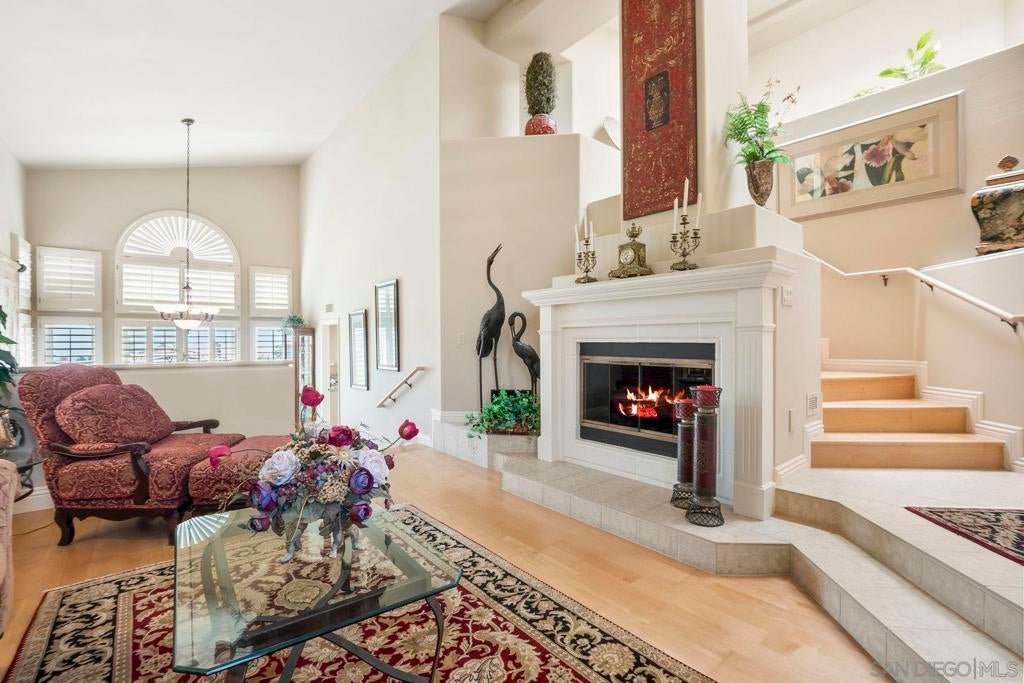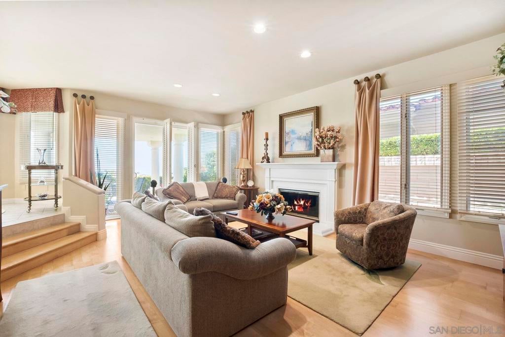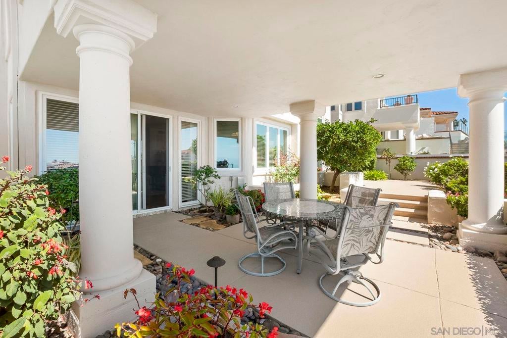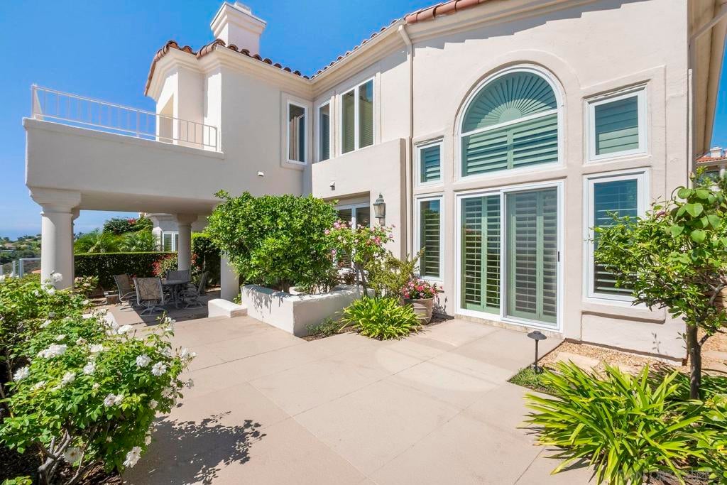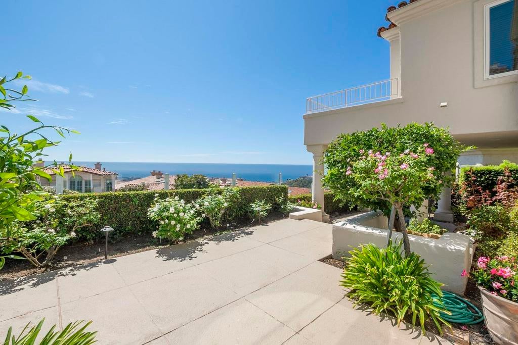Nestled in the coveted gated enclave of Crystal Bay in La Jolla, this exquisite two-story residence blends timeless elegance with breathtaking coastal views. A grand double-door entry opens to soaring ceilings and abundant natural light, with tile at the entry transitioning to neutral-toned hardwood flooring. The formal living room offers a beautiful gas fireplace, hardwood flooring, and plantation shutters, while the dining room, accented by a chandelier, opens to a private patio with sweeping views from downtown to the Pacific Ocean along with refreshing coastal breezes. The kitchen showcases granite counters with a matching backsplash, light cabinetry, and a breakfast bar overlooking the family room below. A breakfast nook completes the space, and together these areas flow seamlessly into the family room, where a second fireplace, and sliding doors create an inviting setting for indoor-outdoor living. A first-floor bedroom and full bath, spacious laundry room, and three-car garage add to the appeal. Upstairs, the primary suite offers vaulted ceilings, a cozy fireplace, walk-in closet with organizers, and a private balcony with ocean views. The primary bath features dual sinks, granite counters, a soaking tub and walk-in shower. Outdoor living includes a two-level patio framed by Mediterranean-style pillars and a lime tree, with both shaded and open areas to enjoy coastline views. Residents enjoy exclusive access to a clubhouse, fitness center, pool, and pickleball courts, all within one of La Jolla’s most desirable gated communities. All furniture is negotiable as well.