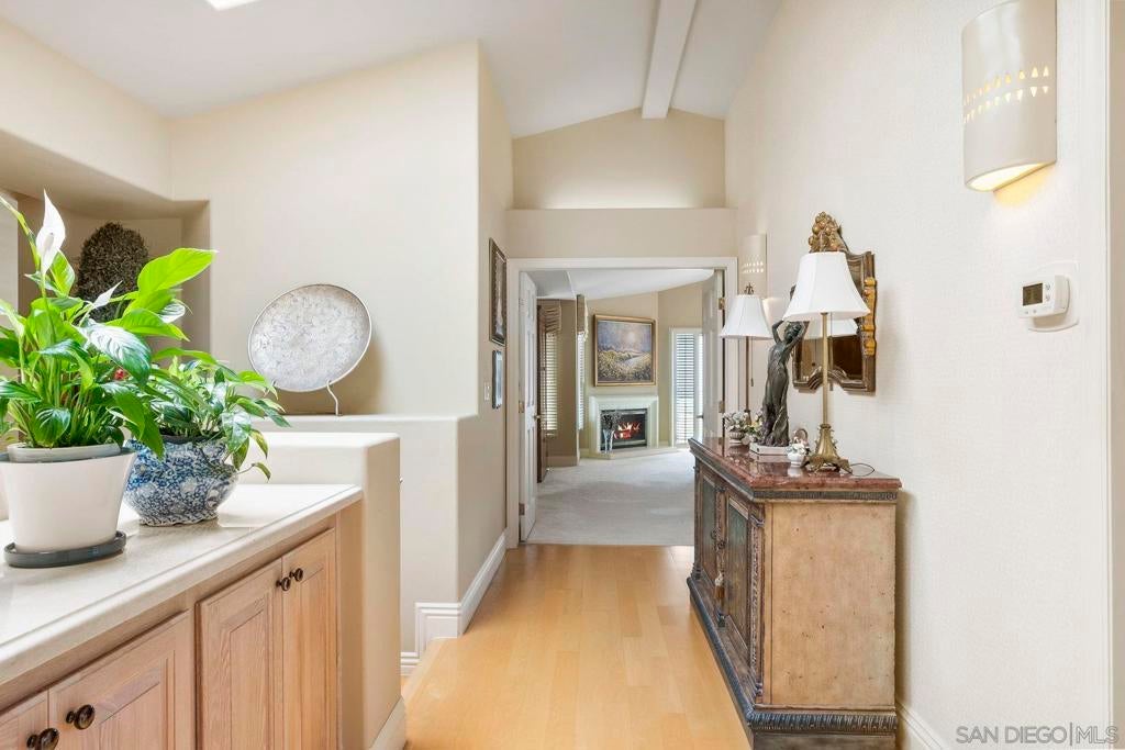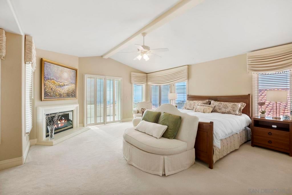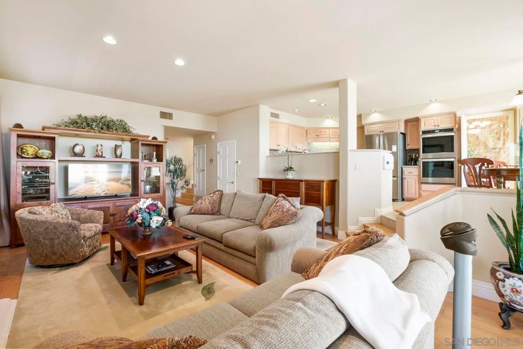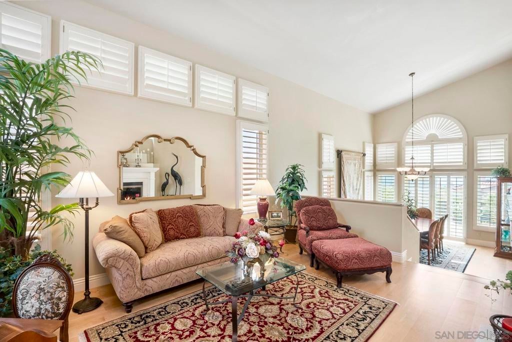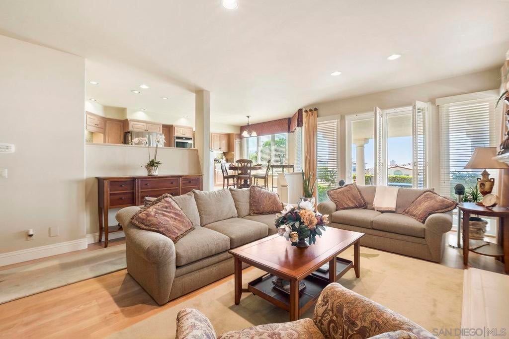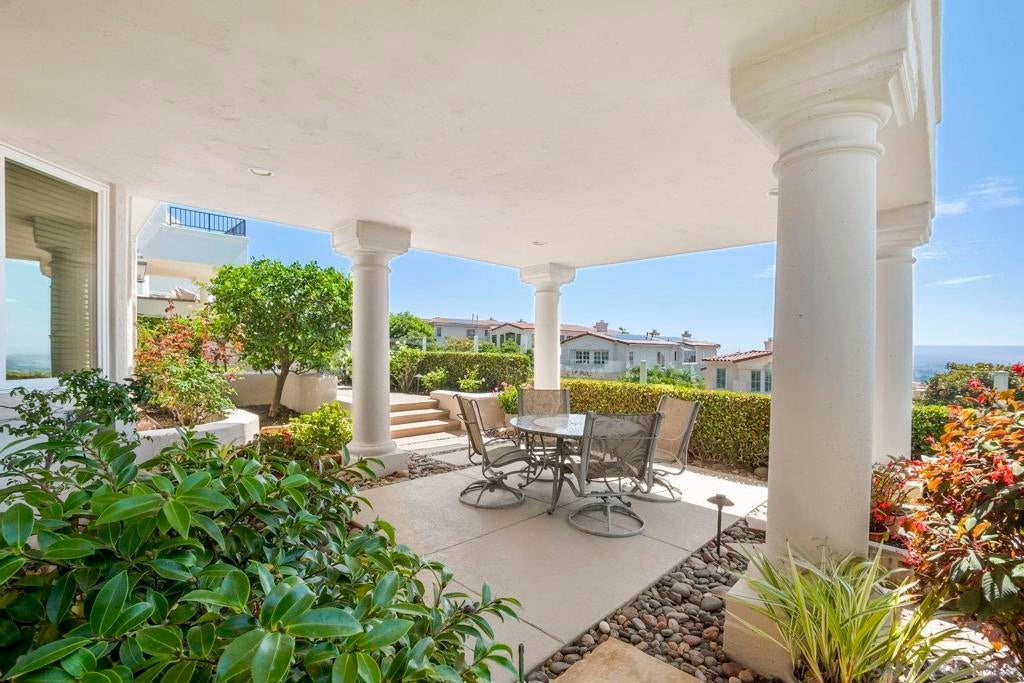 Nestled in the coveted gated enclave of Crystal Bay in La Jolla, this exquisite two-story residence blends timeless elegance with breathtaking coastal views. A grand double-door entry opens to soaring ceilings and abundant natural light, with tile at the entry transitioning to neutral-toned hardwood flooring. The formal living room offers a beautiful gas fireplace, hardwood flooring, and plantation shutters, while the dining room, accented by a chandelier, opens to a private patio with sweeping views from downtown to the Pacific Ocean along with refreshing coastal breezes. The kitchen showcases granite counters with a matching backsplash, light cabinetry, and a breakfast bar overlooking the family room below. A breakfast nook completes the space, and together these areas flow seamlessly into the family room, where a second fireplace, and sliding doors create an inviting setting for indoor-outdoor living. A first-floor bedroom and full bath, spacious laundry room, and three-car garage add to the appeal. Upstairs, the primary suite offers vaulted ceilings, a cozy fireplace, walk-in closet with organizers, and a private balcony with ocean views. The primary bath features dual sinks, granite counters, a soaking tub and walk-in shower. Outdoor living includes a two-level patio framed by Mediterranean-style pillars and a lime tree, with both shaded and open areas to enjoy coastline views. Residents enjoy exclusive access to a clubhouse, fitness center, pool, and pickleball courts, all within one of La Jolla’s most desirable gated communities. All furniture is negotiable as well.
