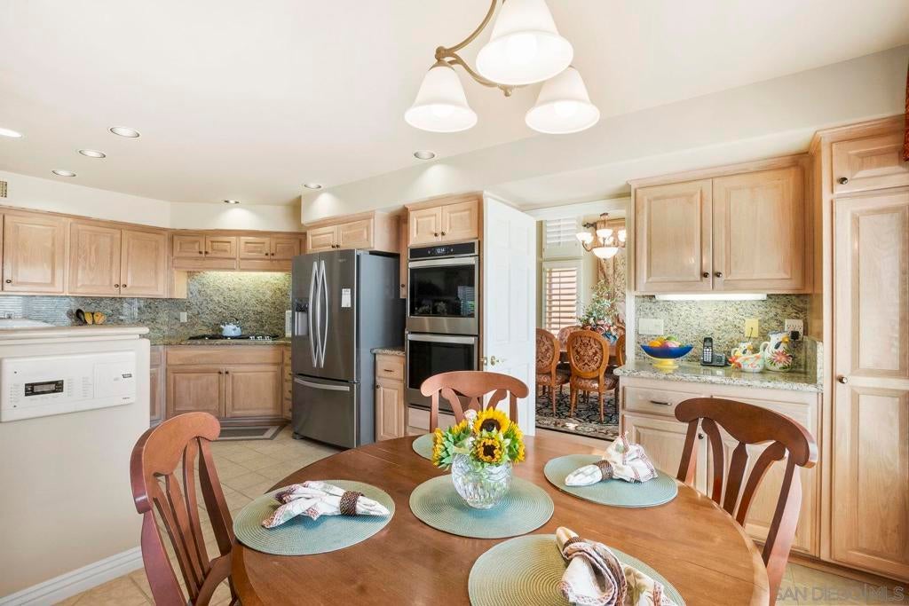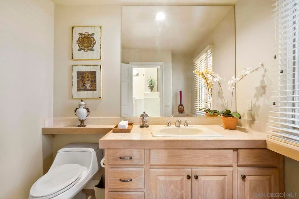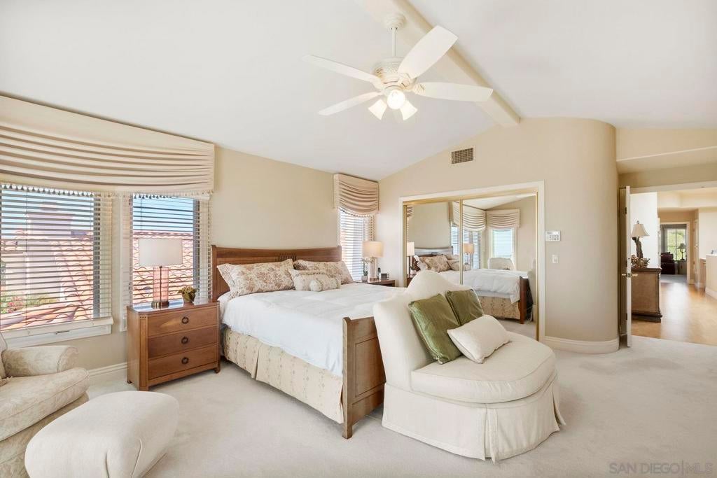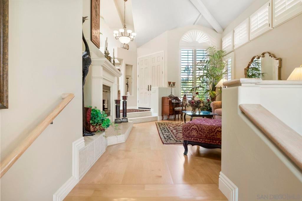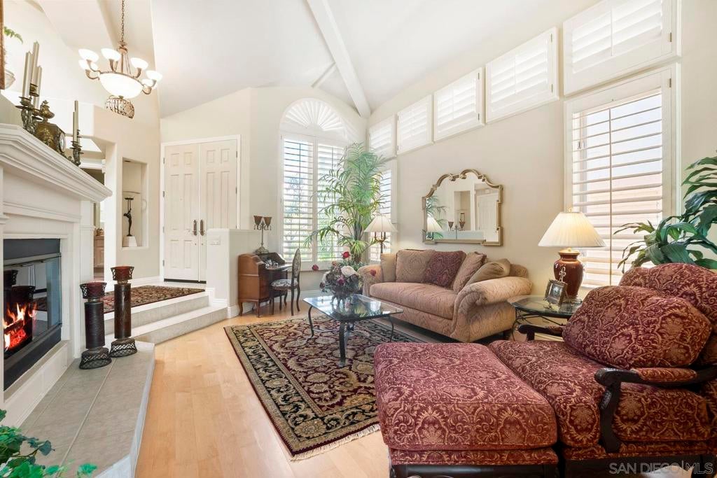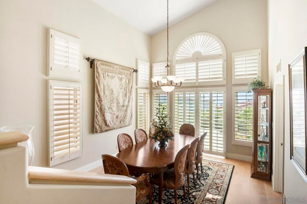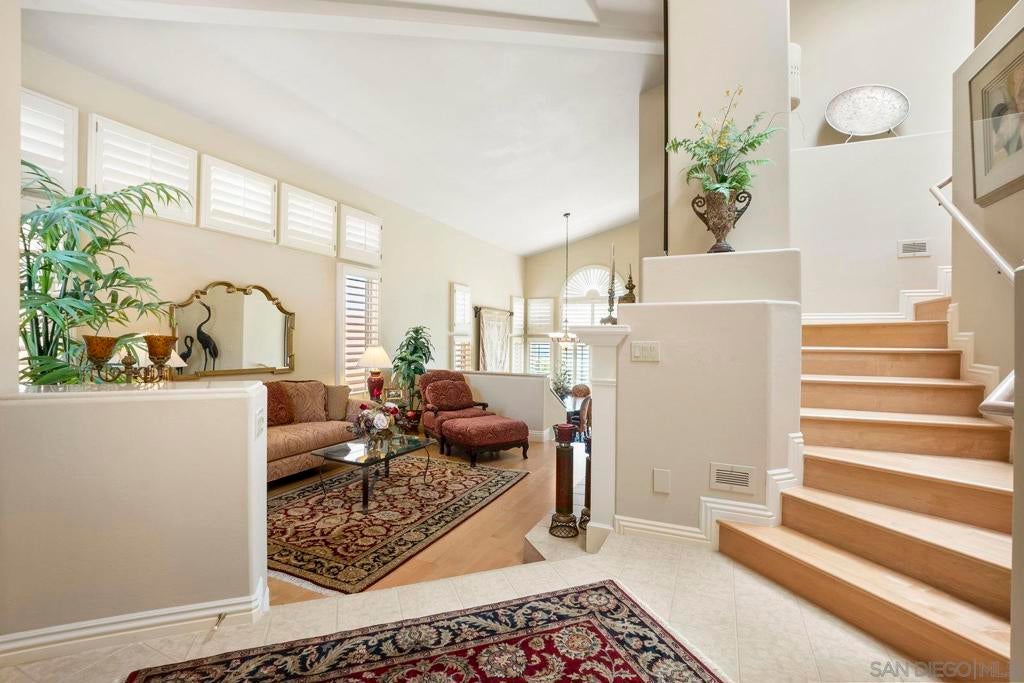 Nestled in the coveted gated enclave of Crystal Bay in La Jolla, this exquisite two-story residence blends timeless elegance with breathtaking coastal views. A grand double-door entry opens to soaring ceilings and abundant natural light, with tile at the entry transitioning to neutral-toned hardwood flooring. The formal living room offers a beautiful gas fireplace, hardwood flooring, and plantation shutters, while the dining room, accented by a chandelier, opens to a private patio with sweeping views from downtown to the Pacific Ocean along with refreshing coastal breezes. The kitchen showcases granite counters with a matching backsplash, light cabinetry, and a breakfast bar overlooking the family room below. A breakfast nook completes the space, and together these areas flow seamlessly into the family room, where a second fireplace, and sliding doors create an inviting setting for indoor-outdoor living. A first-floor bedroom and full bath, spacious laundry room, and three-car garage add to the appeal. Upstairs, the primary suite offers vaulted ceilings, a cozy fireplace, walk-in closet with organizers, and a private balcony with ocean views. The primary bath features dual sinks, granite counters, a soaking tub and walk-in shower. Outdoor living includes a two-level patio framed by Mediterranean-style pillars and a lime tree, with both shaded and open areas to enjoy coastline views. Residents enjoy exclusive access to a clubhouse, fitness center, pool, and pickleball courts, all within one of La Jolla’s most desirable gated communities. All furniture is negotiable as well.