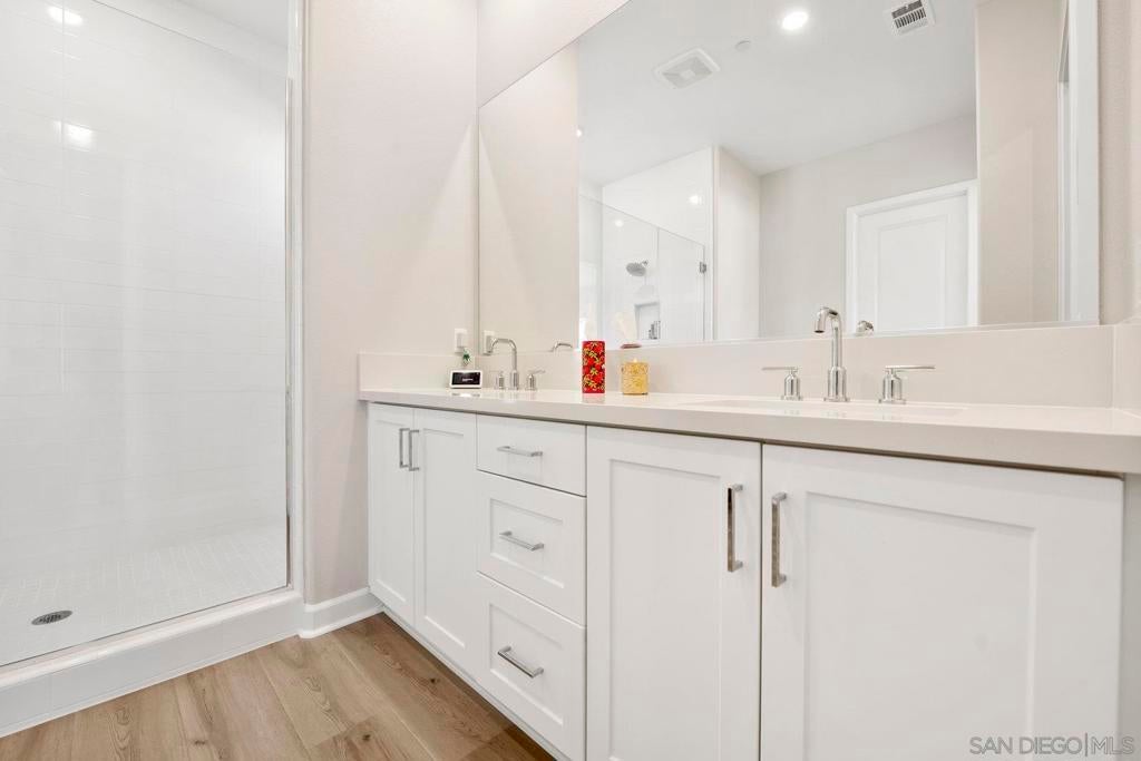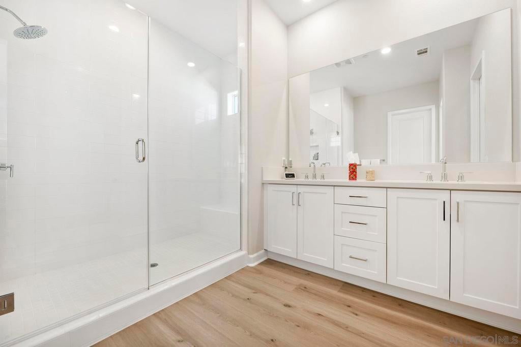 Welcome to this stunning single-story home located in the desirable gated Junipers community. This desirable "Woodlands Plan-1 Model" is designed exclusively for those 55 and better. Set on a generous lot, this upgraded residence offers modern comfort, energy efficiency, and a peaceful lifestyle. Step inside to find luxury vinyl plank flooring, creating a warm and cohesive flow. This brand new kitchen features sleek quartz countertops, new white shaker cabinets, and an open layout perfect for entertaining. Energy-conscious buyers will appreciate the additional solar panels, helping to keep utility costs low. Enjoy the privacy and space of a well-sized backyard with endless opportunities. This home is perfectly situated within the community, offering both convenience and tranquility. Don't miss your opportunity to own a move-in ready gem in one of Rancho Peñasquitos' most sought-after active adult neighborhoods! Amenities include, Luxury Pool, Pickle Ball Courts, Gym, and Clubhouse for all the Social events.