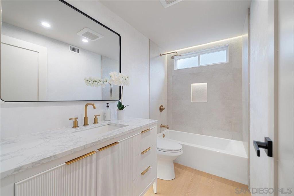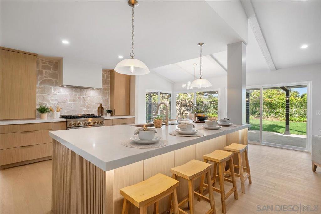 Located between the La Costa and Aviara Resorts and adjacent to the Batiquitos Lagoon, this fully remodeled detached 4-bedroom, 3-bath home offers an exceptional coastal lifestyle. The home features an open concept floor plan with all new flooring, paint, kitchen, bathrooms, and accent lighting throughout. The spacious kitchen includes new cabinetry, countertops, and appliances, while the living and dining areas open through three large sliding glass doors to an expansive wrap-around lanai with pergola and sweeping views. Both primary suites feature cathedral ceilings, sitting areas, and ensuite bathrooms, ideal for multi-generational living, guest accommodations, or a home office setup. Additional upgrades include dual new central air conditioning systems (installed 2022), a new water heater (2023), and a newer furnace (2015). Located close to award-winning schools, golf, and beaches, this residence combines modern comfort with convenience. No HOA dues, fees, or assessments. Homes in this sought-after neighborhood rarely become available, don’t miss this opportunity.