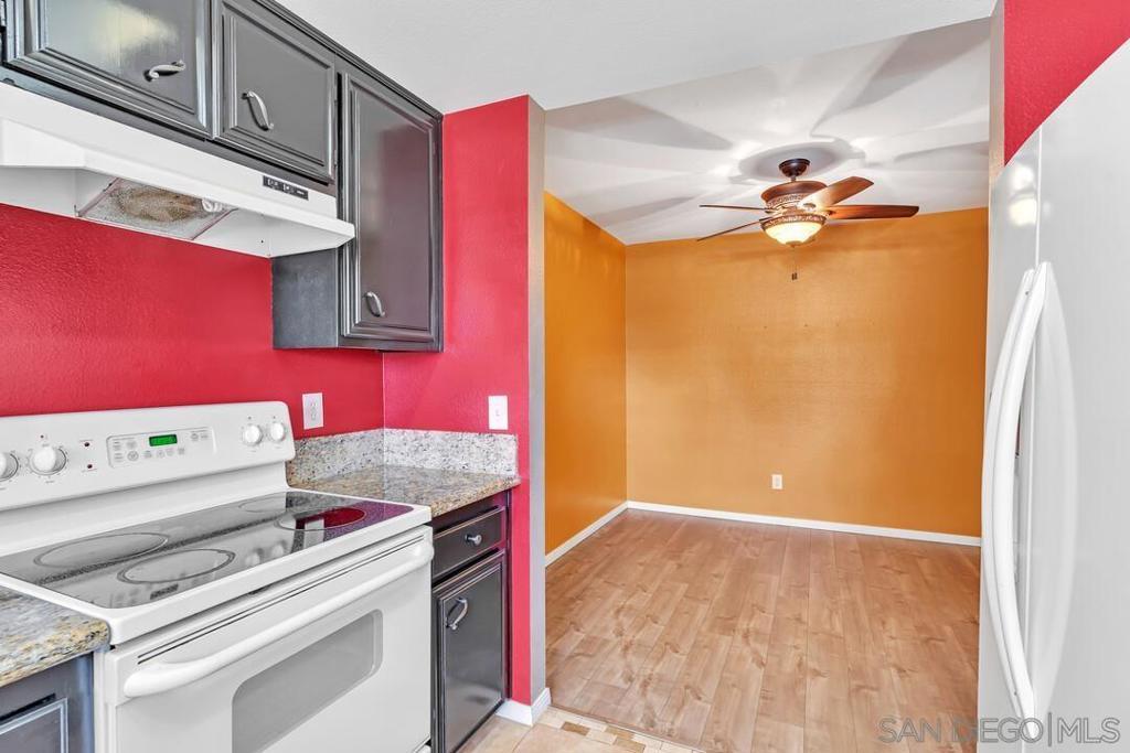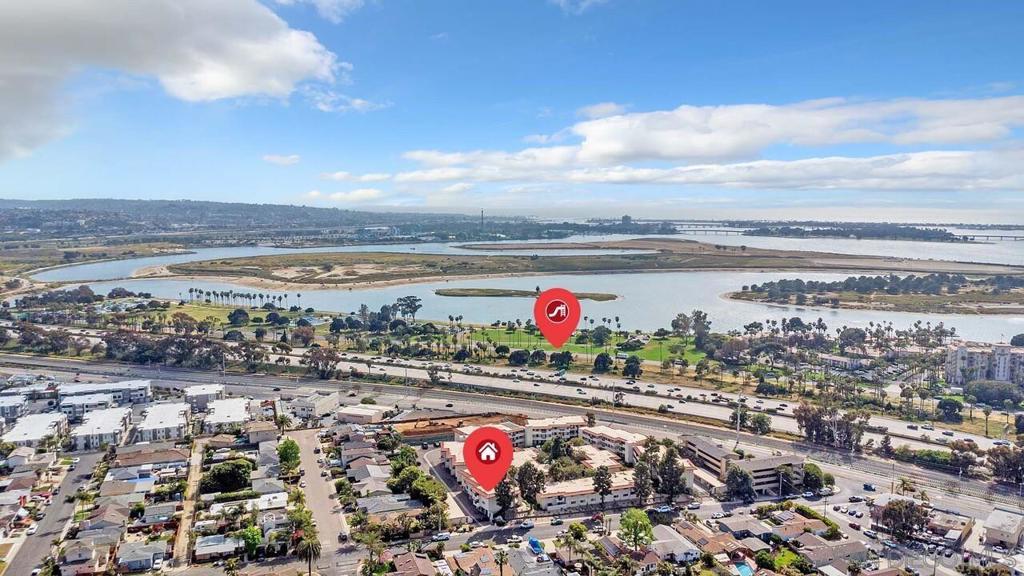 This 1,100 sq. ft. 2-bed 2-bath condo is part of a gated community in a prime location. The Bay Park Condominium complex consists of 70 units, a pool, a hot tub, and a BBQ area. The condo is on the top floor, providing a quiet environment. It comes with 2 conveniently located parking spots with a nearby elevator. Double-paned windows offer enhanced security and reduce noise. There are two nearby exits off the I-5 (Sea World Drive and Clairemont). Mission Bay is directly across the I-5! Key Features: 1. Upgraded kitchen with granite countertops 2. Upgraded bar nook with granite countertop, storage, and wine rack 3. Built-in bookshelf unit with fireplace, entertainment center, and ample storage 4. Large capacity washer/dryer in unit 5. Security screen door at front entrance 6. Plantation shutters 7. Walk-in closet in primary bedroom 8. Balcony off primary bedroom 9. Gated complex with two remote control access gates 10. Two assigned parking spaces - one under a carport (with a locking storage area) and one uncovered 11. Pool and large hot tub 12. Covered BBQ area with 4 gas grills 13. Clubhouse for hosting events 14. Locked bike storage room Key Features: 1. Upgraded kitchen with granite countertops 2. Upgraded bar nook with granite countertop, storage, and wine rack 3. Built-in bookshelf unit with fireplace, entertainment center, and ample storage 4. Large capacity washer/dryer in unit 5. Security screen door at front entrance 6. Plantation shutters 7. Walk-in closet in primary bedroom 8. Balcony off primary bedroom 9. Gated complex with two remote control access gates 10. Two assigned parking spaces - one under a carport (with a locking storage area) and one uncovered 11. Pool and large hot tub 12. Covered BBQ area with 4 gas grills 13. Clubhouse for hosting events 14. Locked bike storage room
