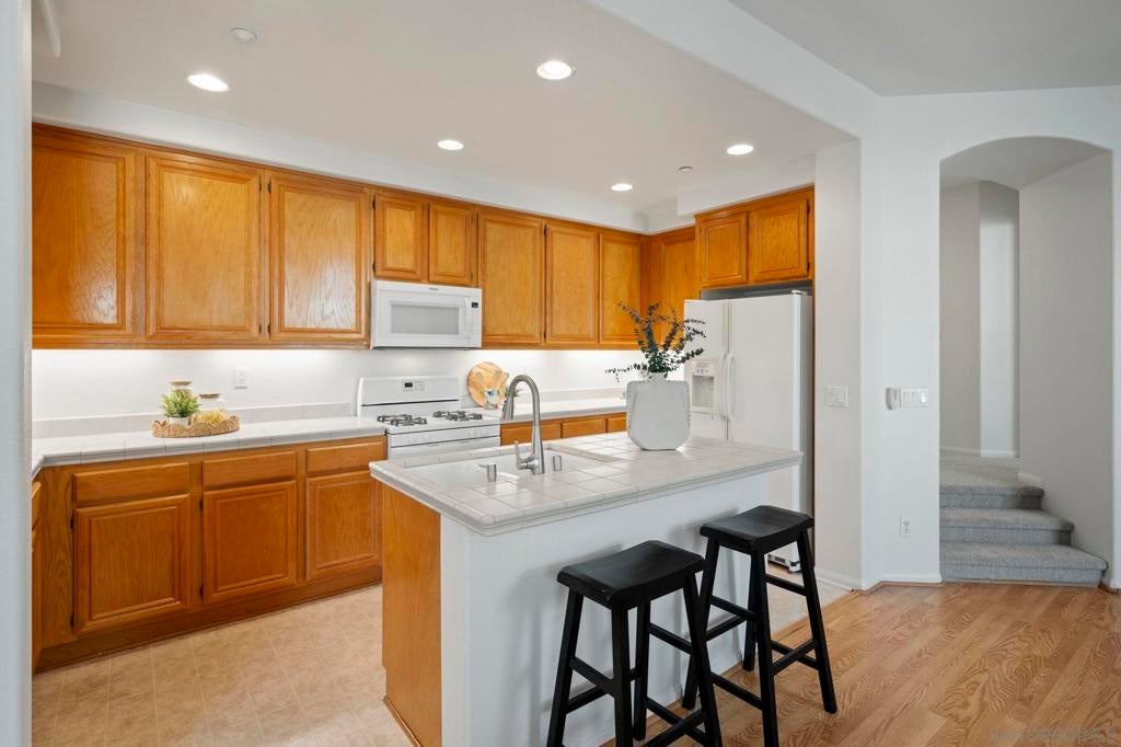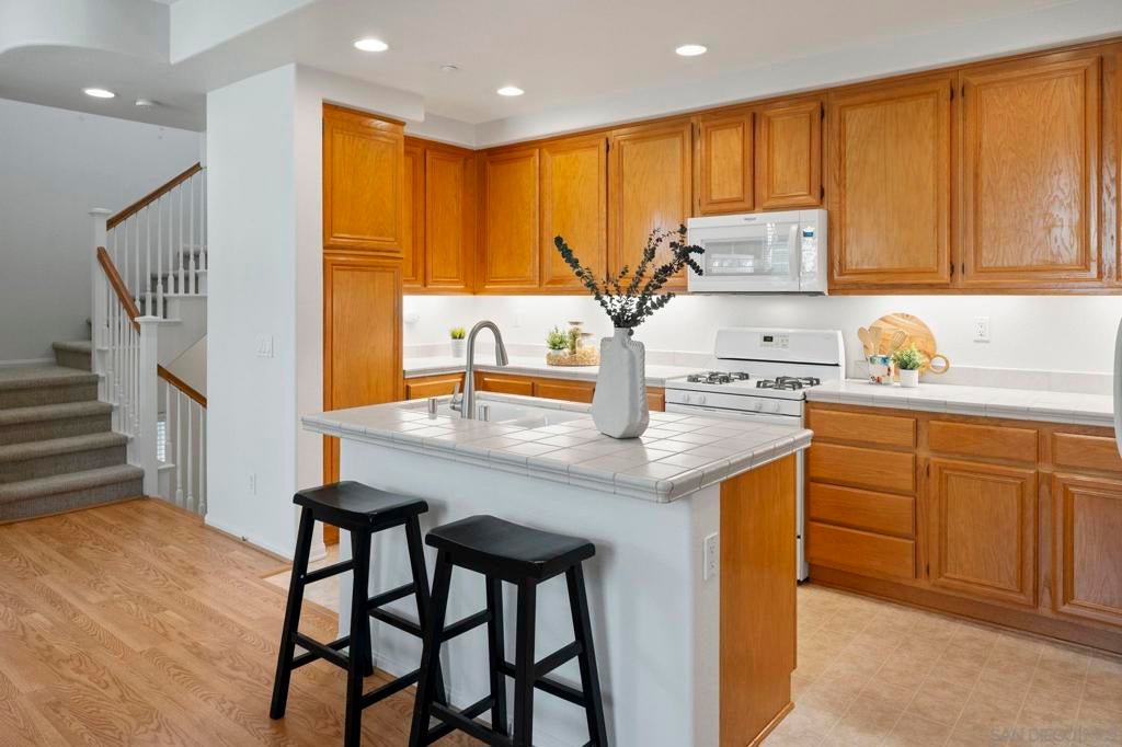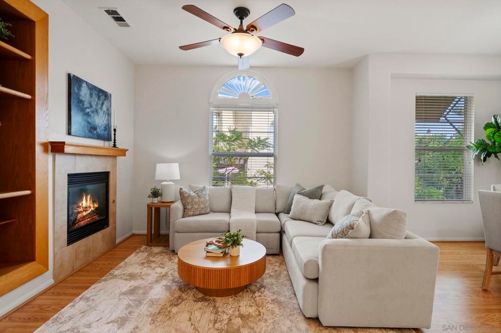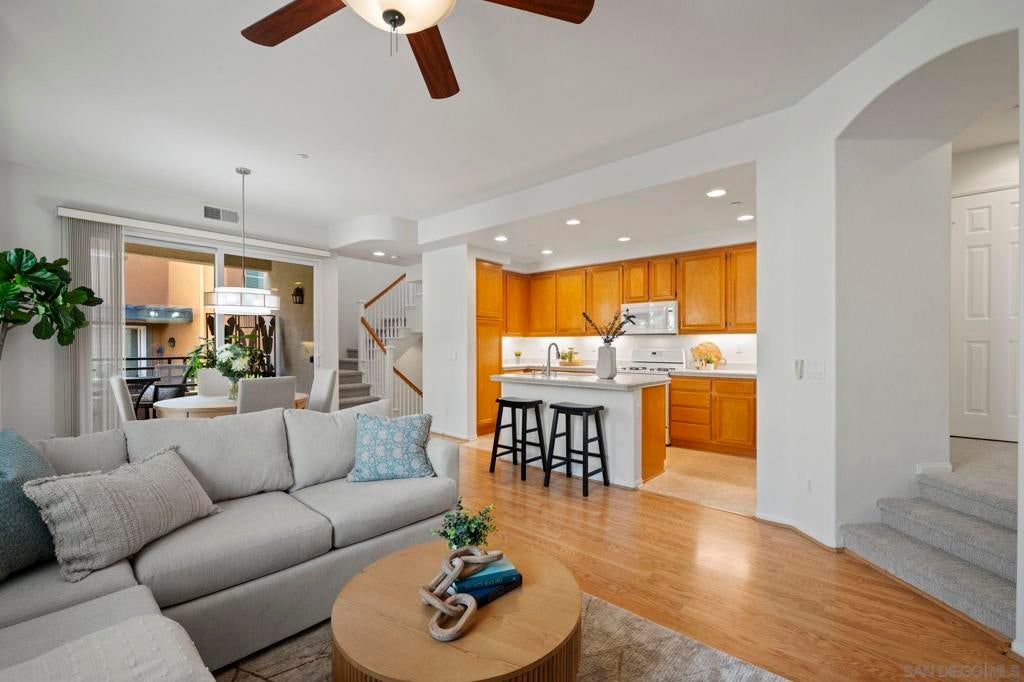 Sellers will entertain offers between $849k-$869k. Tucked within the gated community of Bridges at Escala, this home offers both privacy and convenience—just minutes from beaches, shopping, dining, downtown, freeways, and Snapdragon Stadium. The well-designed layout features an open-concept main level with an island kitchen, dining area, and living room filled with natural light. One bedroom and full bath are located on the second level, while two ensuite bedrooms occupy the third—providing flexibility and privacy for guests or family. Recent updates include new carpet, fresh interior paint. The home also includes laminate flooring on main level, a two-car attached garage and a prime location set back from traffic and surrounded by trees for a tranquil feel. Residents enjoy Escala’s resort-style amenities with pools, spa, clubhouse, fitness center, and tennis courts.