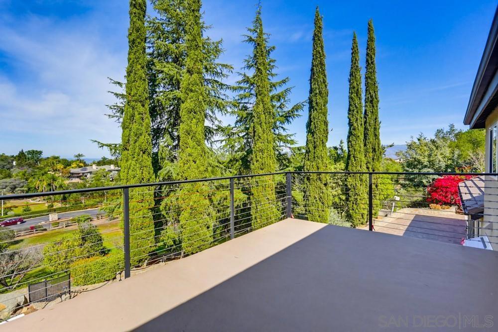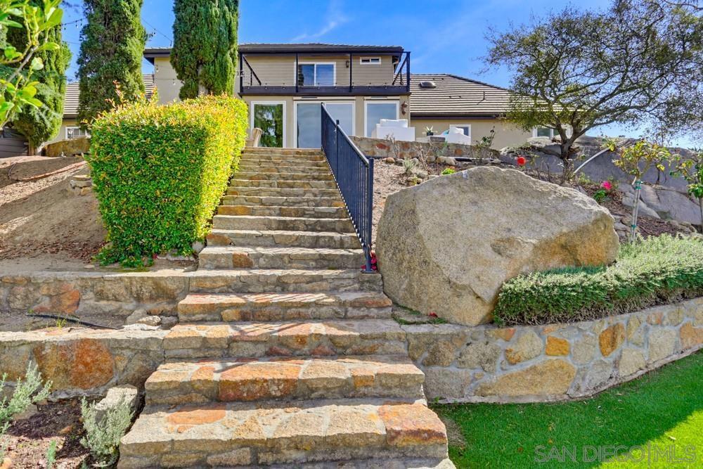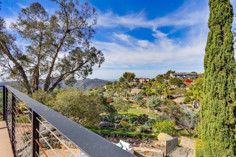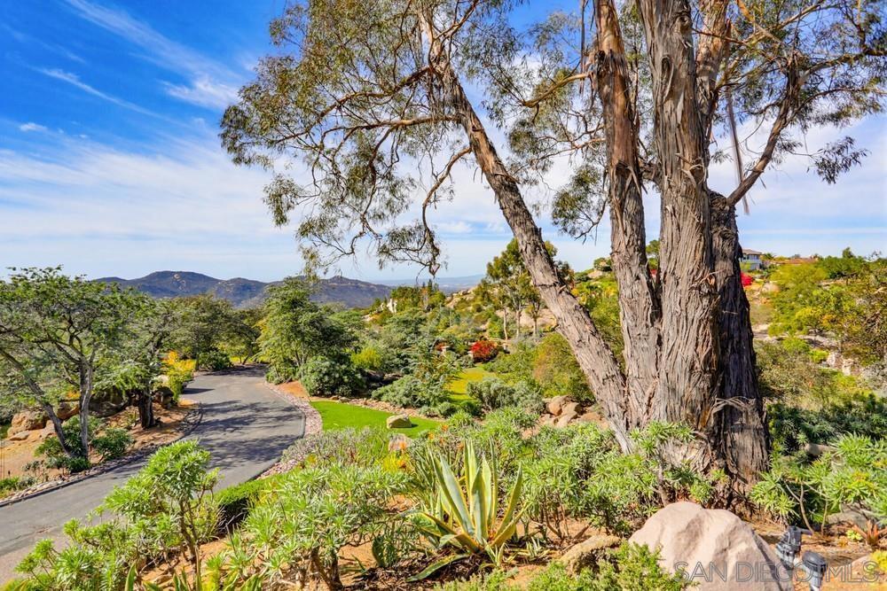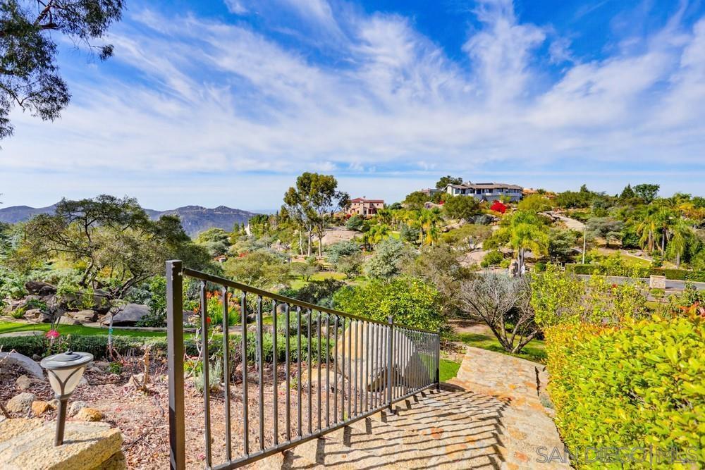 Exclusive gated community of Rimrock Estates, within Hidden Meadows Estates community, this beautiful mountaintop home offers panoramic ocean and sunset views on 2.7 private acres. Gorgeous custom wrought-iron entry door to an airy, open floor plan filled with natural light and porcelain tile floors. Kitchen features a large granite island, bar seating, and custom cabinetry—flowing seamlessly into the dining area with coffered ceiling and wainscoting. The spacious family room, framed by three 8-foot sliders, opens to a 2,000 sq. ft. wraparound patio—perfect for entertaining against endless views. The primary suite offers a tranquil retreat with ocean-view seating area, walk-in closet, and a newly remodeled spa bath with soaking tub and multi-head shower. Upstairs, two bedrooms and a private deck offer versatile living options. Outdoors, enjoy four sitting areas, a jacuzzi under the stars, dual grilling stations, and lush, water-wise landscaping with succulents, turf, and fruit trees. Pleanty of room for ADU. Fully paid solar and dual Tesla Powerwalls that completely offset nearly all monthly bills. The oversized 3-car garage with epoxy floors and built-ins completes this exceptional property. Experience the peace, privacy, and breathtaking beauty of mountaintop living. Close proximity to I-15, dining, shopping, and minutes to the Boulders Oak Golf Club. A Sanctuary in the Sky - Welcome to Rimrock Estates, a gated mountaintop community where luxury meets serenity and the horizon stretches endlessly before you. 2.7 acre property perched at 1,750 feet above sea level, this reimagined estate invites you to live life elevated—literally and figuratively. From the moment you pass through the handcrafted wrought-iron entry, you’ll feel the sense of arrival. Natural light pours through expansive glass doors, guiding you into a bright, open floor plan designed for seamless flow and breathtaking views from every angle. The heart of the home is a chef-inspired kitchen, anchored by a generous island and surrounded by gleaming granite, custom cabinetry, and bar seating that encourages conversation. The adjoining living and family rooms open effortlessly to a 2,000 sq. ft. wraparound terrace, where the ocean sparkles in the distance and the sunsets steal the show every evening. The primary suite is a retreat of its own—complete with a cozy sitting area, walk-in closet, and a newly remodeled spa bath with a soaking tub and multi-head shower designed for pure indulgence. Upstairs, two additional bedrooms (one currently used as an office) and a private deck offer flexible spaces for family, guests, or creativity. Outdoors, every detail is curated for California living. Enjoy four intimate sitting areas, a jacuzzi under the stars, two built-in grilling stations, and a garden filled with fruit trees and succulents—all designed for effortless beauty and sustainability. The oversized 3-car garage with epoxy flooring and built-in storage adds practicality to perfection. Property is 2.7 acres with water-wise landscaped- 2 areas of artificial turf, succulents, proteas, fruit trees-Apple-1, Avocado-3, Lemon-1, Lime-1, Golden Nuggets-2, Orange-2, and Pear-2, Two Raised garden areas. Solar and Roof are only 2 years old. If you’ve been searching for a place that feels worlds away—yet close to everything—this mountaintop sanctuary is ready to welcome you home.