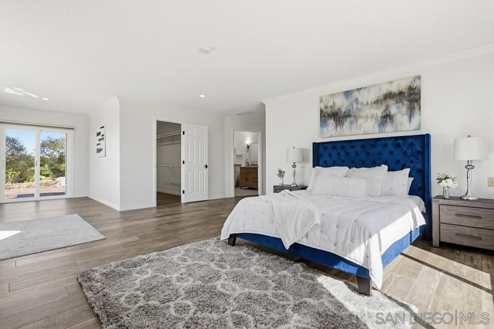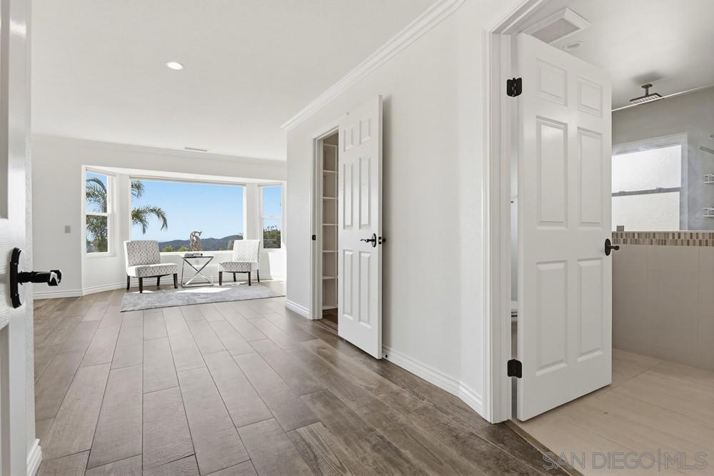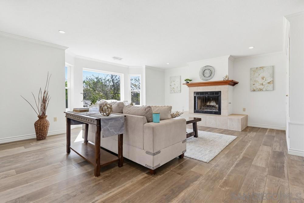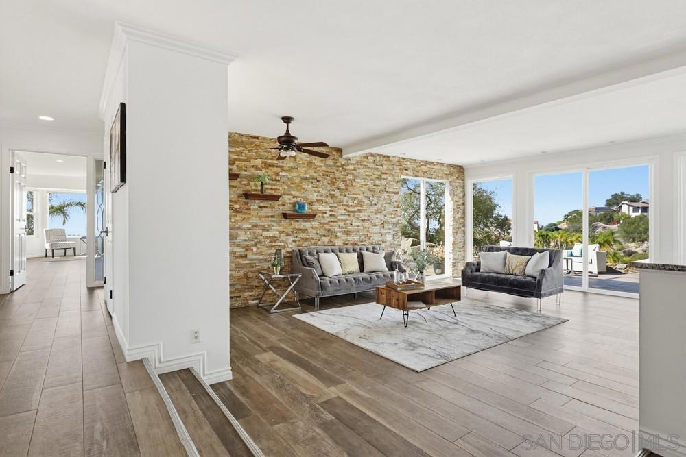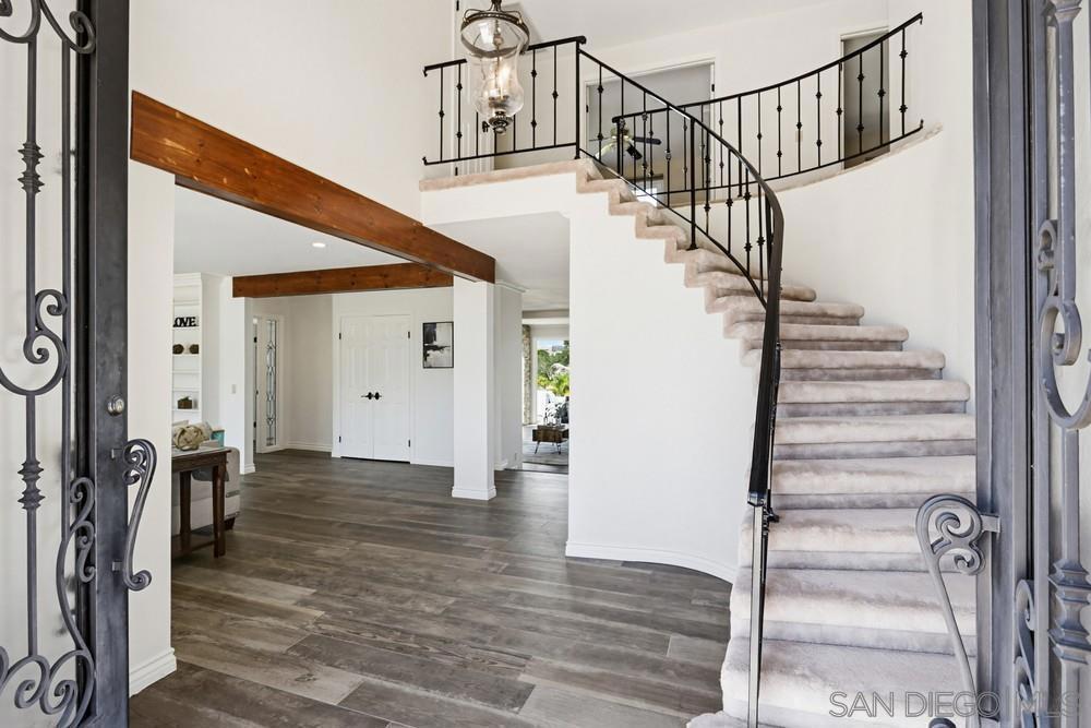 Exclusive gated community of Rimrock Estates, within Hidden Meadows Estates community, this beautiful mountaintop home offers panoramic ocean and sunset views on 2.7 private acres. Gorgeous custom wrought-iron entry door to an airy, open floor plan filled with natural light and porcelain tile floors. Kitchen features a large granite island, bar seating, and custom cabinetry—flowing seamlessly into the dining area with coffered ceiling and wainscoting. The spacious family room, framed by three 8-foot sliders, opens to a 2,000 sq. ft. wraparound patio—perfect for entertaining against endless views. The primary suite offers a tranquil retreat with ocean-view seating area, walk-in closet, and a newly remodeled spa bath with soaking tub and multi-head shower. Upstairs, two bedrooms and a private deck offer versatile living options. Outdoors, enjoy four sitting areas, a jacuzzi under the stars, dual grilling stations, and lush, water-wise landscaping with succulents, turf, and fruit trees. Pleanty of room for ADU. Fully paid solar and dual Tesla Powerwalls that completely offset nearly all monthly bills. The oversized 3-car garage with epoxy floors and built-ins completes this exceptional property. Experience the peace, privacy, and breathtaking beauty of mountaintop living. Close proximity to I-15, dining, shopping, and minutes to the Boulders Oak Golf Club. A Sanctuary in the Sky - Welcome to Rimrock Estates, a gated mountaintop community where luxury meets serenity and the horizon stretches endlessly before you. 2.7 acre property perched at 1,750 feet above sea level, this reimagined estate invites you to live life elevated—literally and figuratively. From the moment you pass through the handcrafted wrought-iron entry, you’ll feel the sense of arrival. Natural light pours through expansive glass doors, guiding you into a bright, open floor plan designed for seamless flow and breathtaking views from every angle. The heart of the home is a chef-inspired kitchen, anchored by a generous island and surrounded by gleaming granite, custom cabinetry, and bar seating that encourages conversation. The adjoining living and family rooms open effortlessly to a 2,000 sq. ft. wraparound terrace, where the ocean sparkles in the distance and the sunsets steal the show every evening. The primary suite is a retreat of its own—complete with a cozy sitting area, walk-in closet, and a newly remodeled spa bath with a soaking tub and multi-head shower designed for pure indulgence. Upstairs, two additional bedrooms (one currently used as an office) and a private deck offer flexible spaces for family, guests, or creativity. Outdoors, every detail is curated for California living. Enjoy four intimate sitting areas, a jacuzzi under the stars, two built-in grilling stations, and a garden filled with fruit trees and succulents—all designed for effortless beauty and sustainability. The oversized 3-car garage with epoxy flooring and built-in storage adds practicality to perfection. Property is 2.7 acres with water-wise landscaped- 2 areas of artificial turf, succulents, proteas, fruit trees-Apple-1, Avocado-3, Lemon-1, Lime-1, Golden Nuggets-2, Orange-2, and Pear-2, Two Raised garden areas. Solar and Roof are only 2 years old. If you’ve been searching for a place that feels worlds away—yet close to everything—this mountaintop sanctuary is ready to welcome you home.