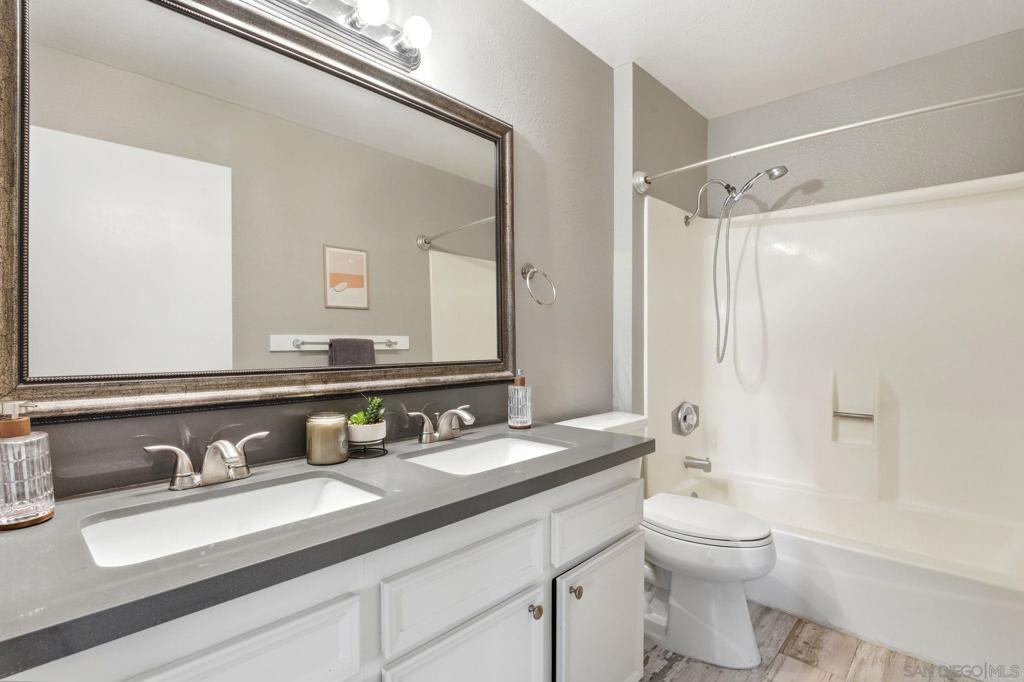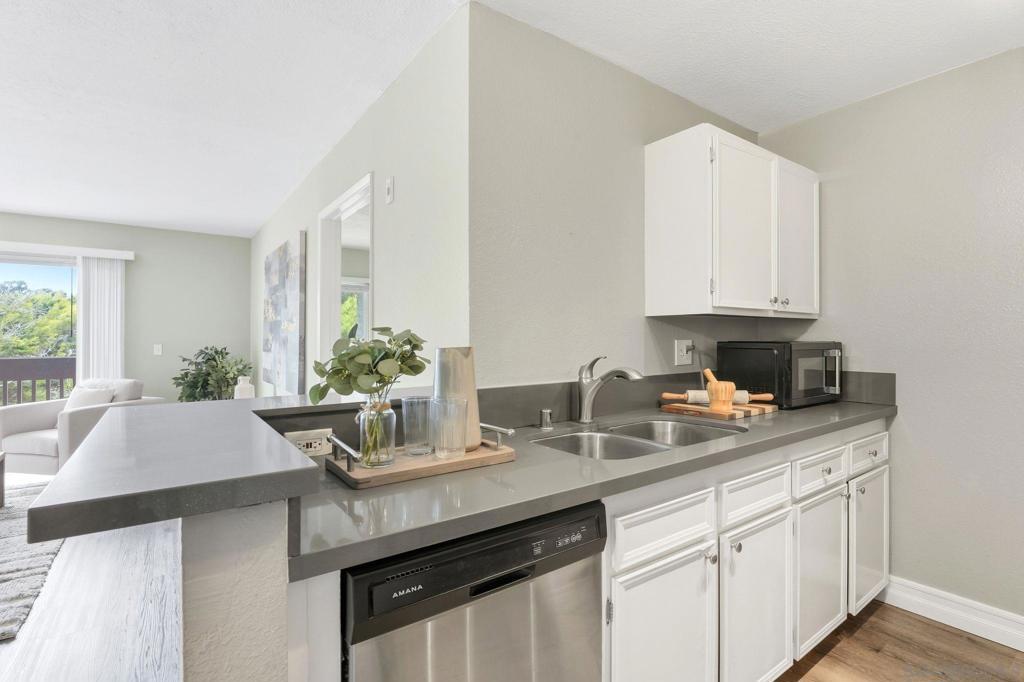 Experience effortless San Diego living in this highly upgraded 2-bed, 2-bath condo at Mission Verde. The modern open layout features bedrooms on opposite sides for privacy, a sun-filled west-facing balcony, and tasteful upgrades throughout — including new flooring, a sleek kitchen, and updated bathrooms. Relax and unwind with resort-style amenities: sparkling pool, spa, tennis courts, BBQ area, clubhouse, and community laundry. Perfectly located in the heart of Mission Valley — walk to gyms, grocery stores, and restaurants. Minutes from SDSU, USD, trolley access, Snapdragon Stadium, beaches, and all the shopping and dining of Mission & Fashion Valley. Easy freeway access to the 8 and 15 keeps all of San Diego within reach.