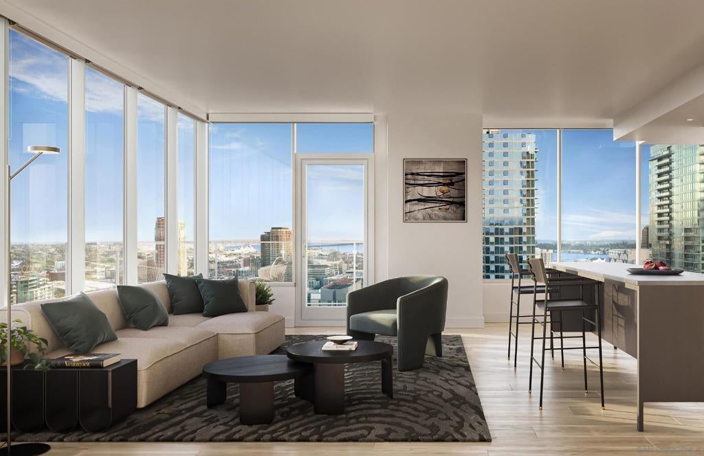 Welcome to Andia by Bosa Development. Now selling and already under construction with an anticipated completion date of fall 2027, Andia is the first new Downtown San Diego condominium high-rise in nearly 8 years. Featuring resort-like amenities and sophisticated interior design, the residences at Andia offer a seamless blend of style and comfort with the city as your backdrop. Featuring a desirable northwest exposure, Residence 1403 boasts integrated Bosch kitchen appliances with Zephyr hood, polished chrome Kohler fixtures, Caesarstone quartz countertops with polished tile backsplash, front-loading full-size washer and dryer and spacious balcony with impressive city views. Andia by Bosa Development brings new heights to Downtown San Diego. Featuring modern design and resort-styled amenities, Andia soars 40 stories above the center of the city, showcasing 399 thoughtfully appointed 1- to 3-bedroom residences ranging in size from ~620 to ~1,729 square feet with two contemporary finish palettes. This is not an offer to sell but intended for information only. The developer reserves the right to make modification in materials, specifications, plans, pricing, designs, scheduling and delivery without prior notice. Renderings, photography, illustrations and other information described herein are representative only and are not intended to reflect any specific feature or view when built. No representation and warranties are made with regard to the accuracy, completeness or suitability of the information published herein.