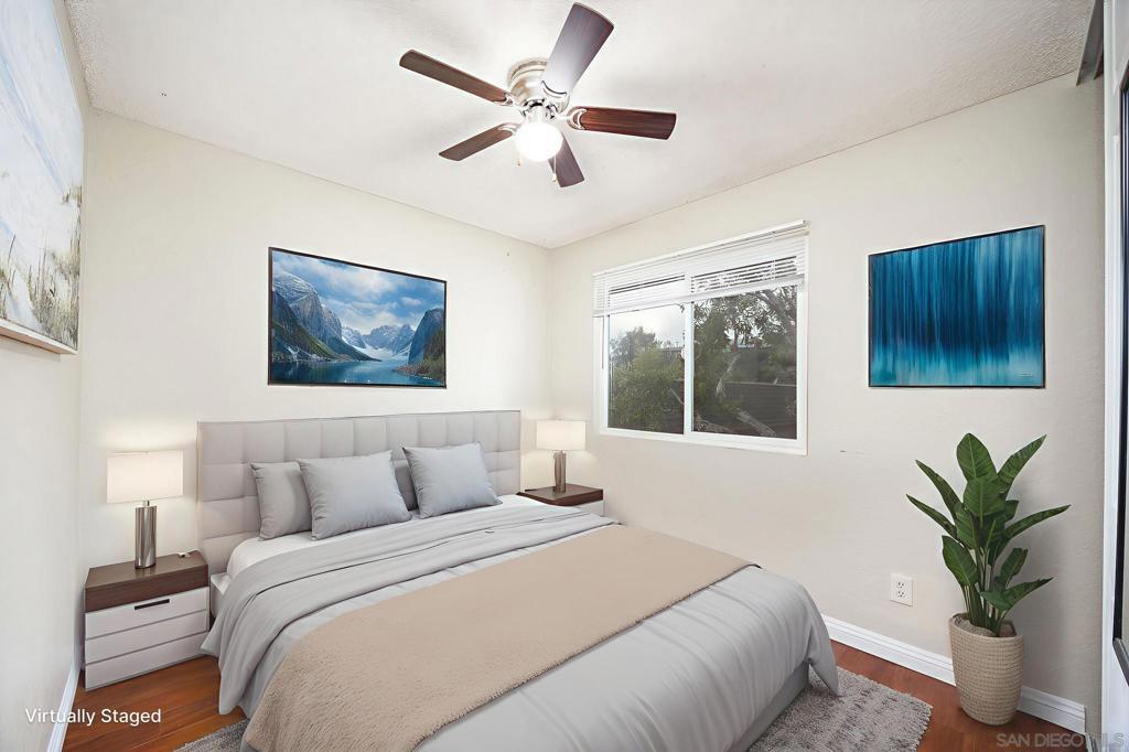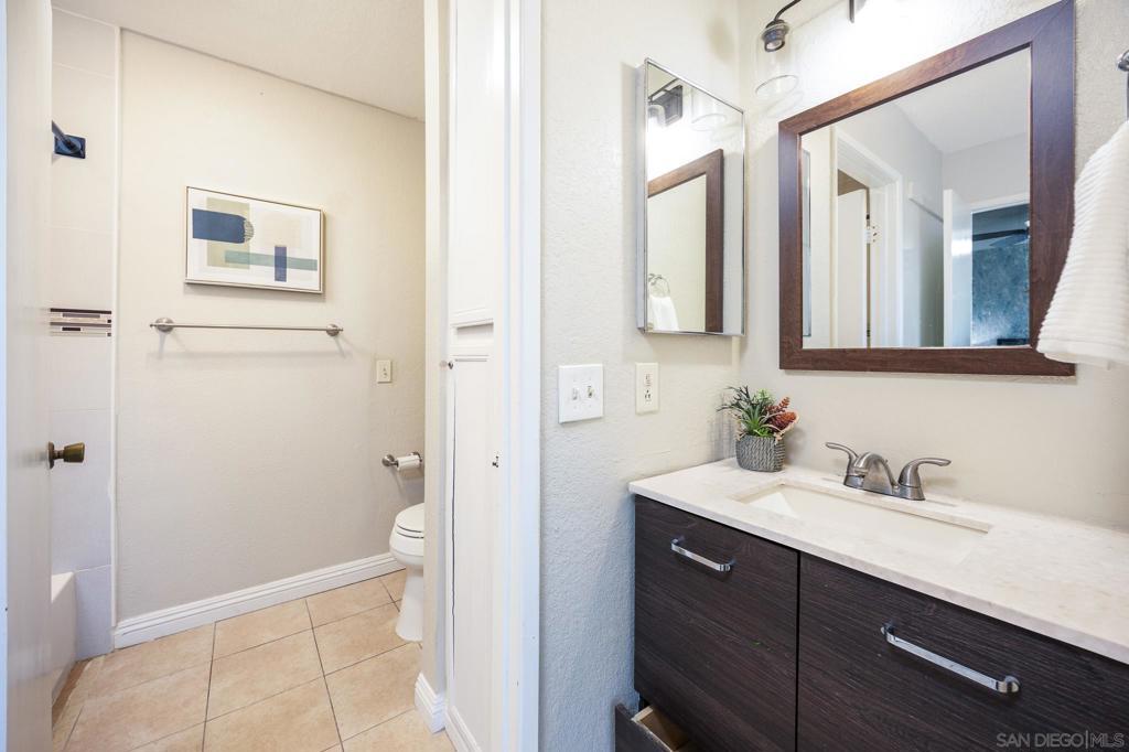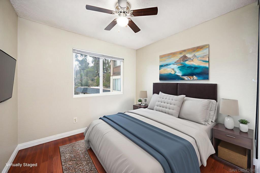 Welcome to one of the few three-bedroom homes available in this entire zip code — a rare find that combines modern upgrades, spacious living, and unbeatable convenience in central San Diego. Step inside and you’ll immediately appreciate the open and inviting layout, enhanced by upgraded laminate flooring that flows seamlessly throughout the home. The fully renovated kitchen serves as the heart of the property, showcasing contemporary cabinetry, quartz-style countertops, stainless steel appliances, and abundant storage and prep space — ideal for both daily living and entertaining. Enjoy the comfort and convenience of a full-sized washer and dryer located inside the unit — a feature that adds tremendous value and ease to your day-to-day life. The home also includes a private one-car garage for secure parking and extra storage, plus an additional assigned parking space. Out back, a large private patio extends your living area outdoors, offering a perfect spot for relaxing, dining, or hosting friends and family. Whether you’re sipping morning coffee or enjoying a weekend barbecue, this outdoor retreat provides both privacy and tranquility. Perfectly positioned for those who want access to everything, this home offers easy commuting to Downtown San Diego, Coronado, and nearby employment centers with quick access to the 5, 805, and 163 freeways. You’ll also find shopping, dining, and recreation options just minutes away. This rare three-bedroom home delivers the perfect blend of style, comfort, and location — making it one of the best values you’ll find in San Diego today.