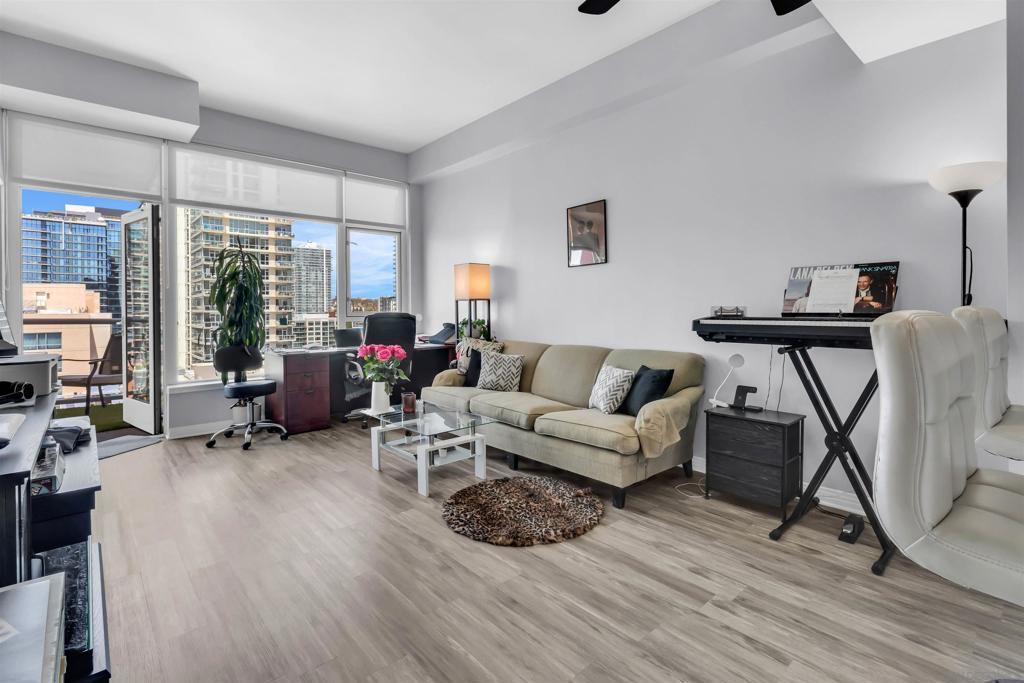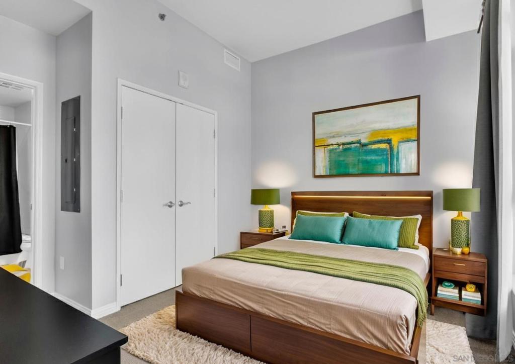 Welcome to this beautifully appointed residence in the heart of downtown San Diego’s East Village. This bright and modern condo offers a perfect blend of comfort and urban sophistication. Step inside to find an open-concept living space with large windows that fill the home with natural light and showcase breathtaking city views. The contemporary kitchen is equipped with granite countertops, stainless steel appliances, and rich wood cabinetry, making it ideal for both cooking and entertaining. The spacious living area flows seamlessly to a private balcony—perfect for enjoying morning coffee or evening sunsets while overlooking the vibrant city skyline. The bedroom retreat features ample closet space, while the bathroom is tastefully designed with granite counters and modern finishes. This secure, amenity-rich building offers everything you need for a dynamic downtown lifestyle, including a rooftop deck with BBQs and lounge areas, a fitness center, and inviting common spaces. Located steps away from Petco Park, top-rated dining, nightlife, and shopping, this home is an unmatched opportunity to live in one of San Diego’s most desirable urban neighborhoods. Don’t miss your chance to own a piece of downtown luxury living!