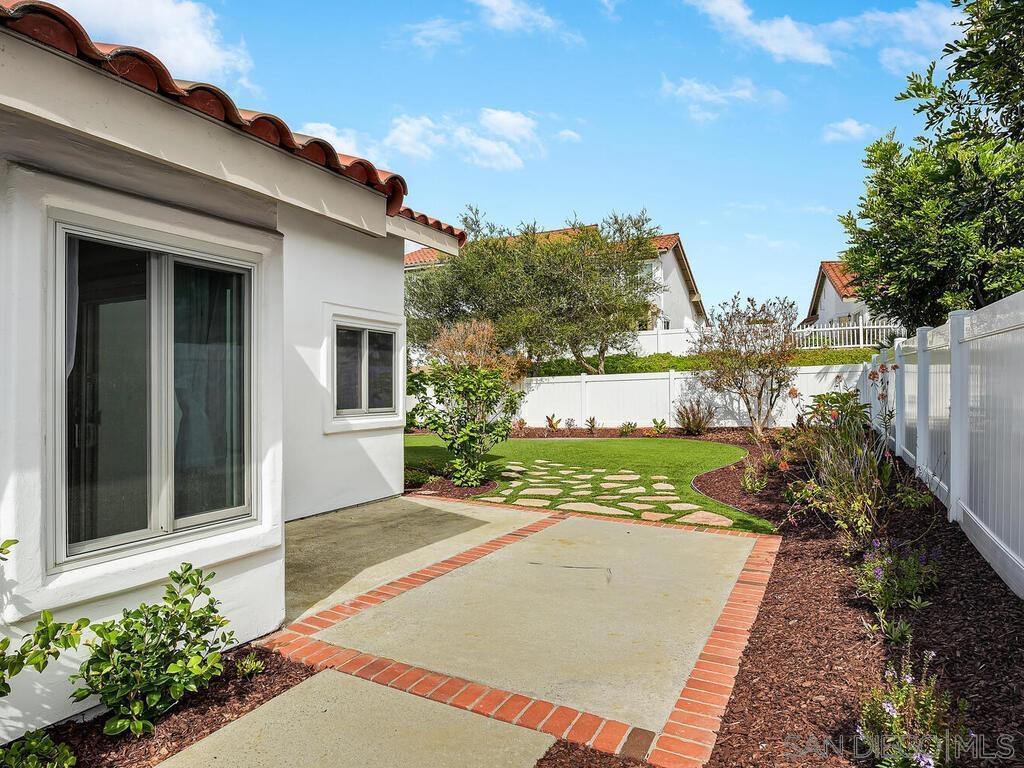 Price adjustment to $699,950! Enjoy resort style living in the premier 24/7 gate guarded 55+ community of Ocean Hills Country Club! Escape cold winters and hot summers while you enjoy the no fee executive golf course, free onsite RV parking lot, pickleball, tennis, and bocce courts! This charming single level Delphi 1 Villa features 921 sqft of open floor plan living with vaulted ceilings. This home is ready to make it your own as a getaway second home or your primary residence The spacious primary bedroom has a walk-in closet and adjoining bathroom. There is a second bedroom for guests, office, or studio. The efficient kitchen opens to a side patio featuring a magical garden of roses, camelias, and plumeria that welcome butterflies and hummingbirds year-round. The elegant living room opens to an entertaining patio and gardens surrounded by vinyl fencing. Practice putting golf on your own backyard artificial turf. There is an oversized one car garage with storage area, and interior access to this home. Laundry facilities are located inside for your convenience. This home features Andersen dual pane windows and 2 patio sliders. Be sure to tour the 27,000 sqft clubhouse - home to over 40 clubs, groups and social events, solar heated Jr. Olympic pool, the Palm Court, and the newly completed Lanai. There are lots of activities including theater arts, music and dance clubs, billiards, art rooms, 2 fitness centers and so much more!!
