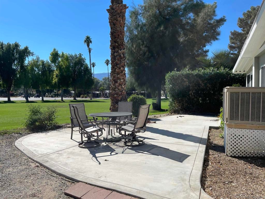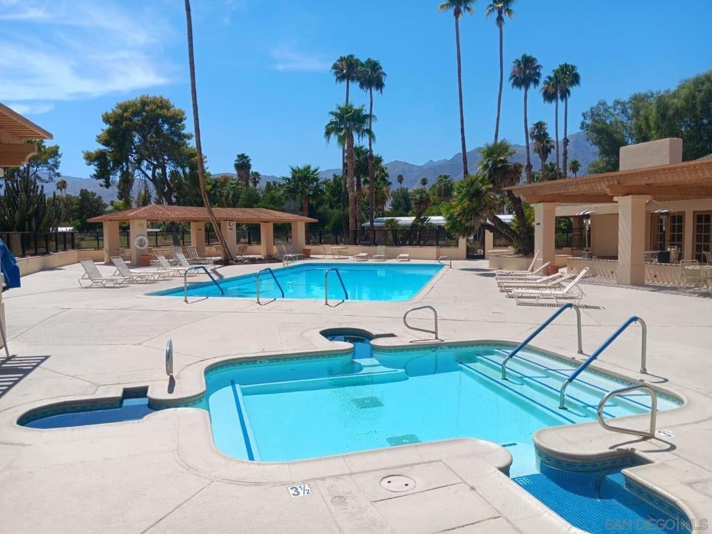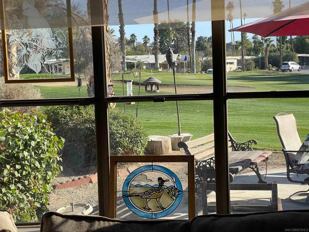 Welcome to this beautifully maintained 1974 home in Borrego Springs, offering stunning views of the #9 green at RoadRunner Golf & Country Club. This classic 1,440 sq. ft. home features a large enclosed patio room with tile floors and plenty of windows, perfect for enjoying the scenery year-round. Recently, Professionally painted. The spacious back patio is surrounded by lush palm trees & green fairways, creating a relaxing oasis for outdoor entertaining. Located in a 55+ active community, residents have access to a variety of amenities including 27 holes of golf, a 24hr, heated pool & spa, fitness center, tennis and pickleball courts, hiking trails, and daily exercise classes.
