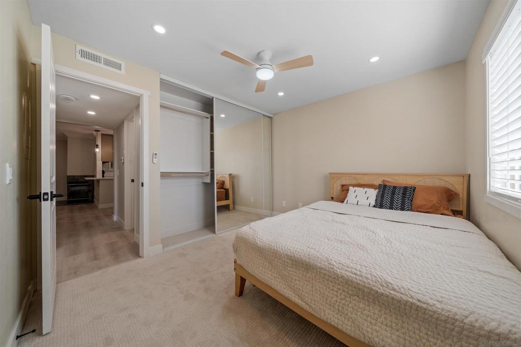 Welcome home to your fully renovated 2 bed / 2 bath condo with a brand new modern kitchen, new cabinets and countertops, and brand new appliances. Beautiful new flooring throughout, custom built-in closet systems in the bedrooms with floor to ceiling mirrors and completely renovated bathrooms make this a must see. Includes central heat/AC and a dedicated garage and parking. Easy access to freeways and close to SDSU.