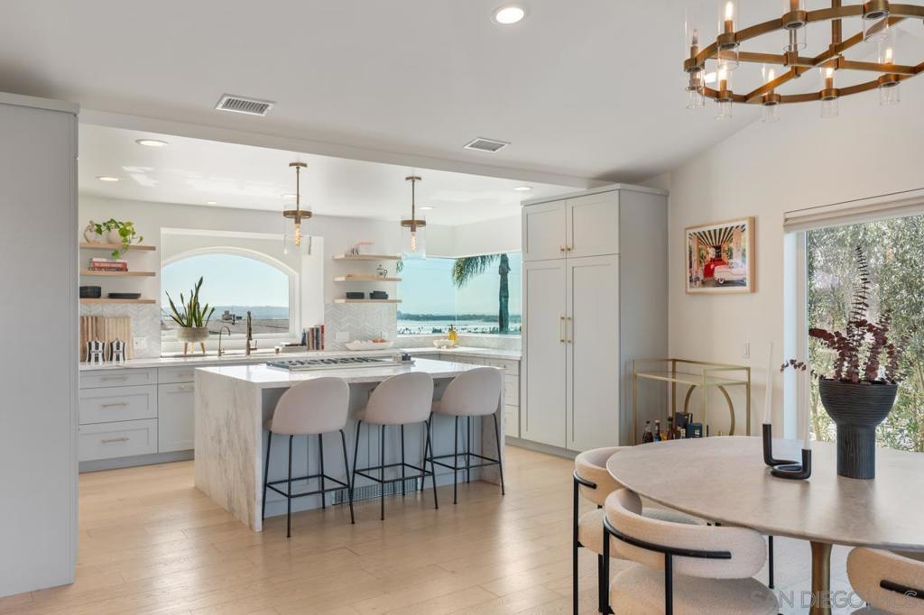 Sophisticated Contemporary Luxury Home with Panoramic Mission Bay & Ocean Views. Privately nestled in a premier hillside location overlooking Mission Bay and the Pacific, this fully remodeled 4-bedroom, 3-bath contemporary masterpiece embodies the essence of elevated coastal living. Thoughtfully designed and impeccably finished, this custom residence offers refined elegance, effortless functionality, and breathtaking views from nearly every room. An ideal family home, it features a beautifully designed family room set apart from the expansive open-concept living areas, which flow effortlessly through generous dining and entertaining spaces to a spacious outdoor patio. The exterior opens to a beautifully landscaped backyard, and built-in BBQ — perfect for stylish gatherings and relaxed coastal living. At the heart of the home is a stunning, sleek kitchen with a breakfast bar, designer finishes, and state-of-the-art appliances that elevate every detail. Retreat to the grand master suite, featuring a generous walk-in closet, luxurious en-suite bathroom, and a private deck capturing sweeping views of Mission Bay & the ocean beyond. A double lock-up garage with internal access, side driveway for additional parking, large front turf area & ample storage add convenience to this home’s modern luxury. The property also includes fully paid solar, providing energy efficiency and long-term savings without compromise. Spacious 9,979 Sqft lot. Ideally situated near schools, restaurants, coffee shops, and the beach. This private residence defines contemporary coastal living at its finest.