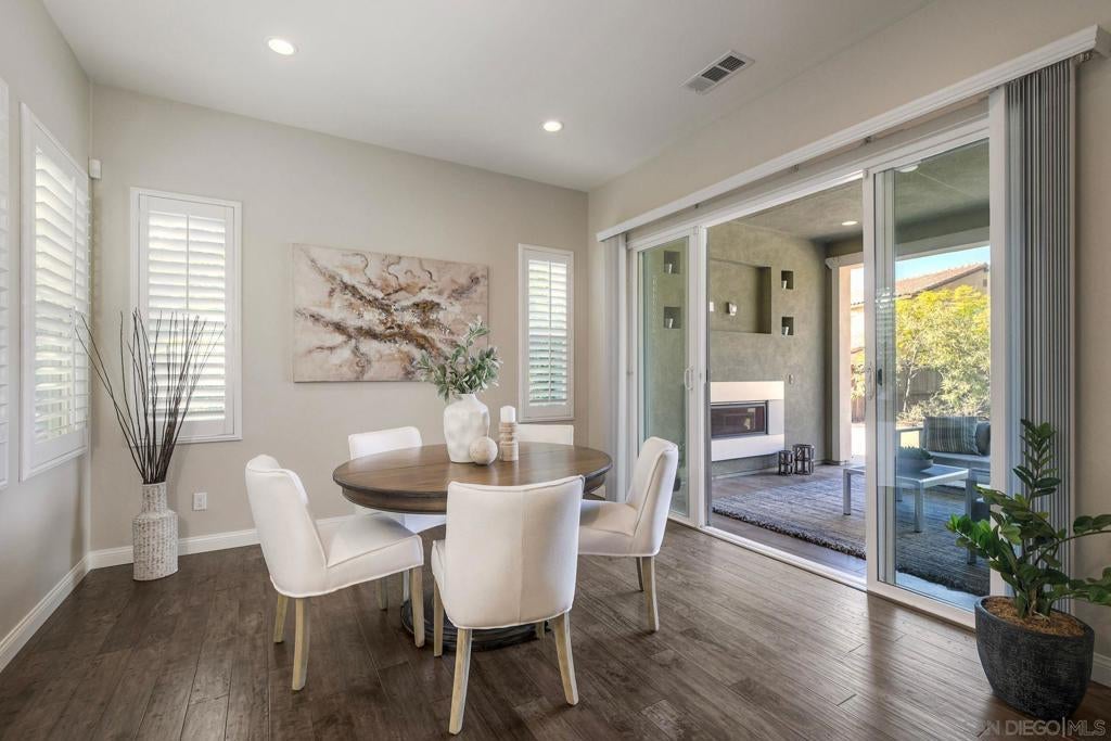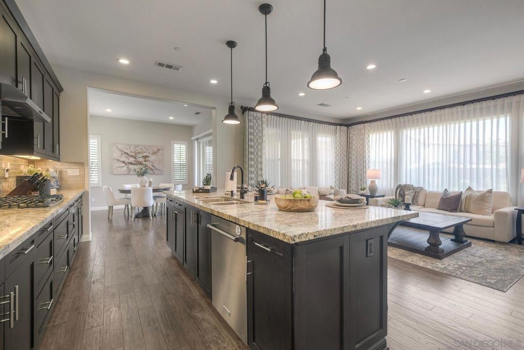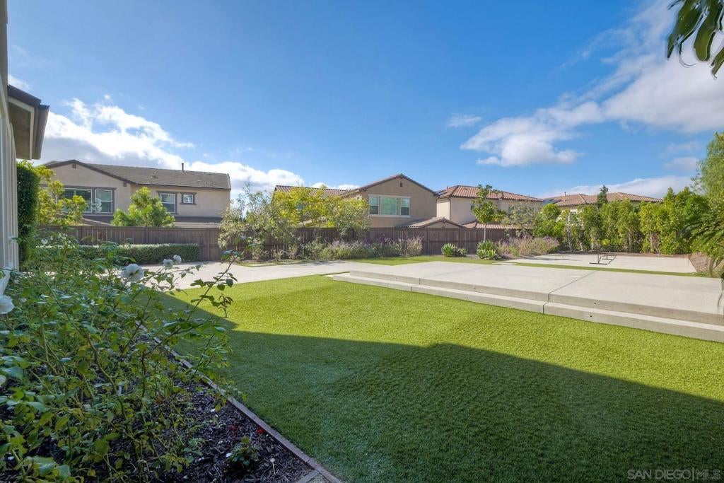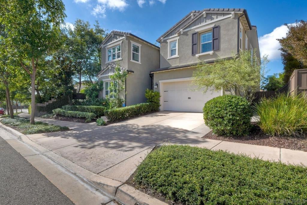 Welcome home! This beautifully designed home in Del Sur community offers an inviting blend of open-concept living and timeless style. The heart of the home is the stunning kitchen, complete with granite countertops, ample cabinetry, and a large island that flows effortlessly into the living room with custom built-ins and engineered hardwood floors. A spacious formal dining room sets the stage for memorable gatherings—and just beyond, an outdoor dining space creates seamless indoor-outdoor living, perfect for San Diego evenings. A convenient main-floor bedroom and full bath add flexibility for guests or multigenerational living. Step inside to appreciate the soaring 10-foot ceilings on the main level and 9-foot ceilings upstairs, creating a bright and airy feel throughout. The upper level includes a versatile loft, a generous primary suite retreat with a spa-inspired ensuite, and an additional bedroom featuring its own private bath. Set on one of the largest lots in the community, the backyard is designed for effortless entertaining and everyday relaxation. With owned solar for energy efficiency and a prime location within highly rated school districts—close to parks, shopping, dining, and freeway access—this home perfectly balances style, space, and convenience.