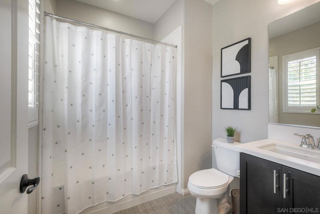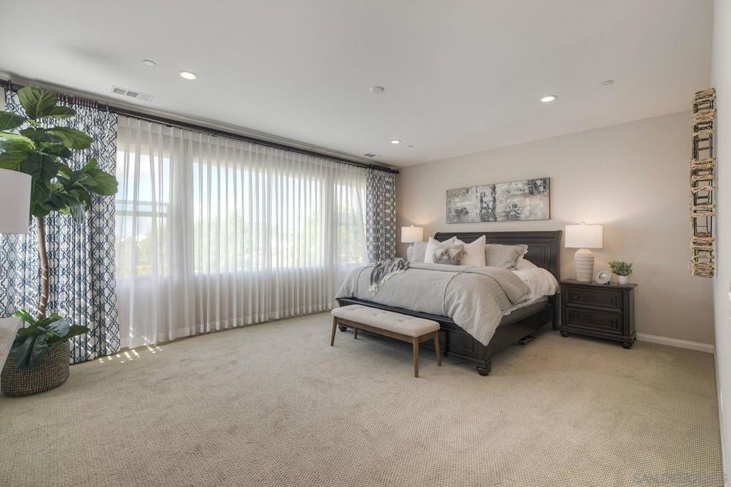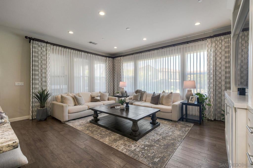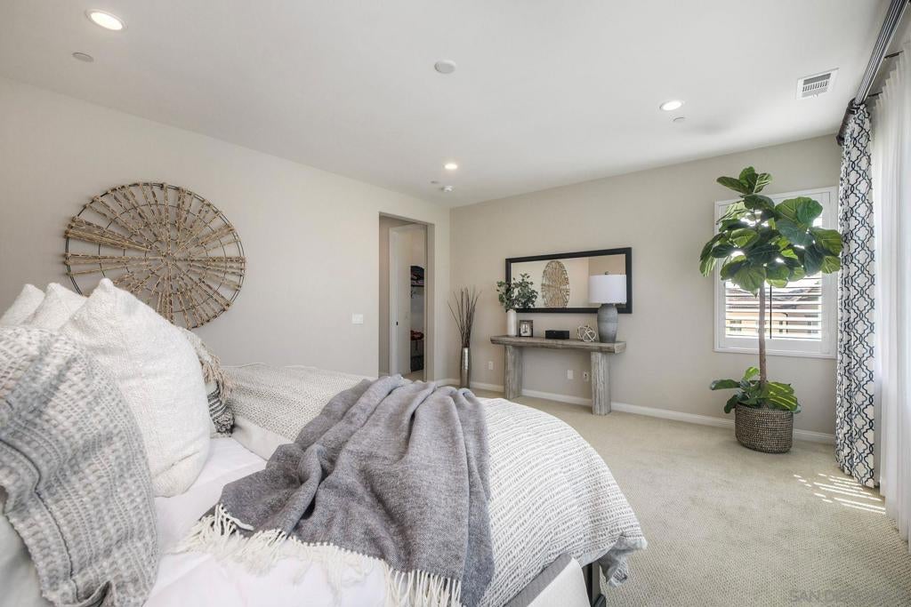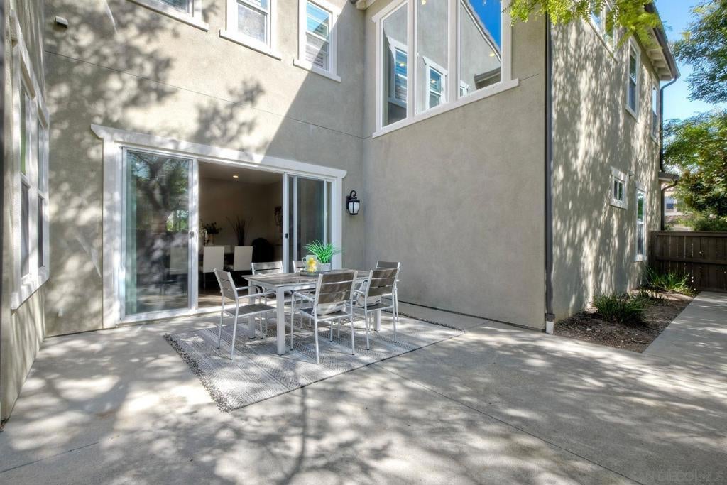 Welcome home! This beautifully designed home in Del Sur community offers an inviting blend of open-concept living and timeless style. The heart of the home is the stunning kitchen, complete with granite countertops, ample cabinetry, and a large island that flows effortlessly into the living room with custom built-ins and engineered hardwood floors. A spacious formal dining room sets the stage for memorable gatherings—and just beyond, an outdoor dining space creates seamless indoor-outdoor living, perfect for San Diego evenings. A convenient main-floor bedroom and full bath add flexibility for guests or multigenerational living. Step inside to appreciate the soaring 10-foot ceilings on the main level and 9-foot ceilings upstairs, creating a bright and airy feel throughout. The upper level includes a versatile loft, a generous primary suite retreat with a spa-inspired ensuite, and an additional bedroom featuring its own private bath. Set on one of the largest lots in the community, the backyard is designed for effortless entertaining and everyday relaxation. With owned solar for energy efficiency and a prime location within highly rated school districts—close to parks, shopping, dining, and freeway access—this home perfectly balances style, space, and convenience.