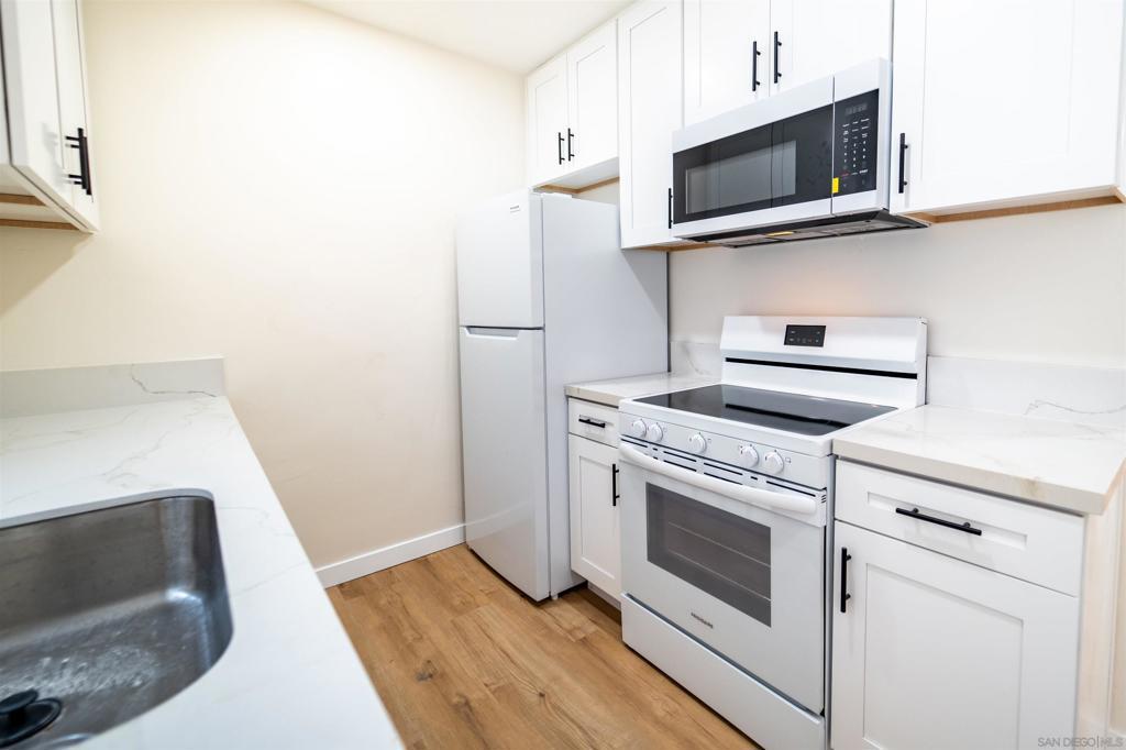 4227 49th Street is an 8-unit complex in City Heights with plenty of parking. The 5,628 square foot building built in 1969 is situated on a 6,907 square foot lot. There are three 2 Bedroom / 1.75 Bathroom units and five 1 Bedroom / 1 Bathroom units. All units have been completely remodeled in 2025. There was a new roof installed as well as stucco repair, exterior repaint, new security doors, and water proofing of the balconies. All unit interiors feature new canned lighting, window coverings and vinyl plank flooring with new baseboards. All units have new appliances and electric wall heaters powered by new sub panels. Plumbing was replaced with copper and ABS as needed. The kitchens and bathrooms feature new cabinets, fixtures, hardware, and quartz countertops. There is an onsite laundry facility that has been expanded and has new machines. The property is located in City Heights, close to the transit and shopping off El Cajon Blvd.