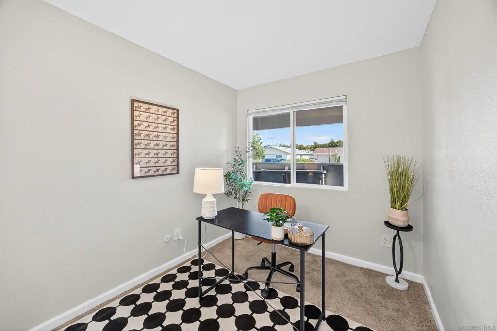 Well-maintained 1-bedroom, 1-bath corner unit with an additional room that can be used as an office, guest space, or den. This first-floor home features a covered balcony that extends the living area and provides a nice outdoor retreat. The community offers a pool, spa, and recreation room, along with open outdoor spaces for relaxation. Conveniently located near shopping, dining, parks, and freeway access for an easy commute.