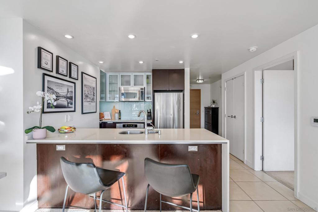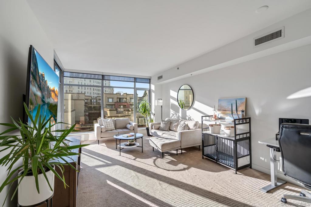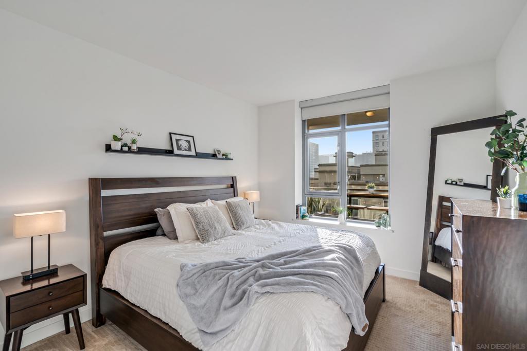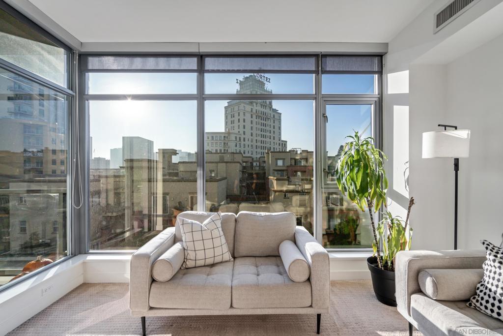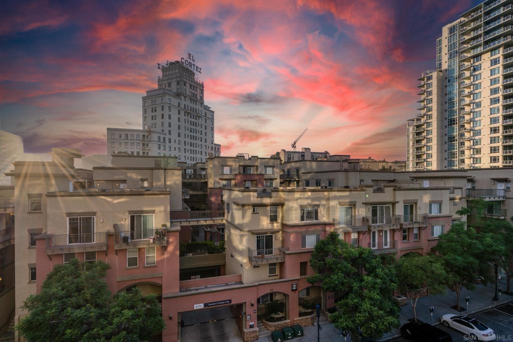 Modern elegance meets downtown vibrance in this stunning Aria residence, located in the serene Cortez Hill neighborhood. Bright and airy with a west-facing orientation, this home captures sweeping city views of the Downtown skyline, the historic El Cortez & spectacular sunsets – a perfect spot to unwind after a busy day. Designed for effortless living, the open-concept layout features high ceilings, oversized windows, and seamless flow between the living, dining, and kitchen areas—ideal for entertaining or relaxation. The contemporary kitchen impresses with stainless steel appliances, sleek quartz countertops, and ample storage. Meanwhile, the spacious bedroom features a large walk-in closet and convenient dual access to the bathroom. Additional highlights include an in-unit washer and dryer, assigned underground parking, and a rare private storage room, located directly in front of the parking space. Aria is a VA & FHA approved community, and residents enjoy an exceptional amenity collection, including a fully equipped fitness center, a 70-foot lap pool and spa, a stylish clubroom with a theatre area featuring lounge seating, a wet bar, and a dining/meeting area. With its peaceful, residential feel and close proximity to Balboa Park, Little Italy, the Gaslamp Quarter, Tweet Street Park, bus and trolley transportation, Petco Park, East Village, and the bayfront, this home offers the perfect balance of calm and connectivity. Aria — where contemporary design, city views, and resort-style living come together beautifully in the heart of Cortez Hill of Downtown San Diego. Aria is a VA & FHA approved community, and residents enjoy an exceptional amenity collection, including a fully equipped fitness center, a 70-foot lap pool and spa, a stylish clubroom with a theatre area featuring lounge seating, a wet bar, and a dining/meeting area. With its peaceful, residential feel and close proximity to Balboa Park, Little Italy, the Gaslamp Quarter, Tweet Street Park, bus and trolley transportation, Petco Park, East Village, and the bayfront, this home offers the perfect balance of calm and connectivity. Aria — where contemporary design, city views, and resort-style living come together beautifully in the heart of Cortez Hill of Downtown San Diego.