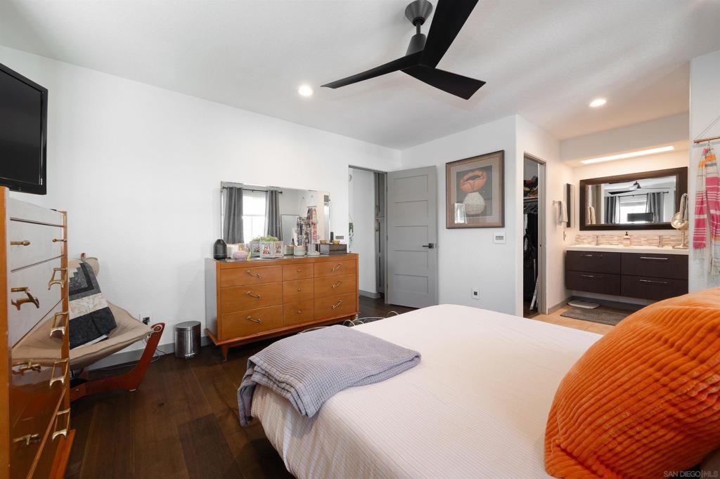 Just blocks from the charming & historic Old Poway Park you will find this exquisitely remodeled and cared for home in Park Meadows in the heart of Poway. A short stroll to shops, dining, the Saturday Farmer's Market & Midland Elementary school across the street. This 3 bedroom, 2.5 bath turnkey home features maple hardwood floors throughout, custom real hickory kitchen cabinets, custom concrete counters, under cabinet lighting, dual pane low E windows, custom 5 panel doors with kerfed door jams & trim work, see supplement. There are 3 new ceiling fans (living room, dining room, primary), recessed LED lighting, direct vent fireplace replacement, upgraded Legrand switches & outlets, new shutoff valves, reverse Osmosis system, pot filler spigot above range, gorgeous barn doors that house the stackable washer & dryer, newer toilets, water heater is 18 months new and AC is 5 years new. Large 2 car garage (detached) and two peaceful and serene patios. Homes like this do not come on the market often. Top rated Poway Schools. Hurry this one will go fast!
